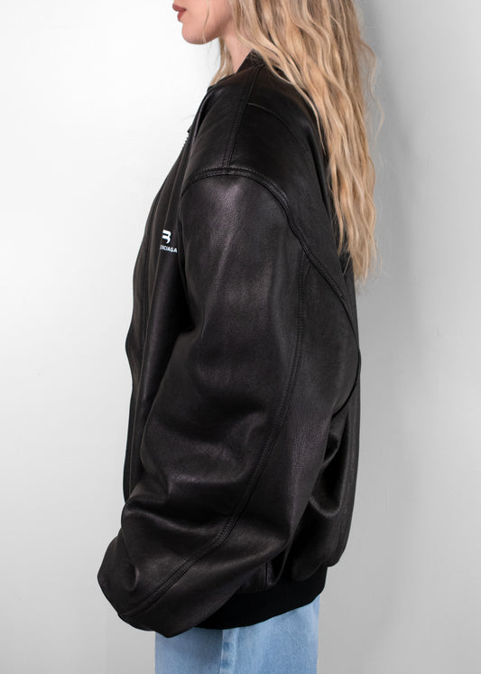 Balenciaga Oversized Leather Bomber Jacket