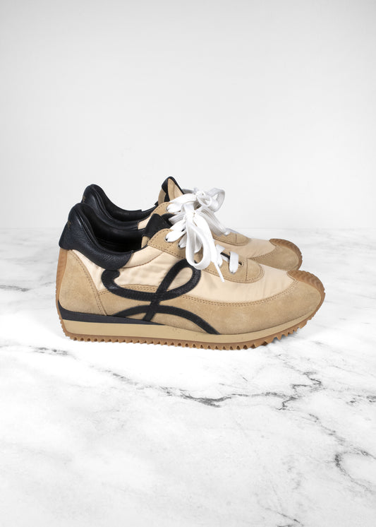 • Miu Miu Ivory Tyre Technical Fabric And Suede Ballerina Sneakers