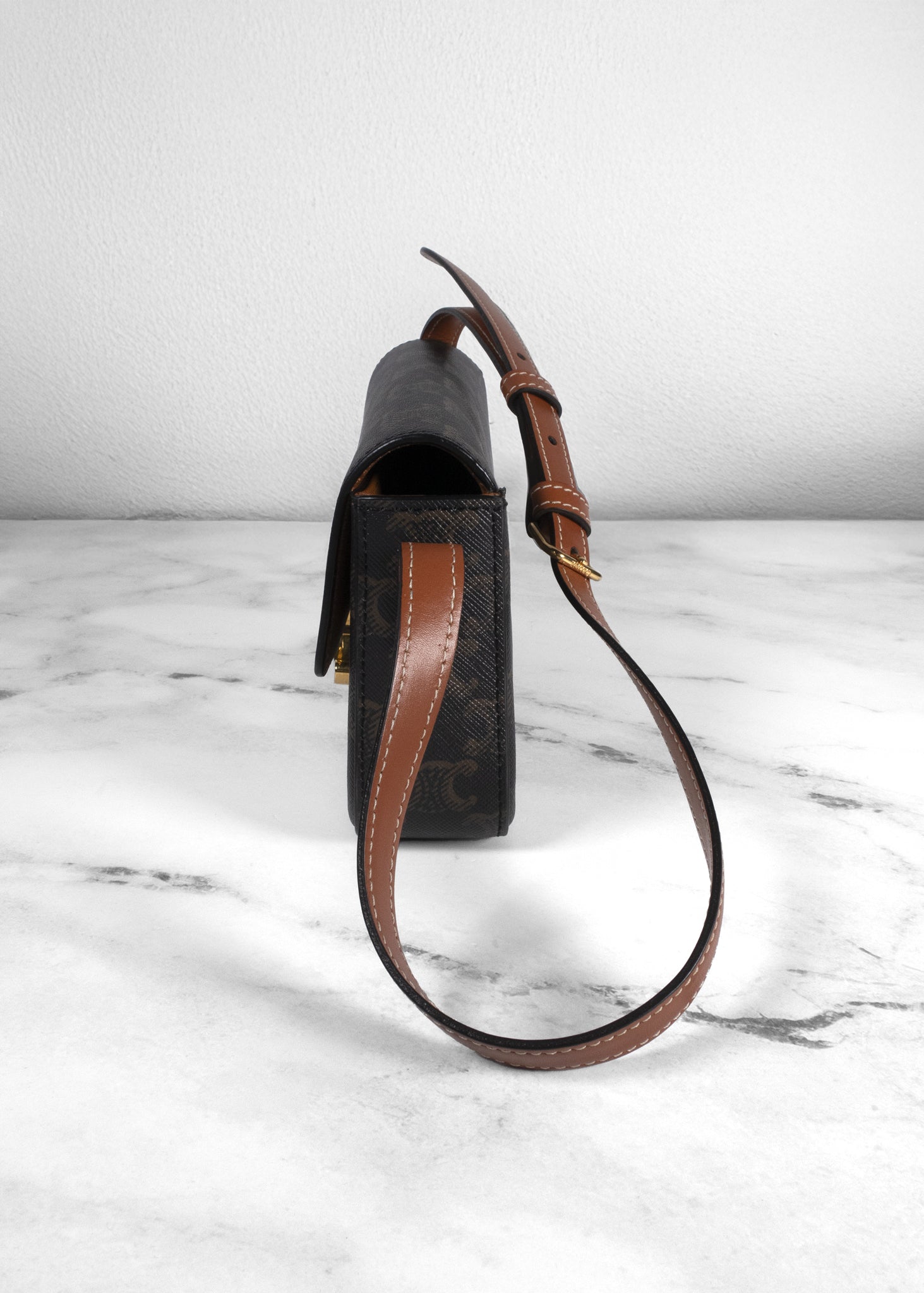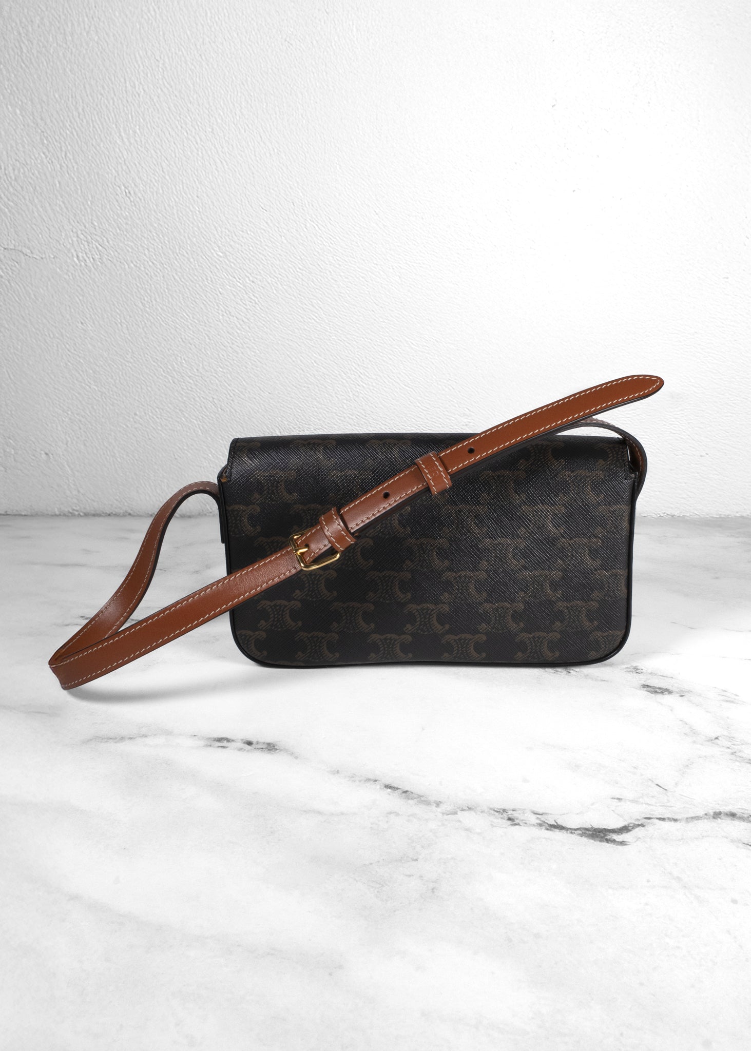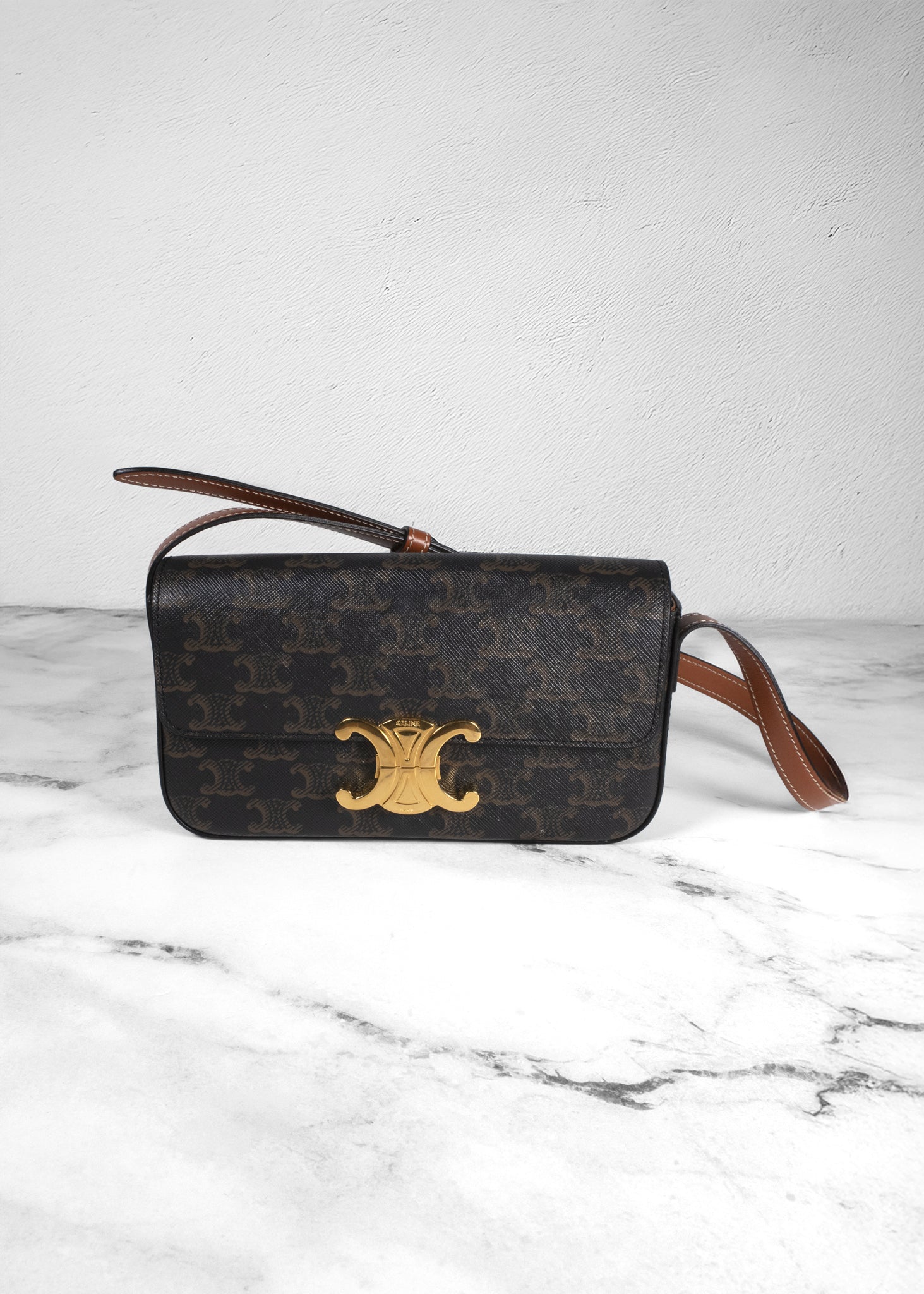 The Celine Triomphe Brown Leather Handbag is a timeless accessory that combines elegance with practicality. Made from premium brown leather, it features a minimalist design with a signature gold-tone Triomphe clasp at the front. This versatile bag is perfect for everyday use, offering both style and functionality with its spacious interior and structured silhouette.