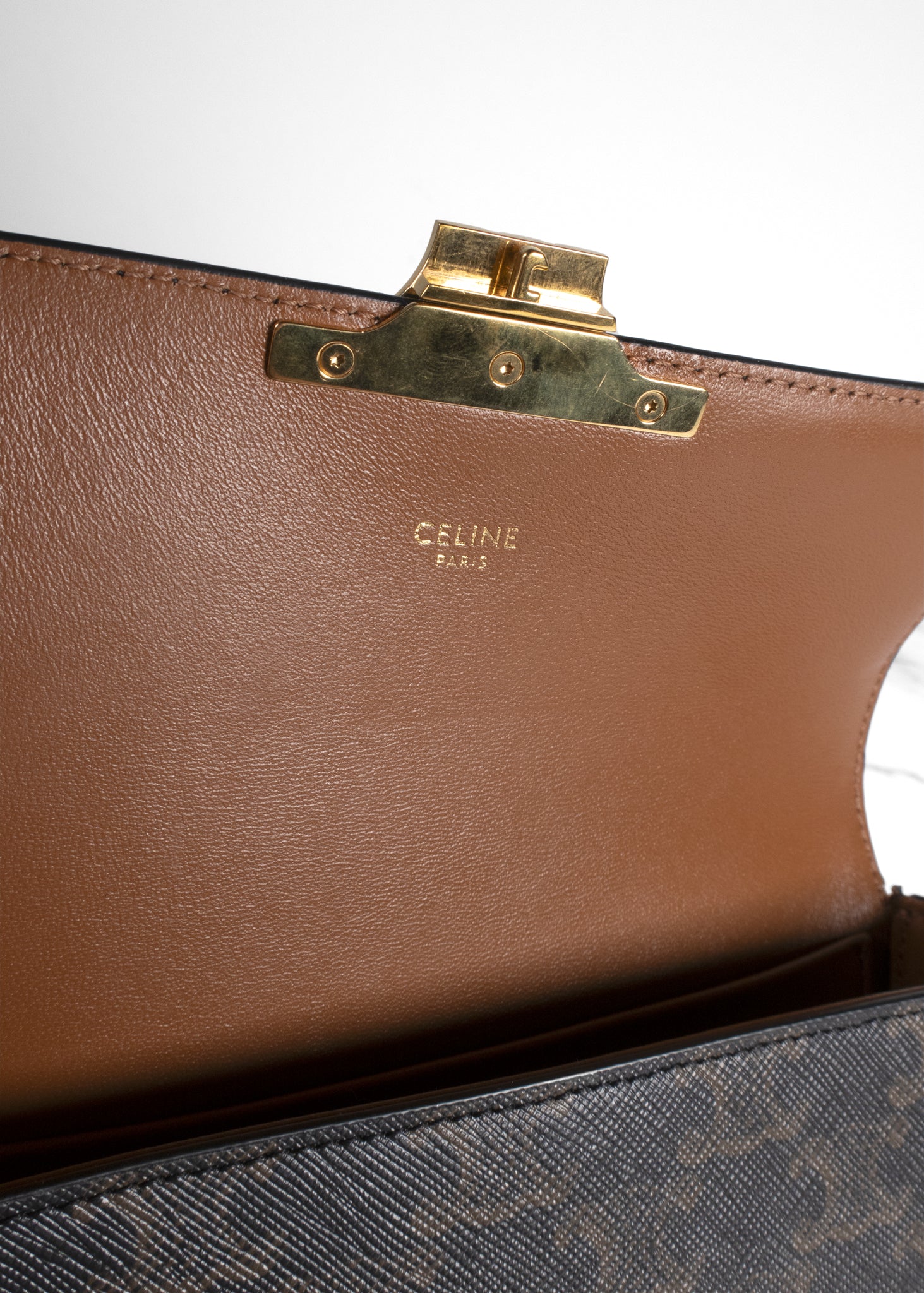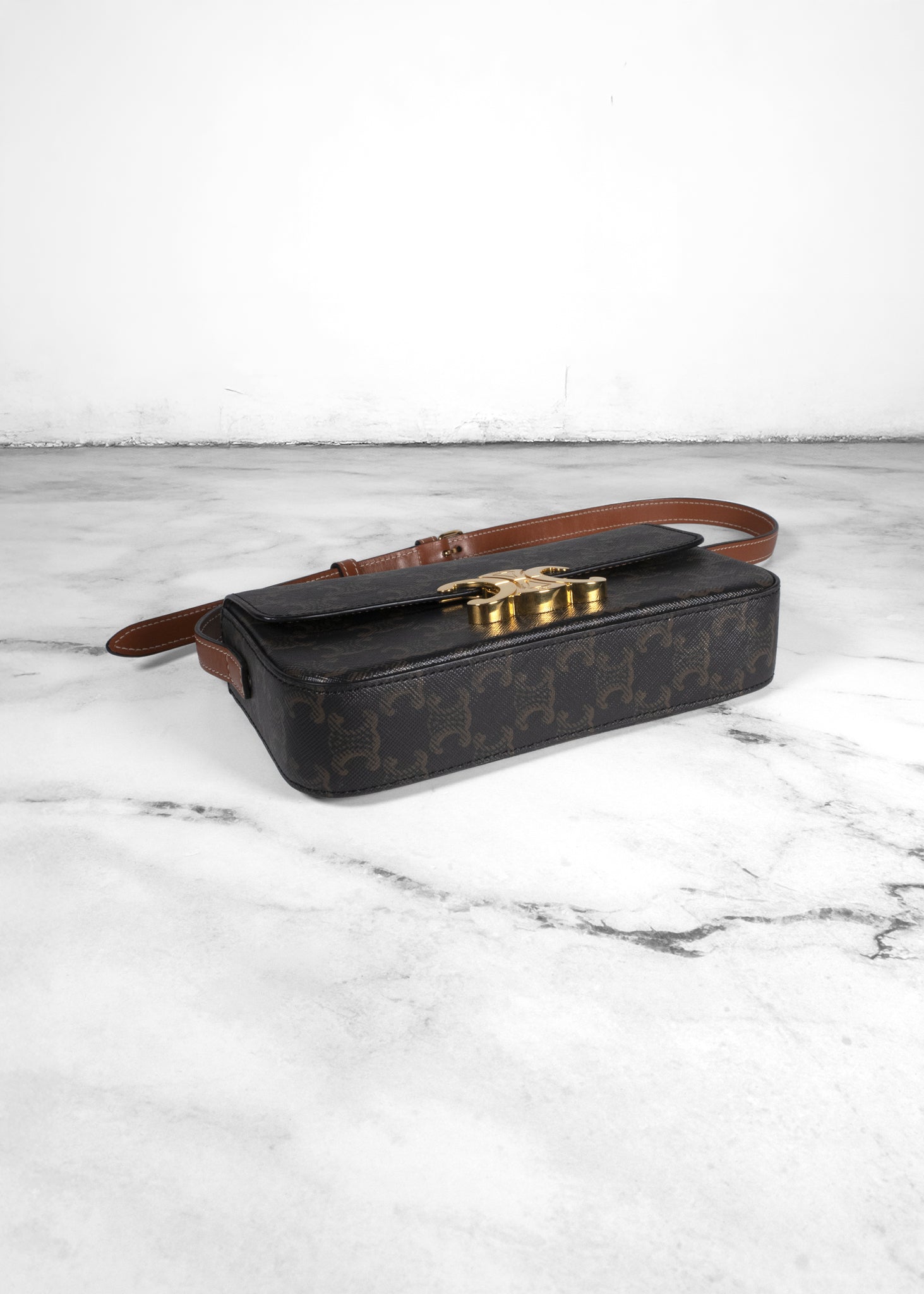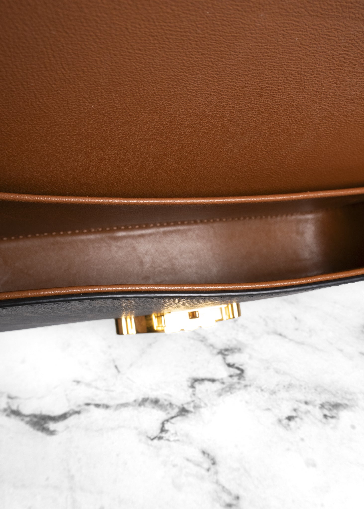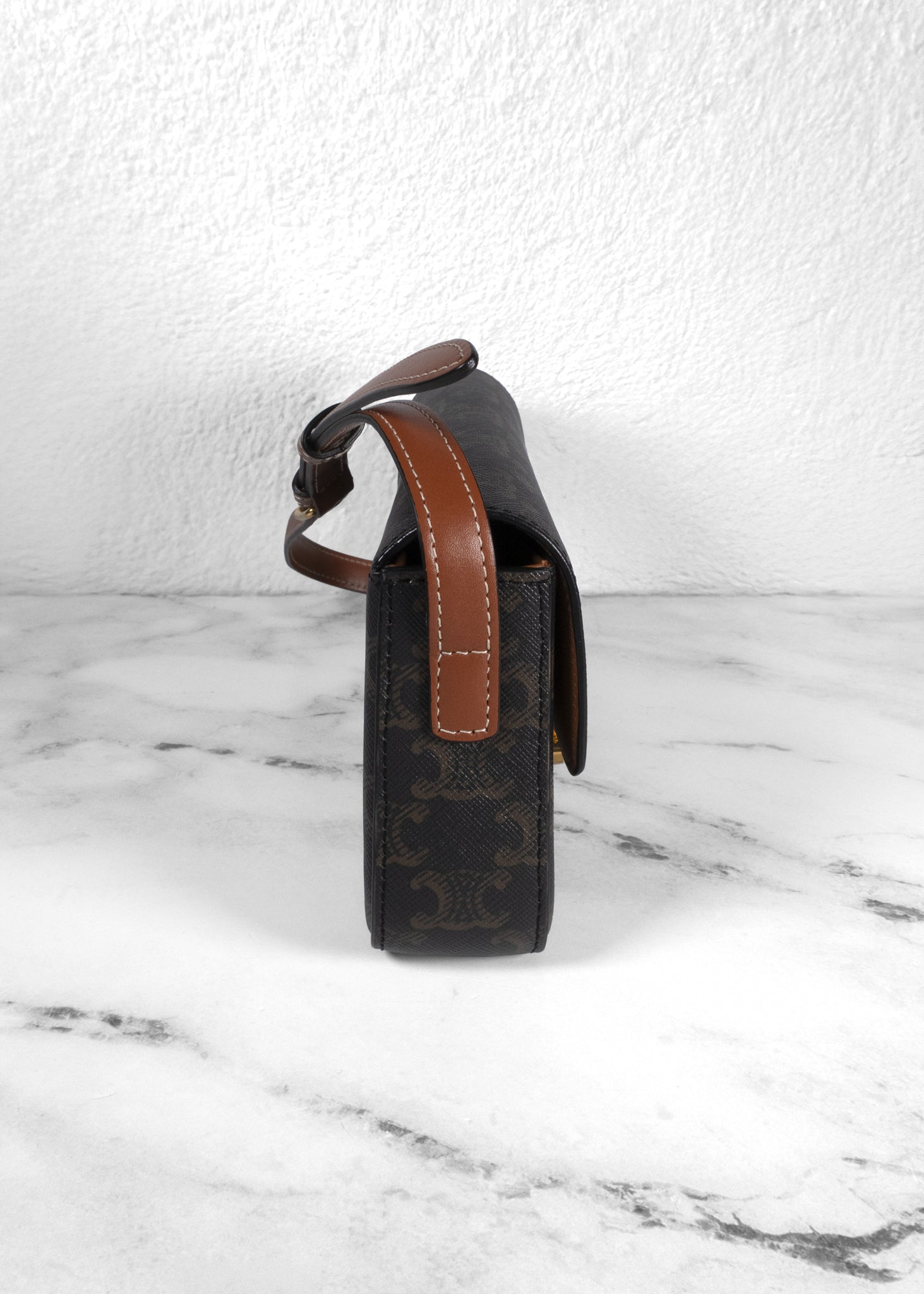 The Celine Triomphe Brown Leather Handbag is a timeless accessory that combines elegance with practicality. Made from premium brown leather, it features a minimalist design with a signature gold-tone Triomphe clasp at the front. This versatile bag is perfect for everyday use, offering both style and functionality with its spacious interior and structured silhouette.