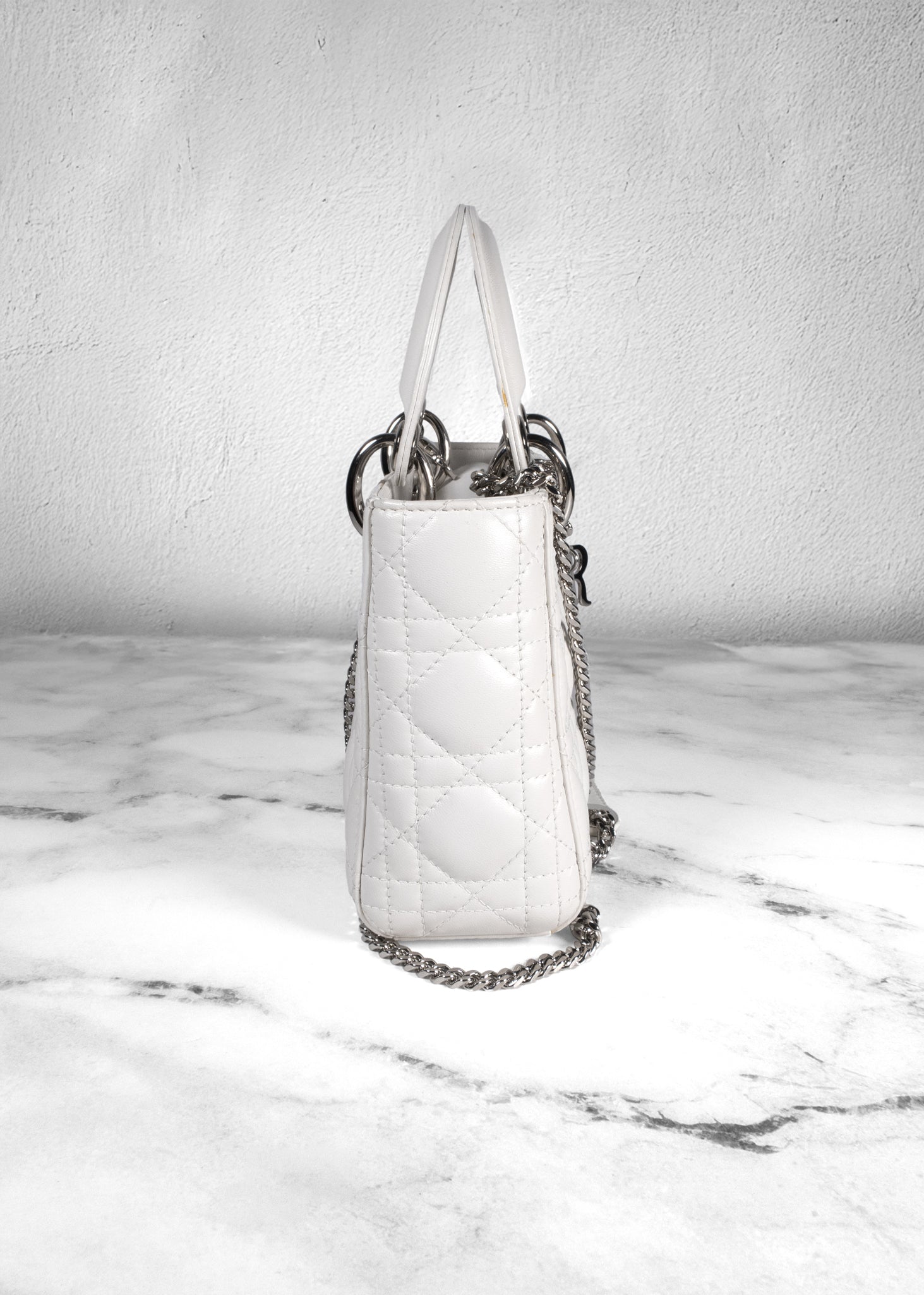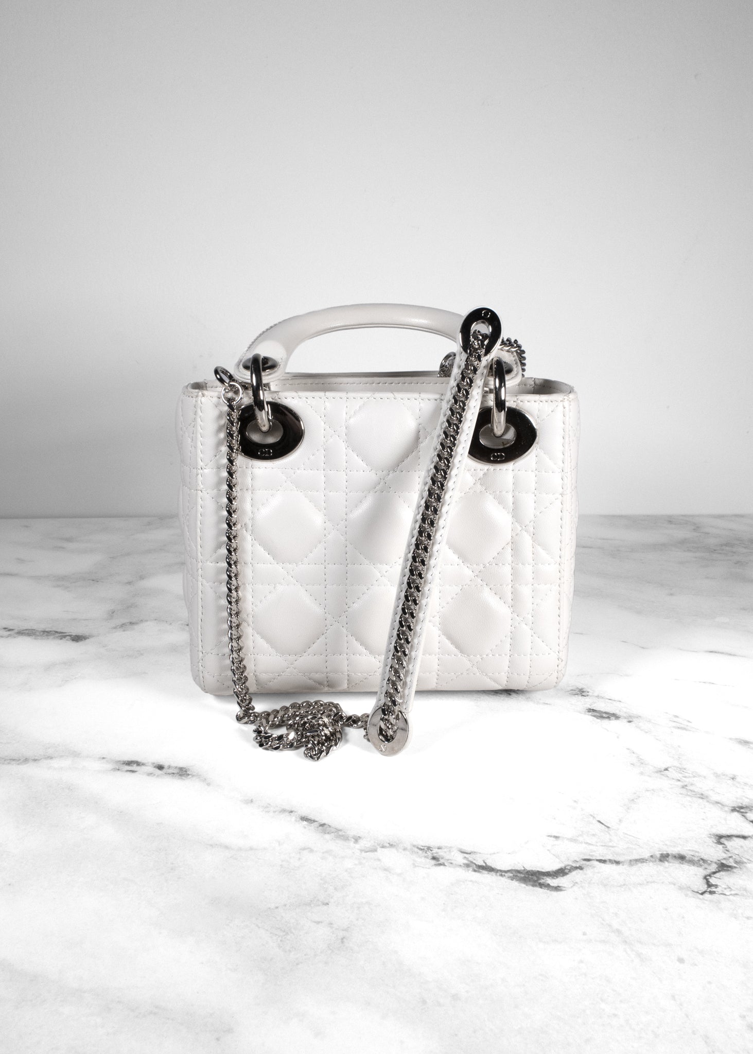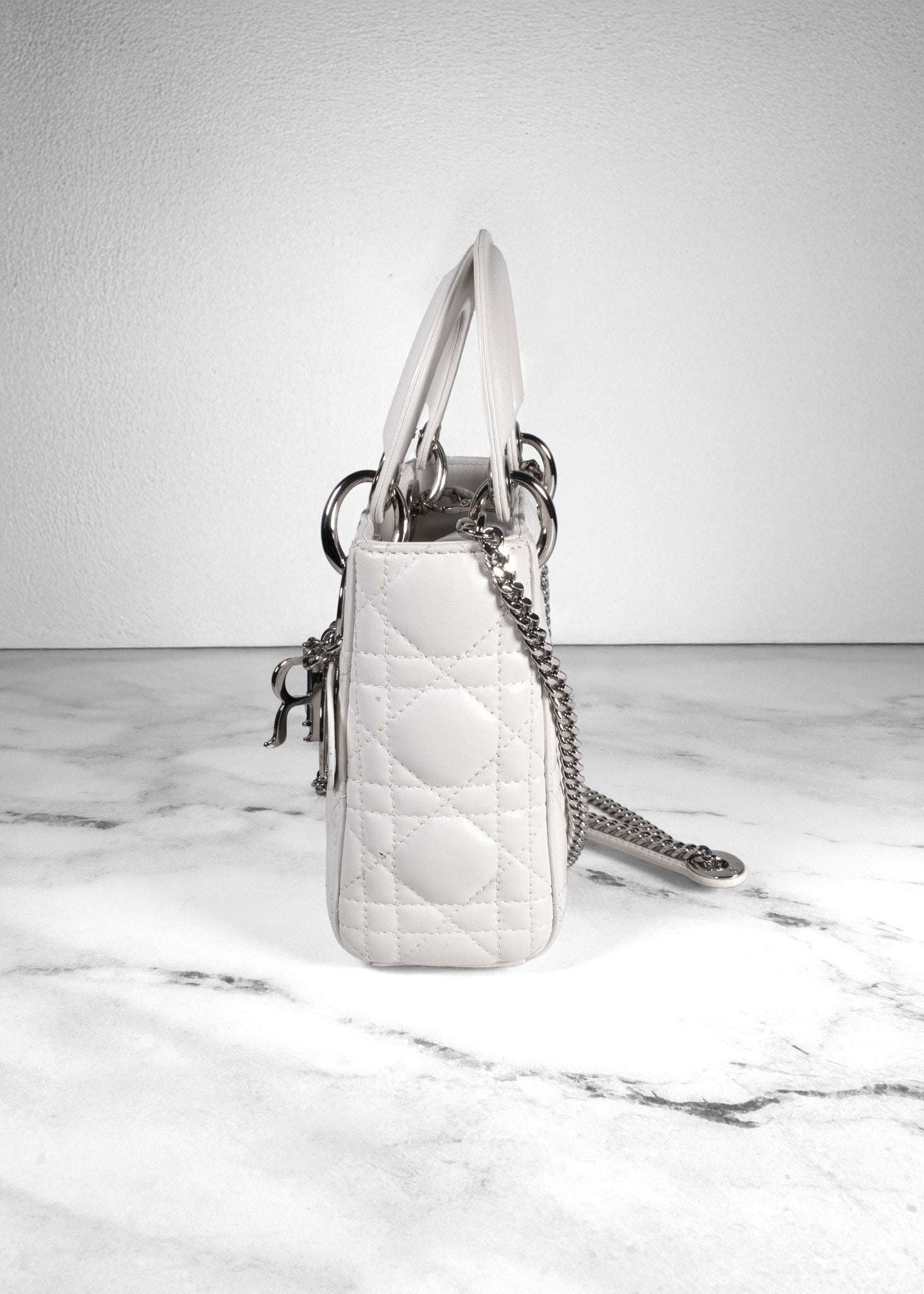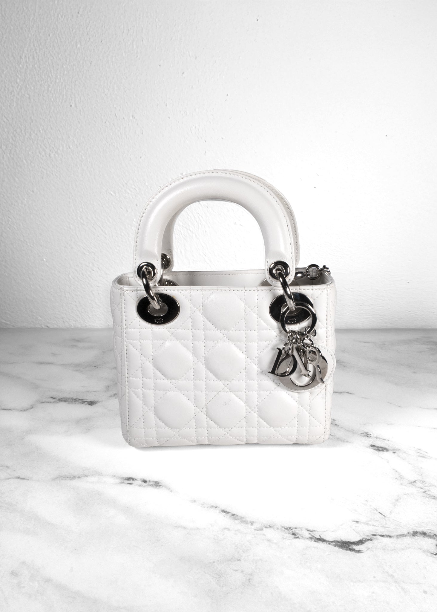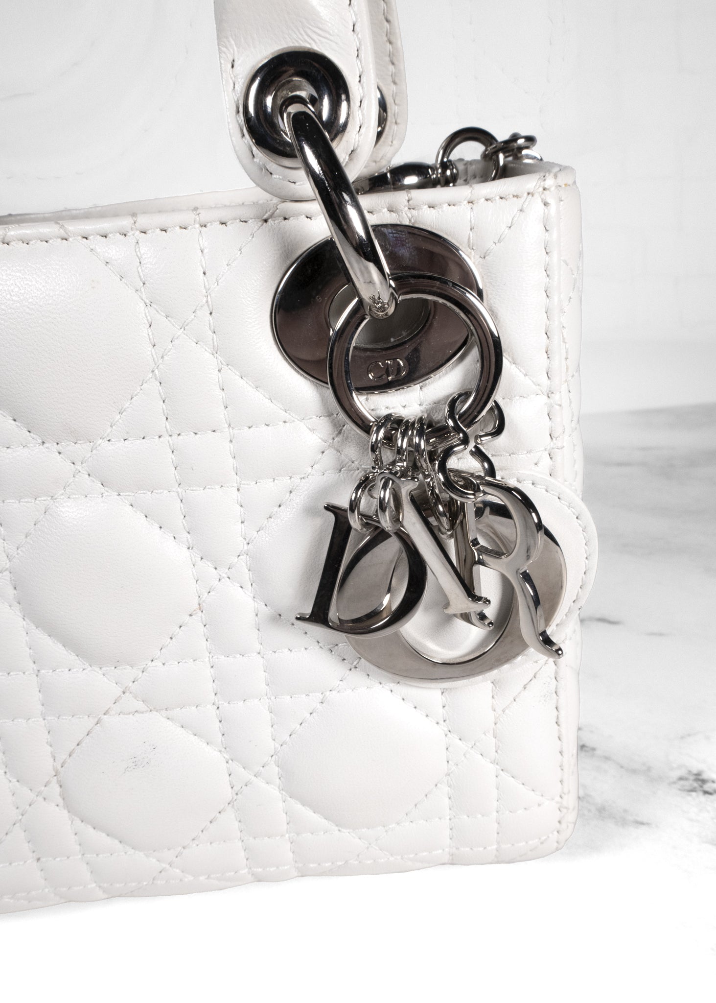 Christian Dior Lambskin Cannage White Mini Lady Dior