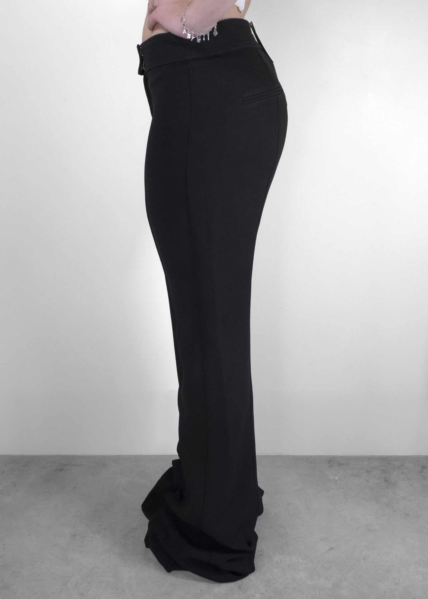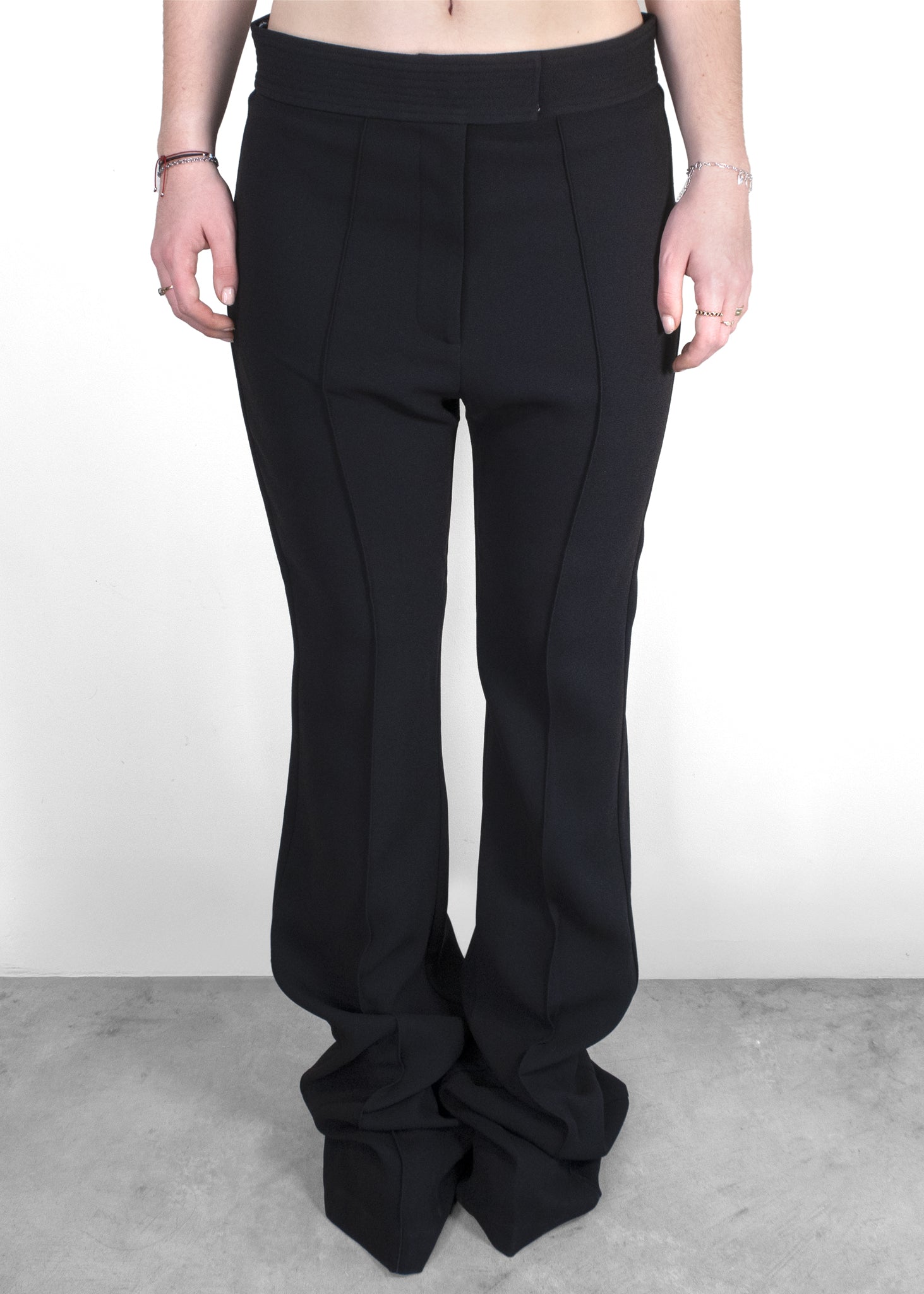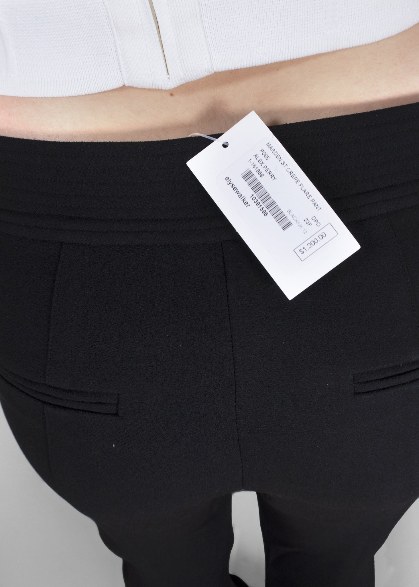 The Alex Perry high-waisted flared trousers offer a sleek, tailored silhouette with a fitted waist and dramatic flared legs. Made from premium fabric, they feature clean lines, a concealed closure, and a modern, polished finish, perfect for elevating any outfit.