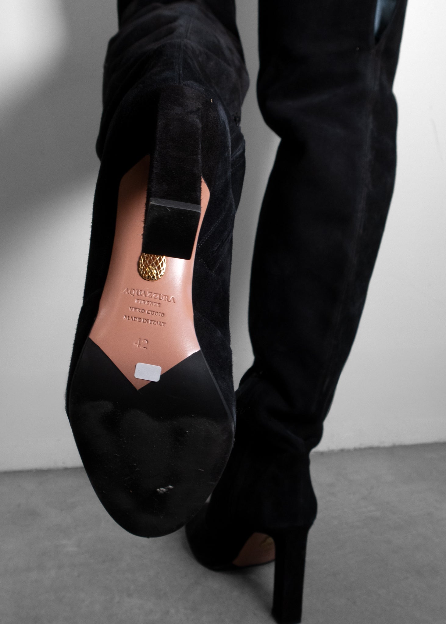Elevate your footwear collection with these Aquazzura black knee-high boots in size 42. Crafted with the precision and sophistication Aquazzura is renowned for, these boots deliver refined elegance with every step. The sleek black silhouette pairs effortlessly with both casual and formal wardrobes, while the knee-high cut provides versatile styling options. Premium construction ensures durability and comfort for extended wear. A timeless investment piece that transcends seasonal trends, these boots embody Italian craftsmanship and contemporary design sensibility.