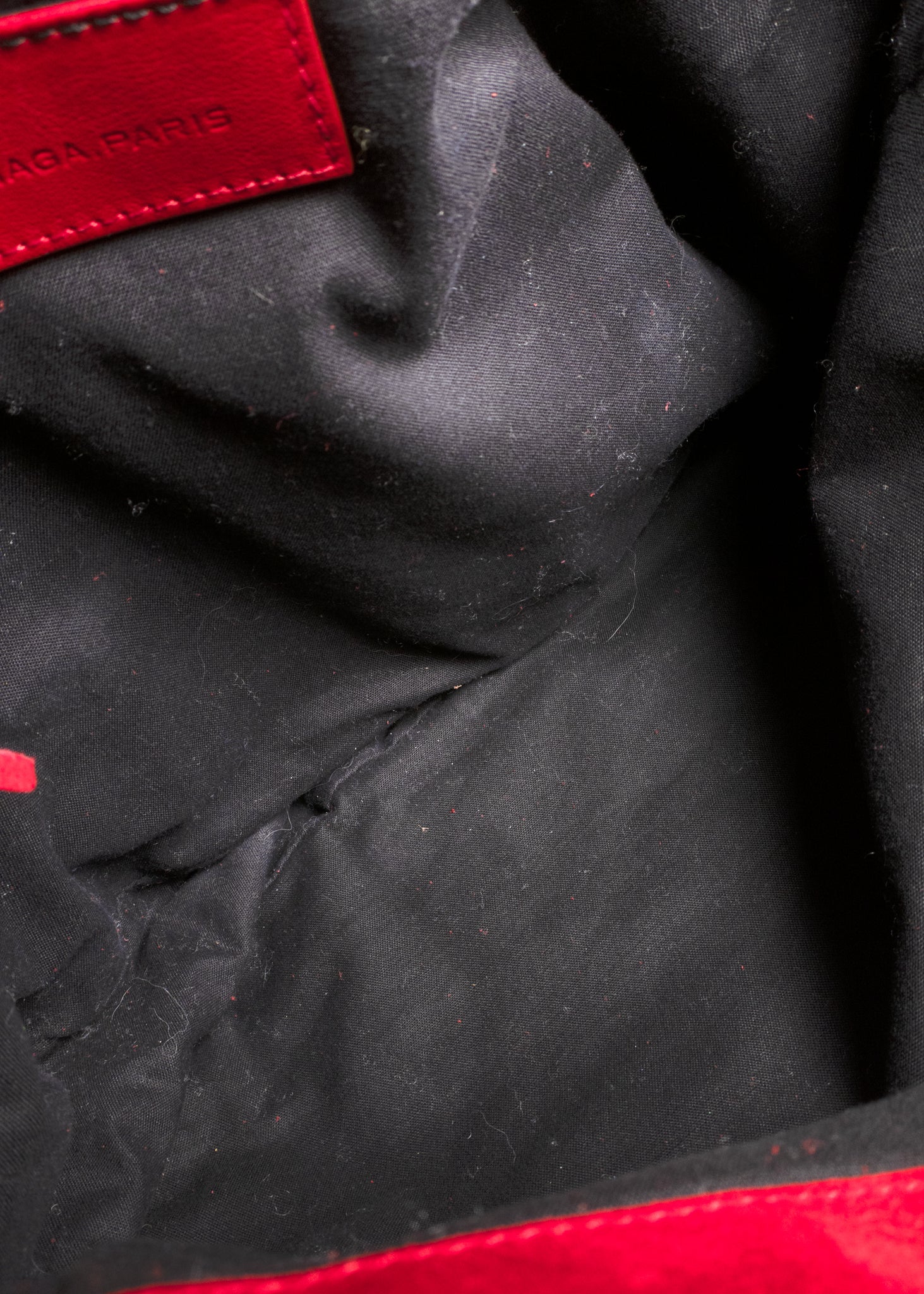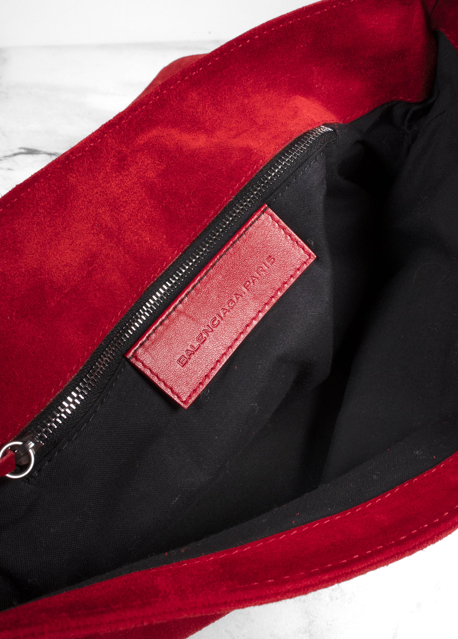 The Balenciaga Motocross Classic Folk Bag offers a unique blend of edgy style and luxury. Made from rich red suede, this bag features the brand's signature motorcycle-inspired detailing with studs, zippers, and a structured silhouette. The adjustable shoulder strap ensures comfort, while the multiple pockets provide ample storage space for your essentials. Perfect for adding a pop of color and an effortlessly cool vibe to any outfit, this bag is a statement piece for fashion-forward individuals.