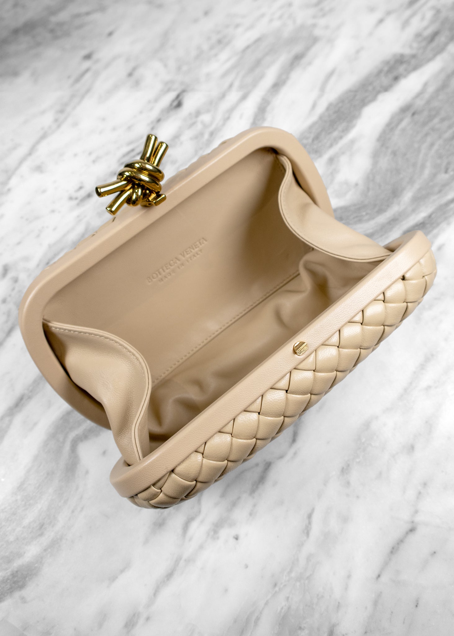 Bottega Veneta Knot Clasp Intrecciato Leather Minaudière
