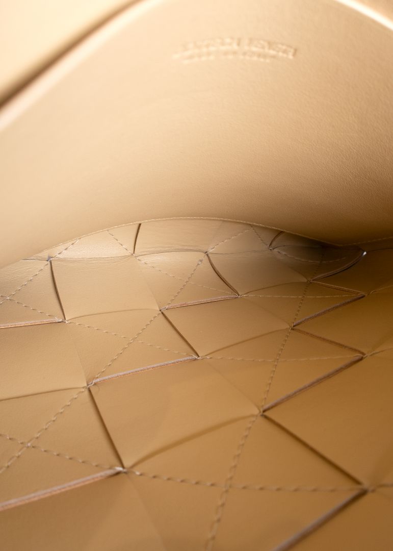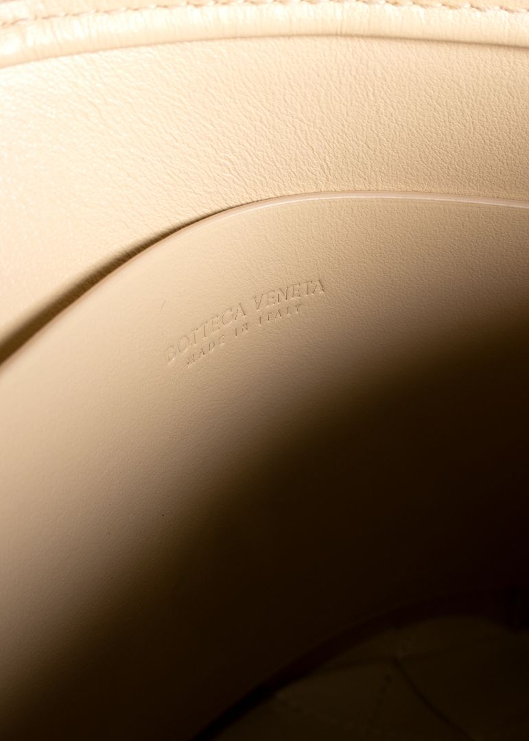 Crafted from supple leather in a warm beige tone, this Bottega Veneta clutch exemplifies the house's signature intrecciato weaving technique. The meticulously woven construction creates a refined texture while maintaining a streamlined silhouette perfect for evening occasions or sophisticated daytime styling. Its compact proportions offer practical elegance, fitting essentials while making a distinctive statement. The neutral palette ensures versatility across seasons and occasions, making it an enduring investment piece for the discerning wardrobe.