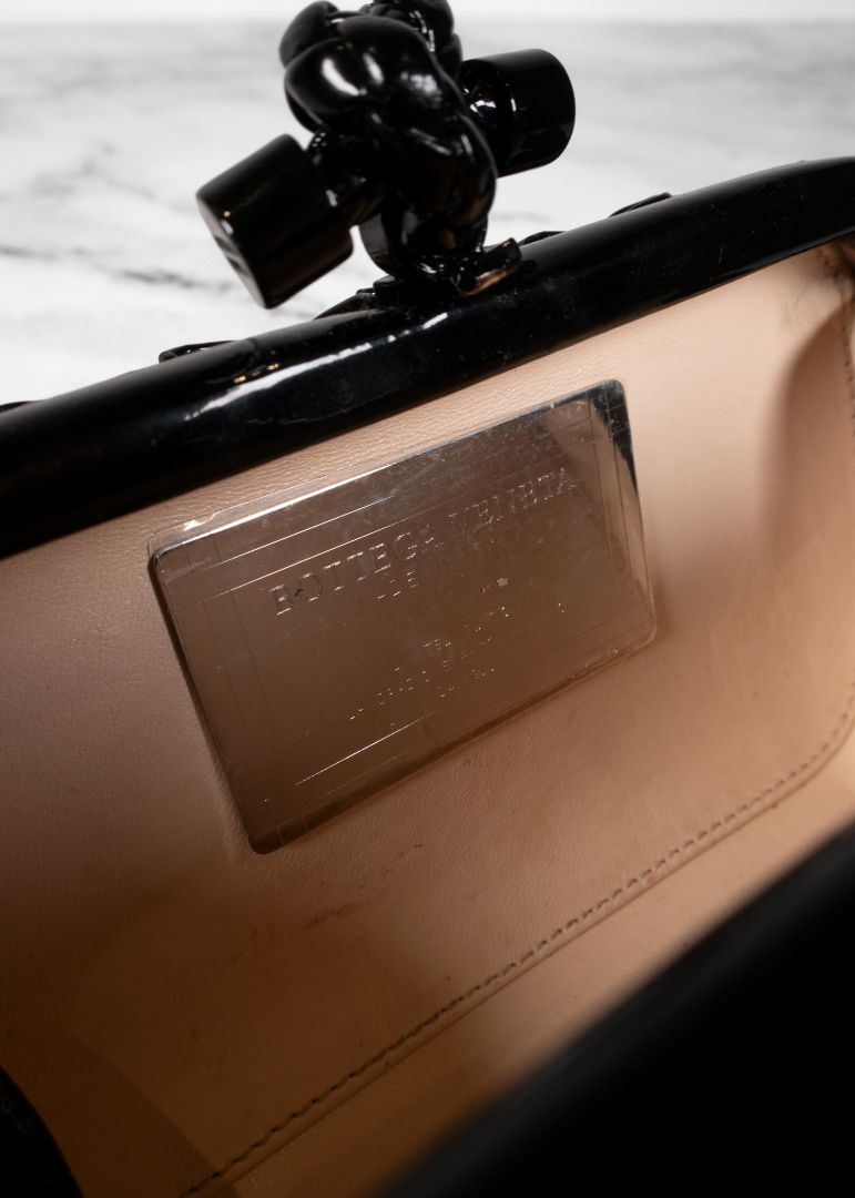 Bottega Veneta Black Patent Leather Origami Knot Clutch