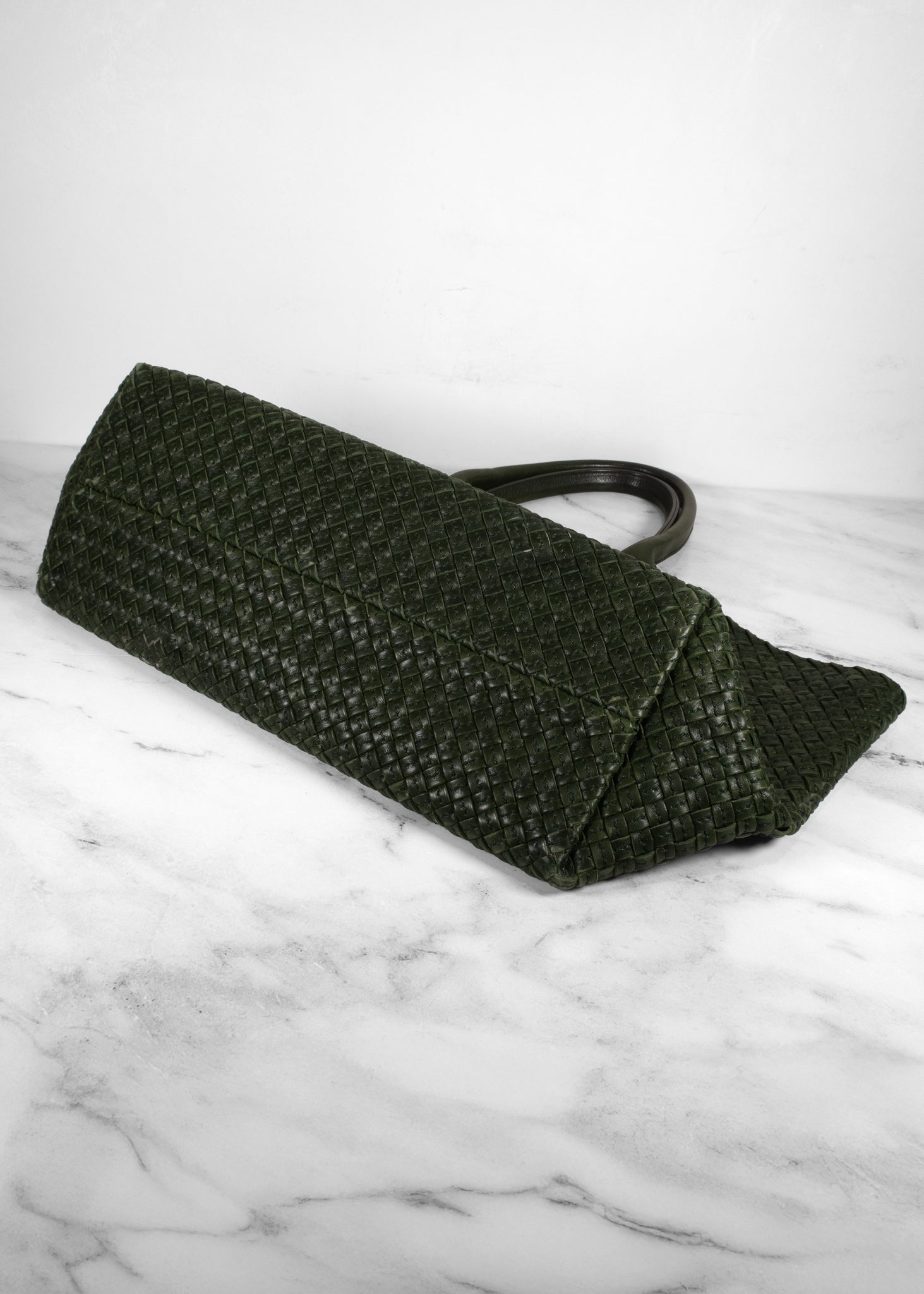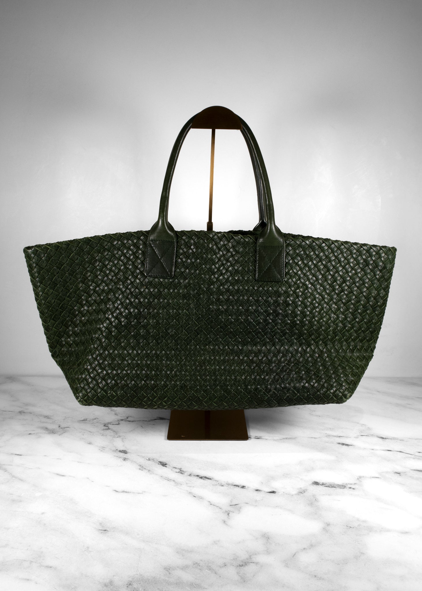 Bottega Veneta Dark Green Intrecciato Leather Medium Cabat Tote