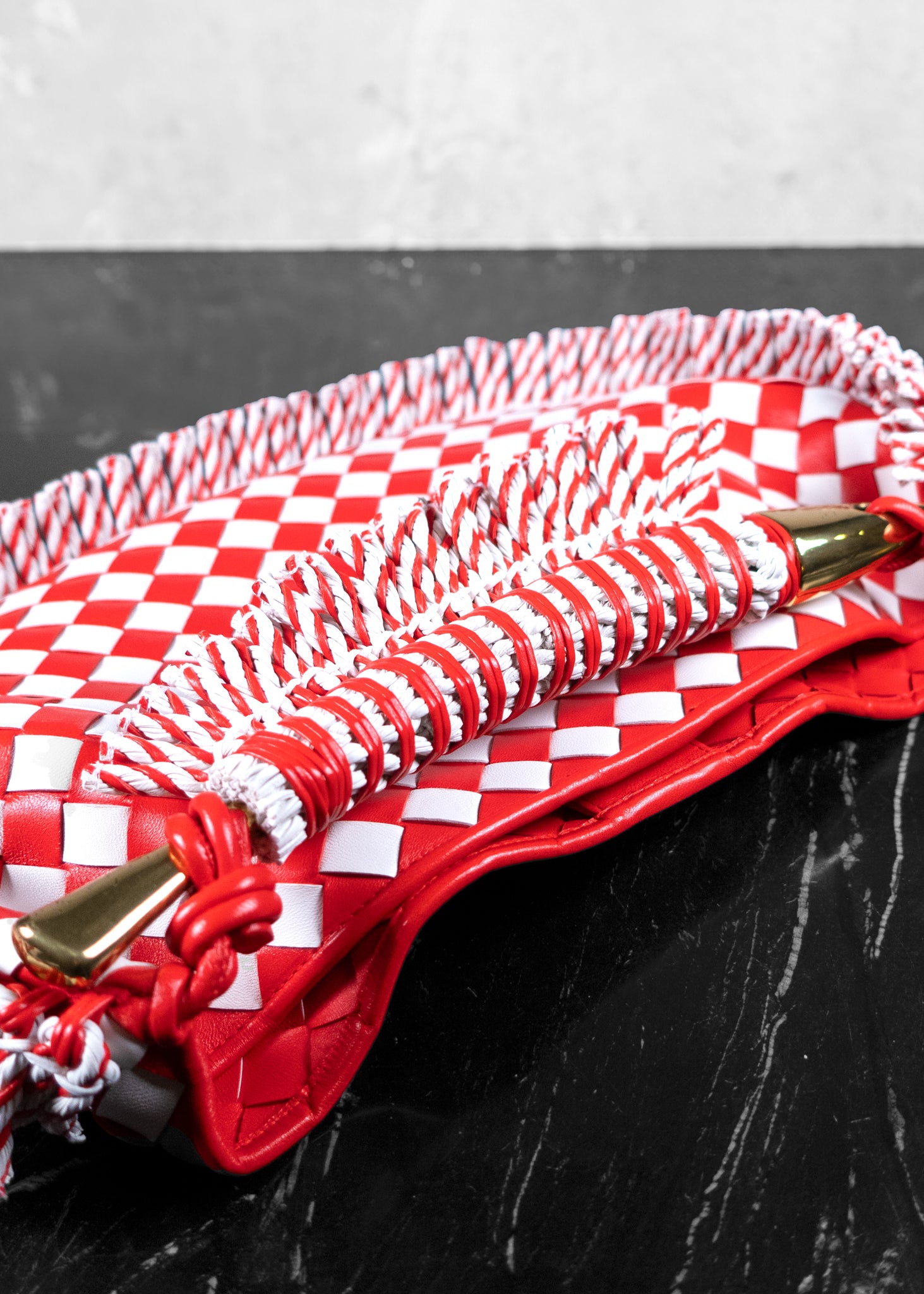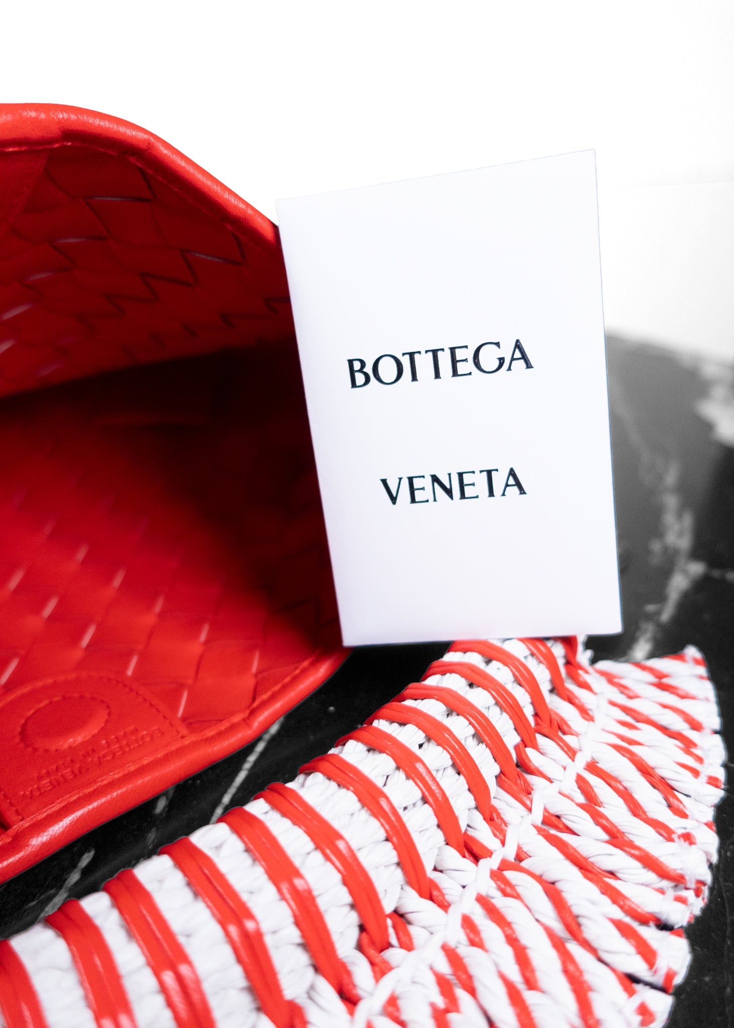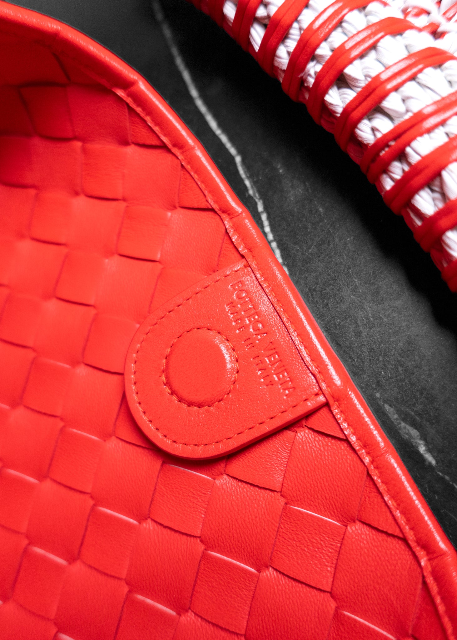 The Bottega Veneta Small Sardine Intrecciato Top Handle Bag is a sophisticated statement piece crafted from the brand's signature Intrecciato leather weave. Featuring a sculptural, curved metal handle reminiscent of a sardine, this elegant bag combines luxury craftsmanship with a unique design. Its compact size makes it perfect for day-to-night use, adding a touch of modern Italian elegance to any outfit.