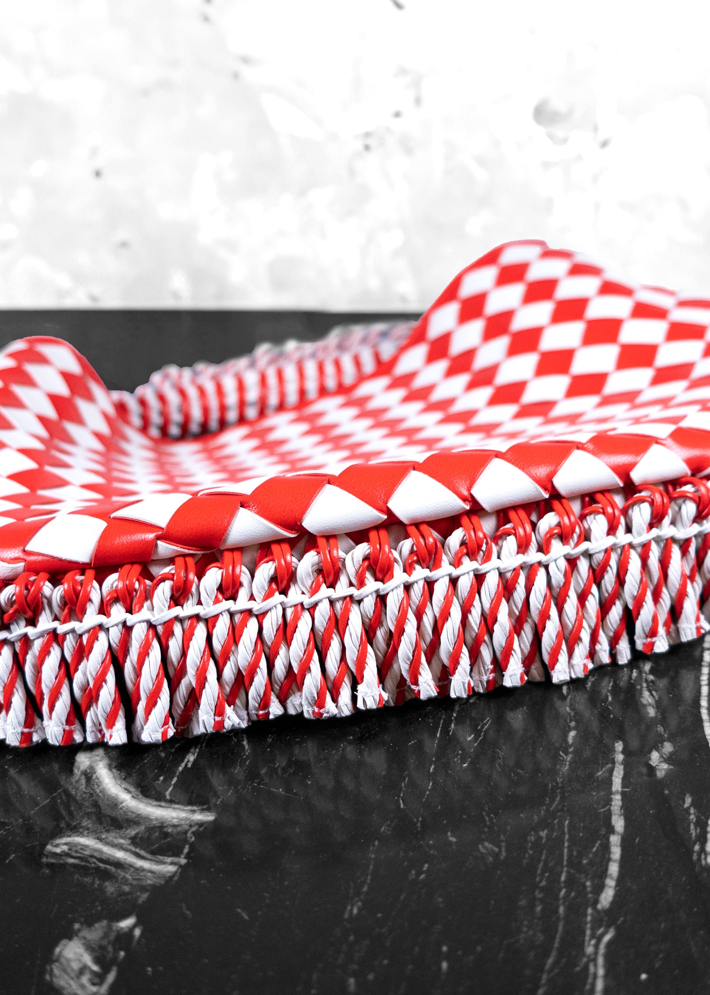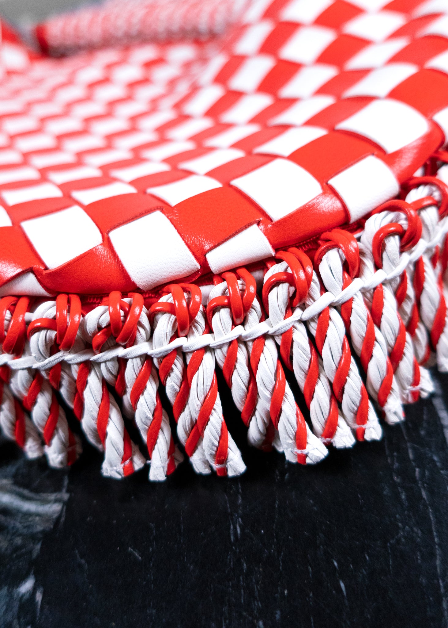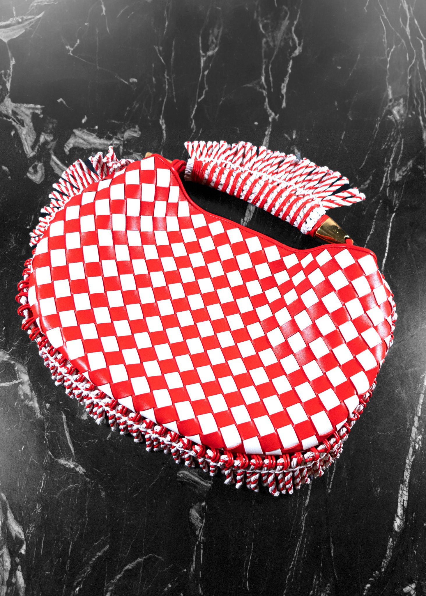 The Bottega Veneta Small Sardine Intrecciato Top Handle Bag is a sophisticated statement piece crafted from the brand's signature Intrecciato leather weave. Featuring a sculptural, curved metal handle reminiscent of a sardine, this elegant bag combines luxury craftsmanship with a unique design. Its compact size makes it perfect for day-to-night use, adding a touch of modern Italian elegance to any outfit.