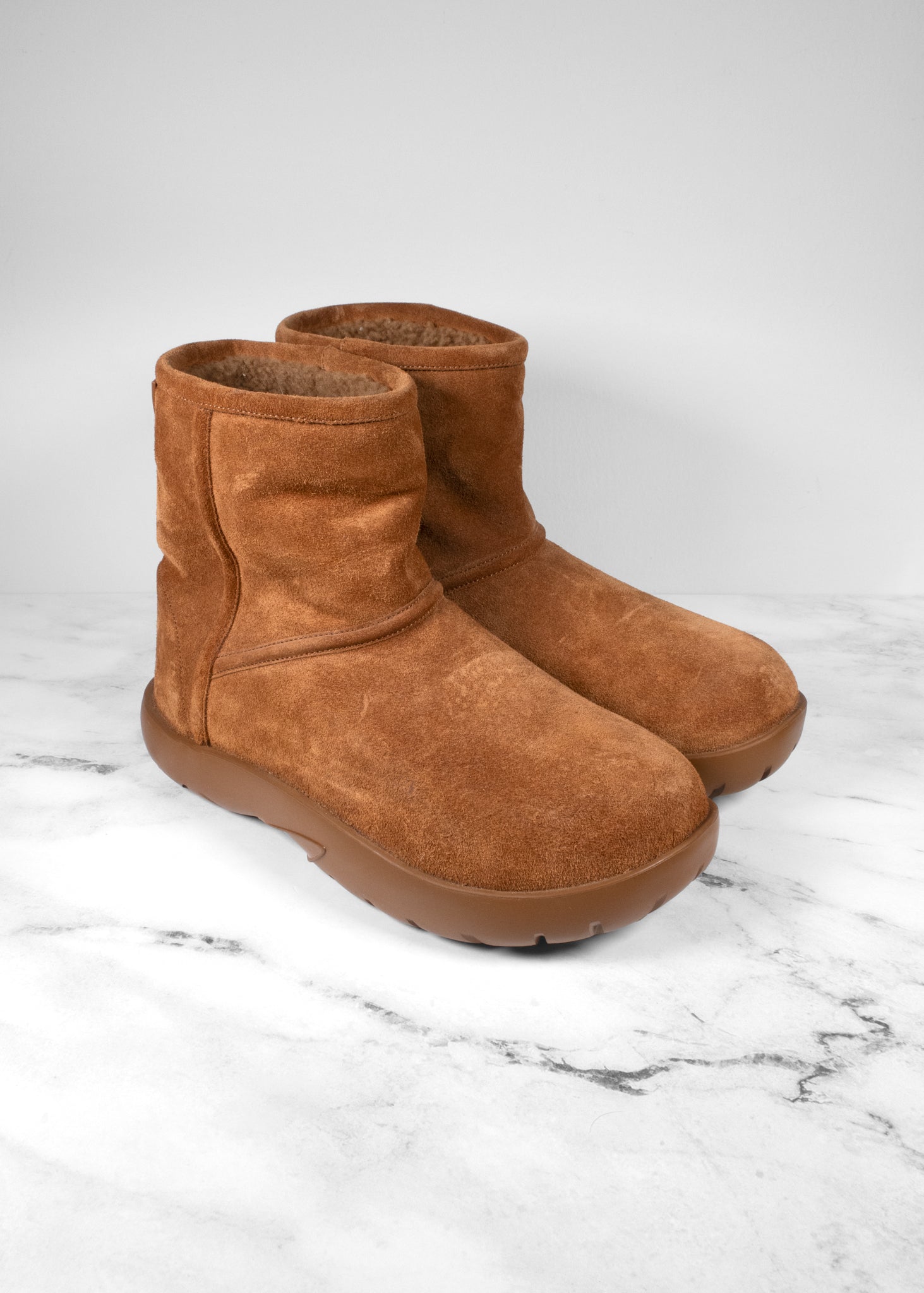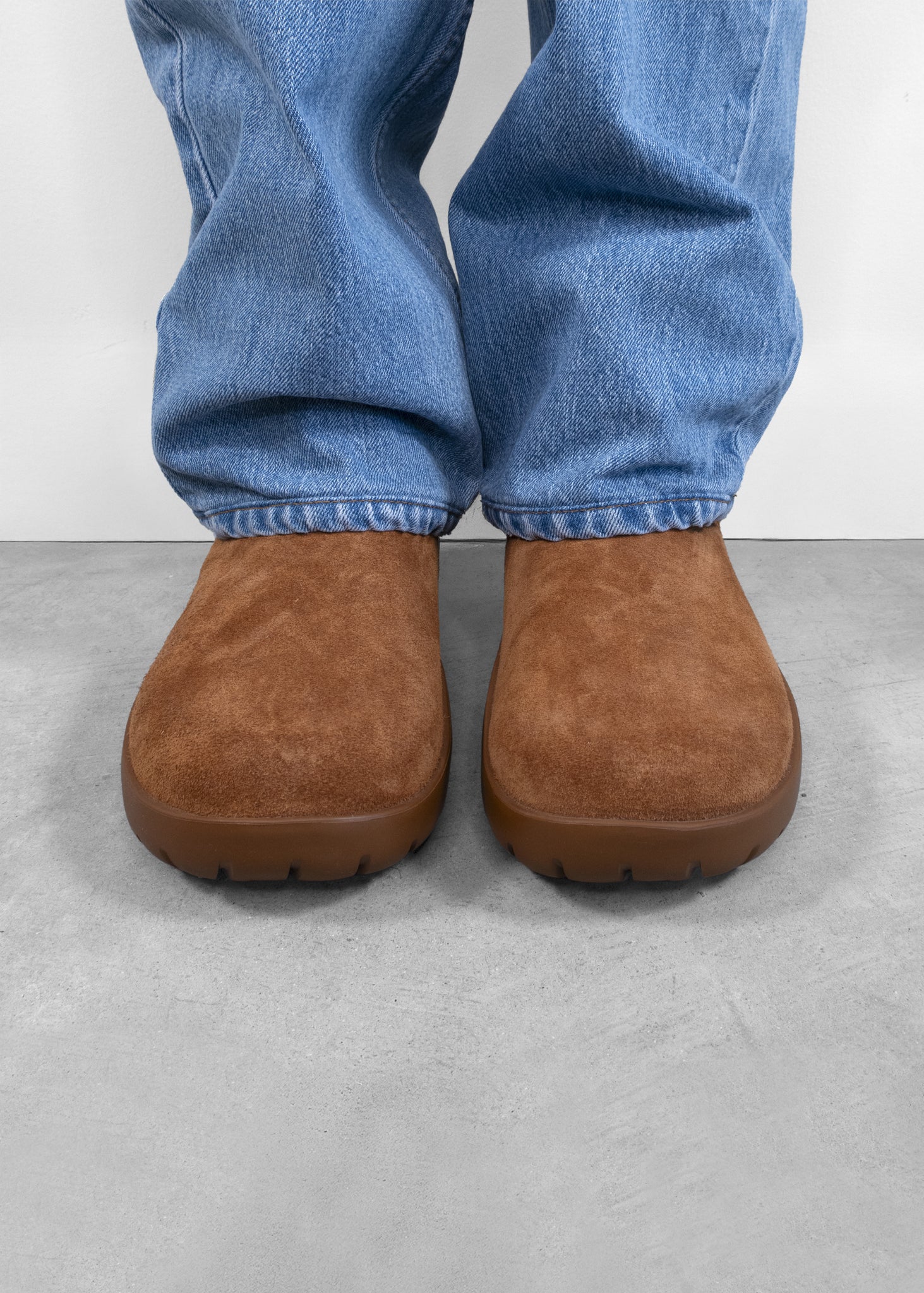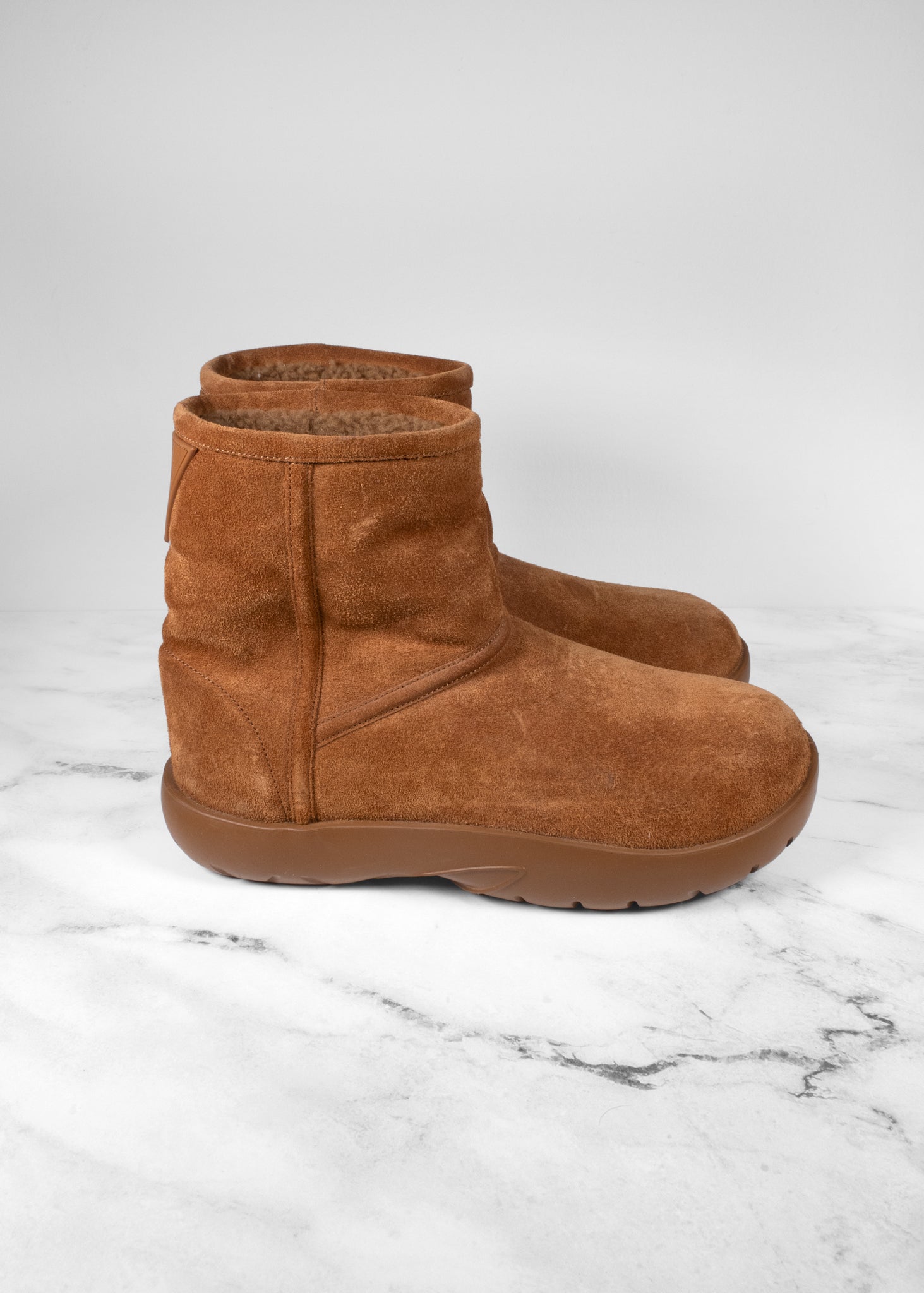 The Bottega Veneta Snap Ankle Boots in suede feature a sleek, contemporary design crafted from luxurious suede leather. These boots are defined by their minimalist silhouette, snap closures for a secure fit, and a durable rubber sole for comfort and traction. Perfect for elevating both casual and polished looks, they combine sophistication with everyday practicality.