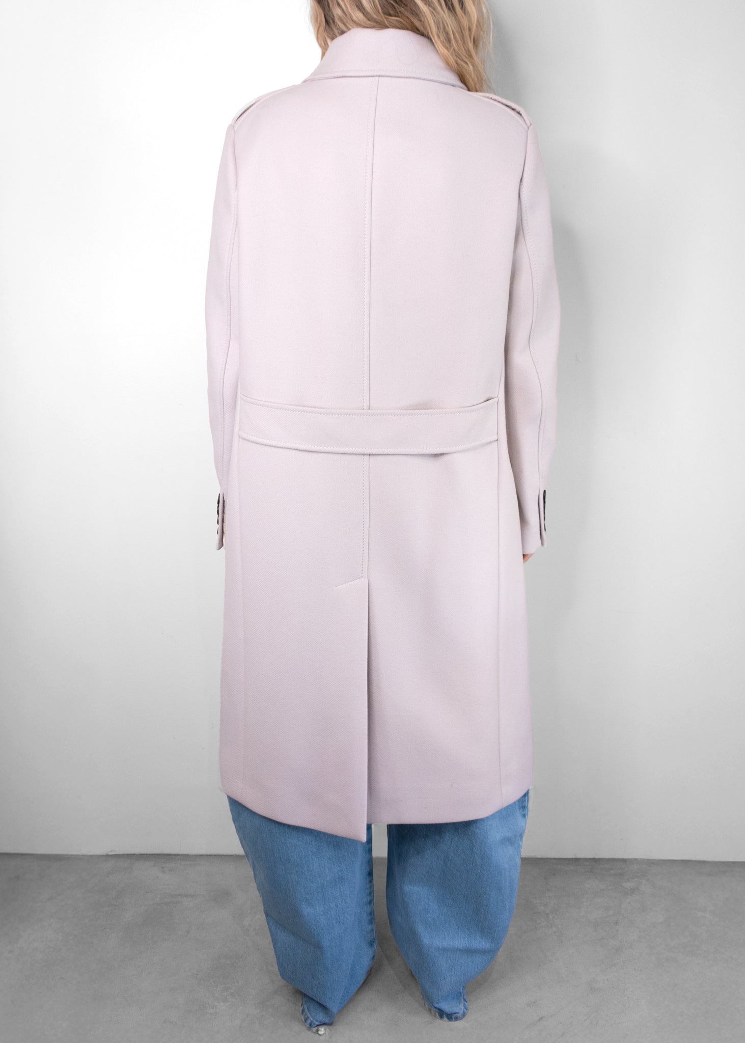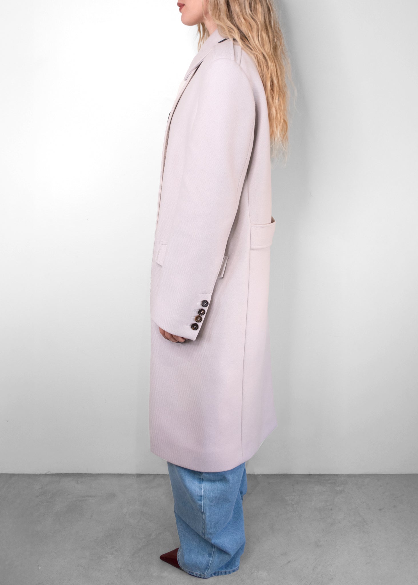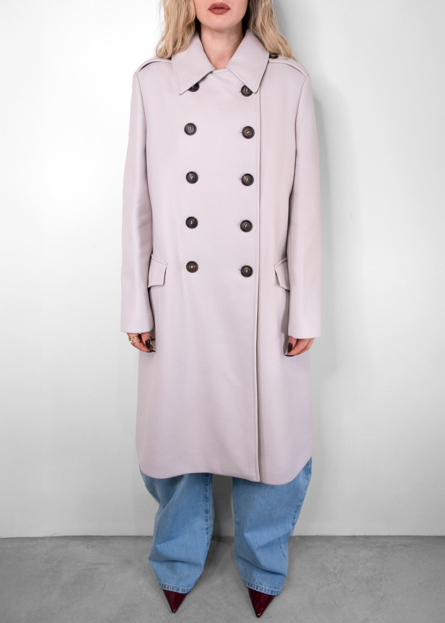 The Brunello Cucinelli Double-Breasted Long-Sleeved Coat epitomizes timeless elegance and sophistication. Crafted with meticulous attention to detail, this exquisite coat features a double-breasted silhouette that exudes classic charm. Its long sleeves provide both warmth and style, making it a versatile piece for various occasions. Made from high-quality materials, it offers luxurious comfort and durability. The coat's tailored fit and impeccable craftsmanship ensure a flattering silhouette, while its neutral hue adds versatility to any wardrobe. Whether worn over formal attire or paired with casual ensembles, the Brunello Cucinelli Double-Breasted Long-Sleeved Coat is a statement piece that elevates any look with effortless refinement. New with tags!! Has monoli detail along the collar