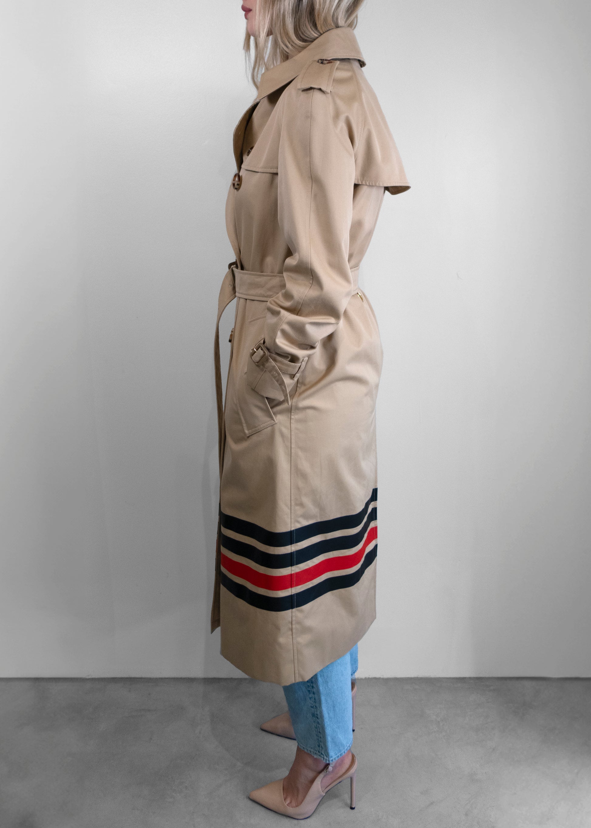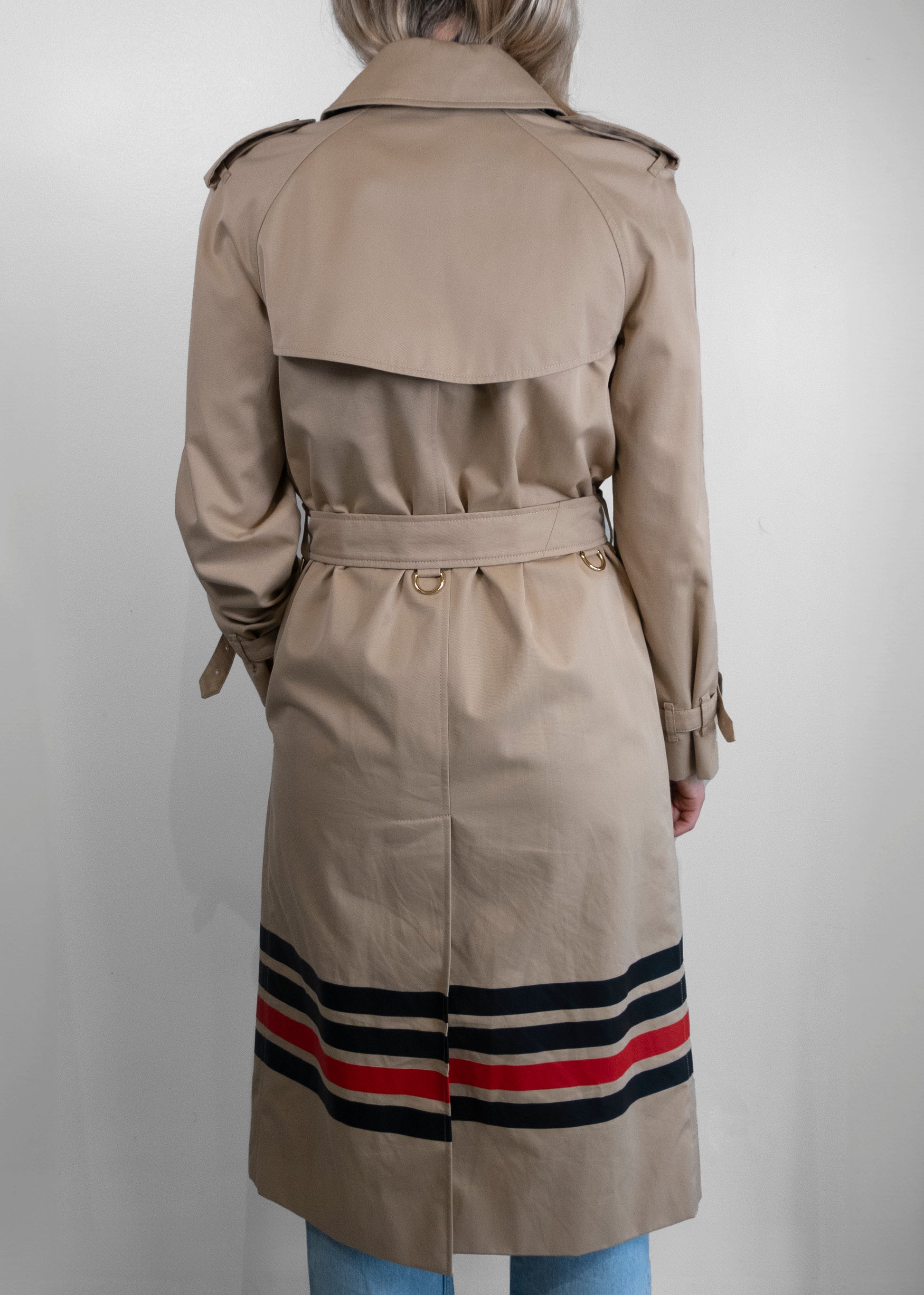 Burberry Stripe Detail Gabardine Trench Coat