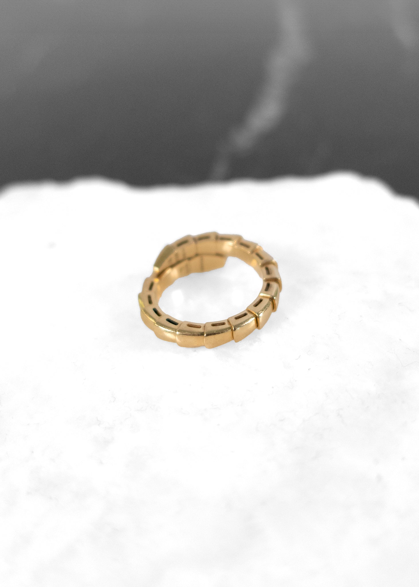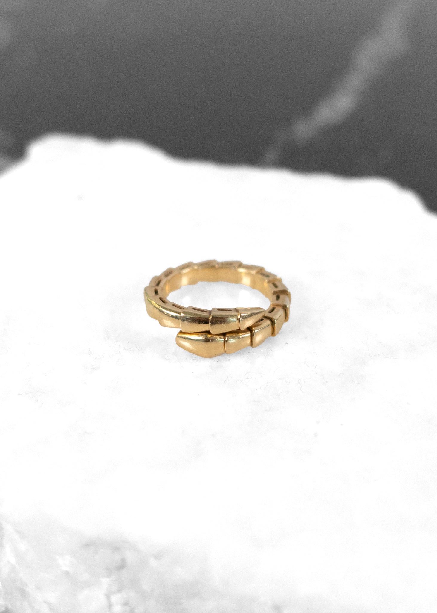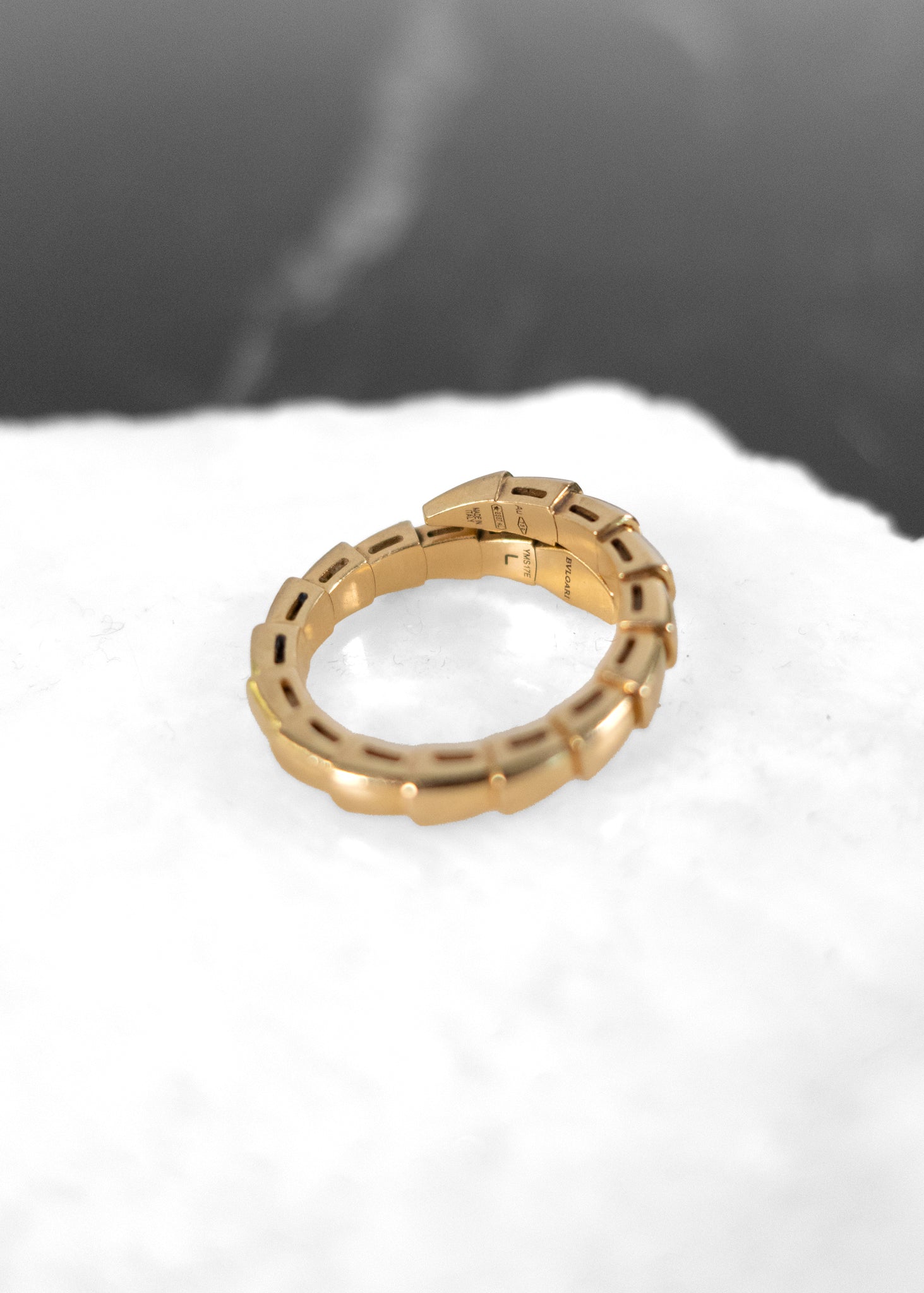 The Bvlgari Serpenti Yellow Gold Ring is a stunning blend of luxury and elegance, crafted from exquisite 18k yellow gold. Inspired by the sinuous, seductive form of a serpent, this iconic piece wraps gracefully around the finger, symbolizing power, mystery, and transformation. Perfect for those seeking a bold yet timeless statement accessory.