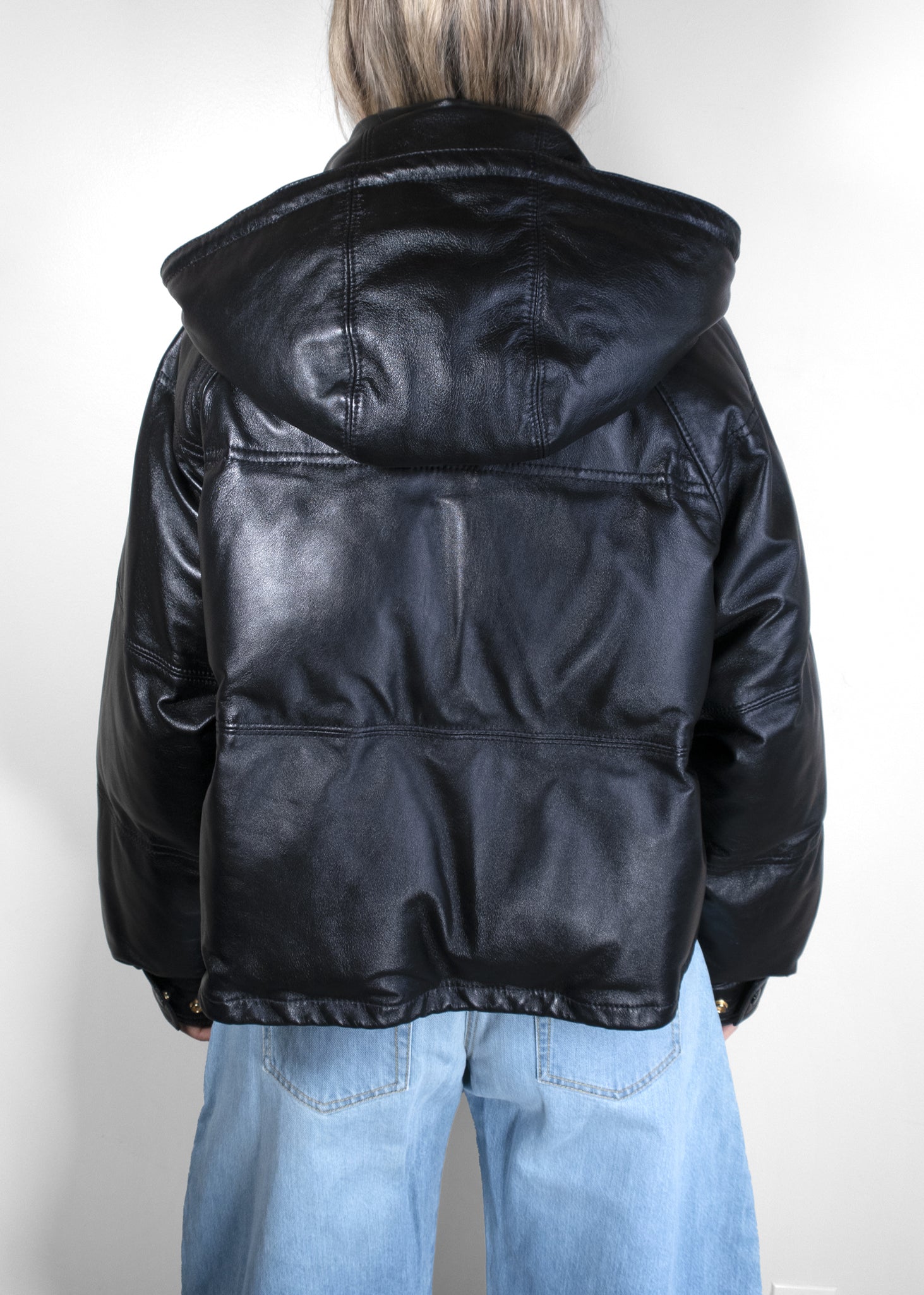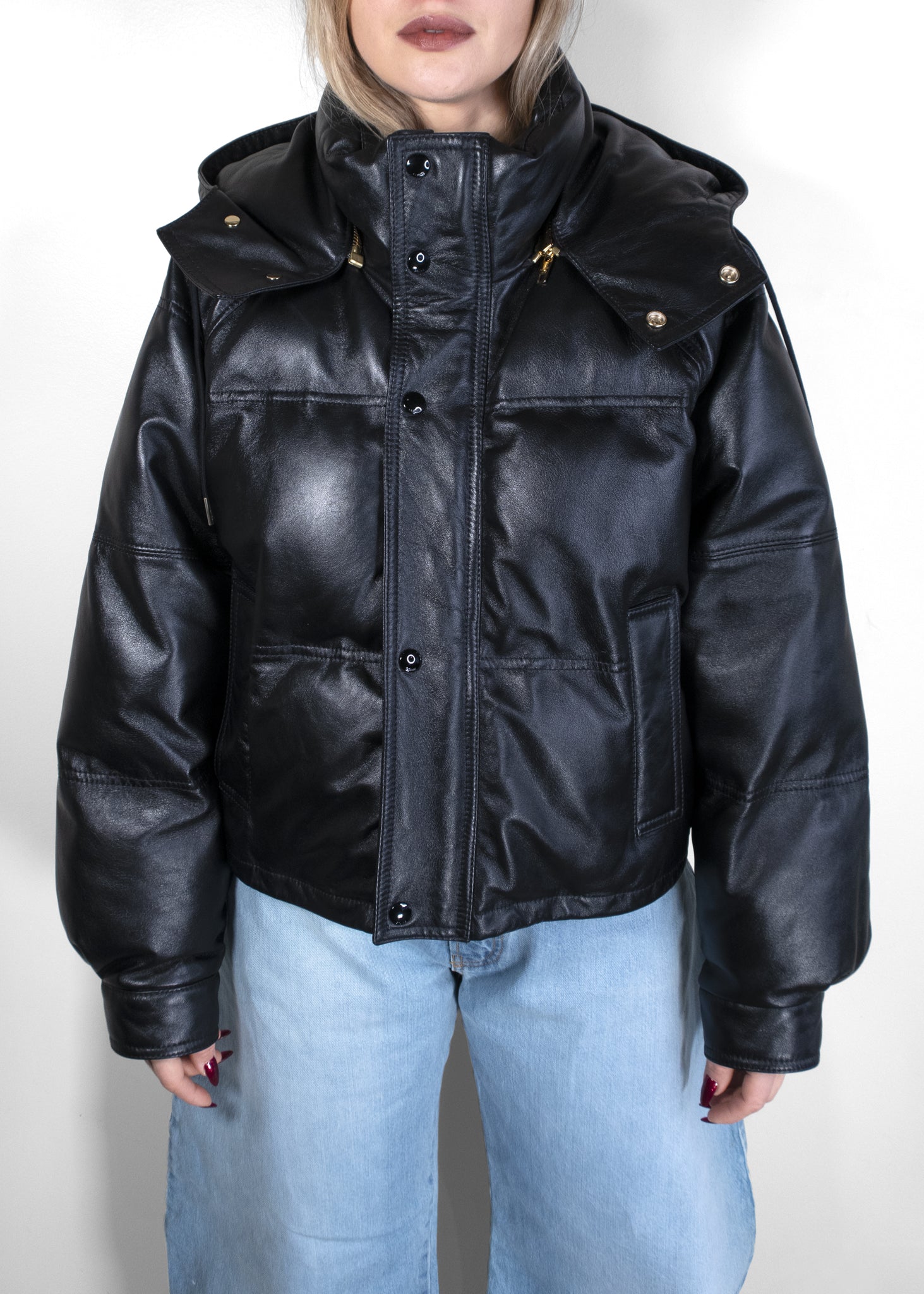 The Celine Cropped Quilted Jacket in Lambskin Leather is a luxurious outerwear piece featuring a sleek, cropped silhouette. Made from premium lambskin leather, it offers a soft, supple texture with a quilted design for added elegance. This versatile jacket is ideal for elevating both casual and formal ensembles.
