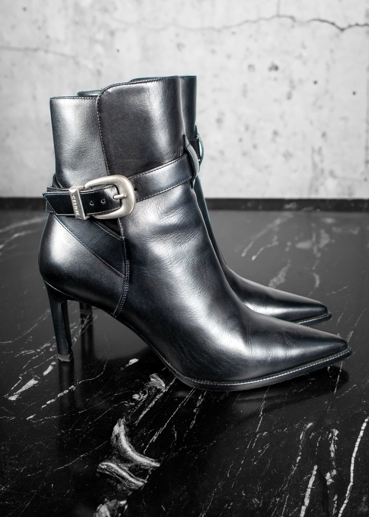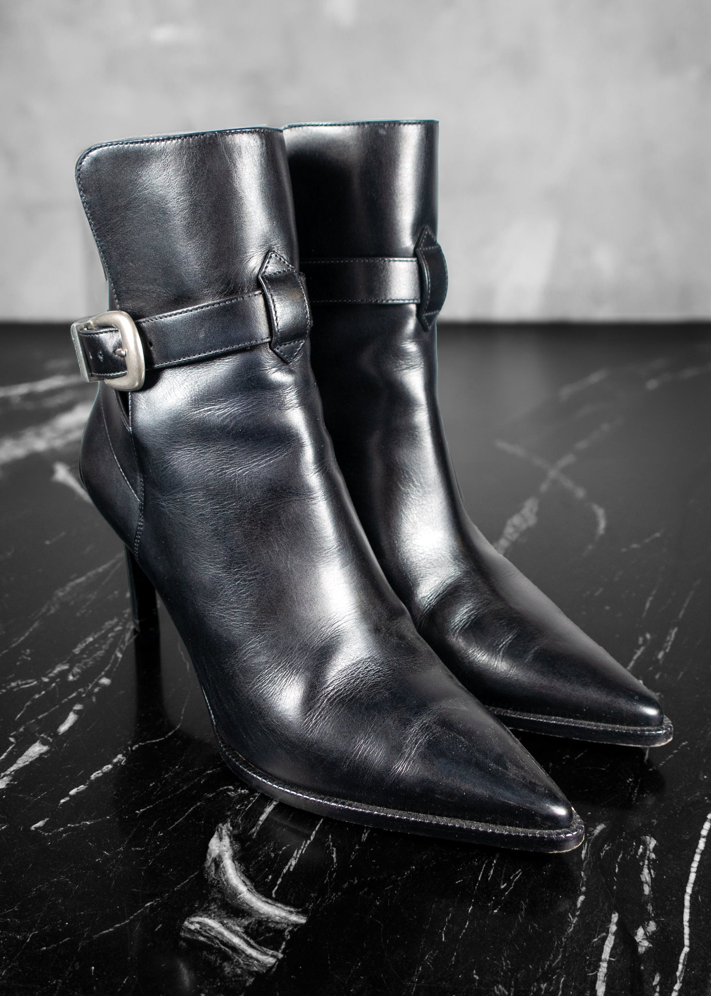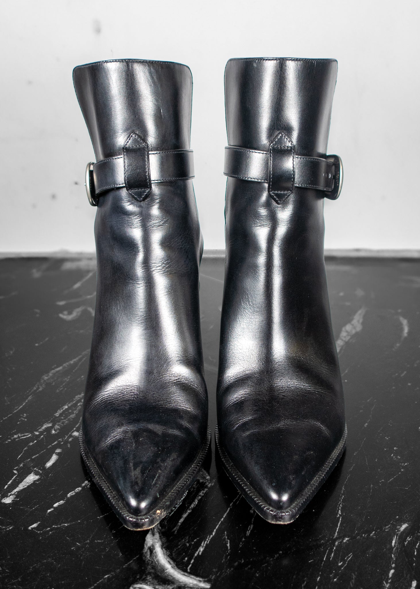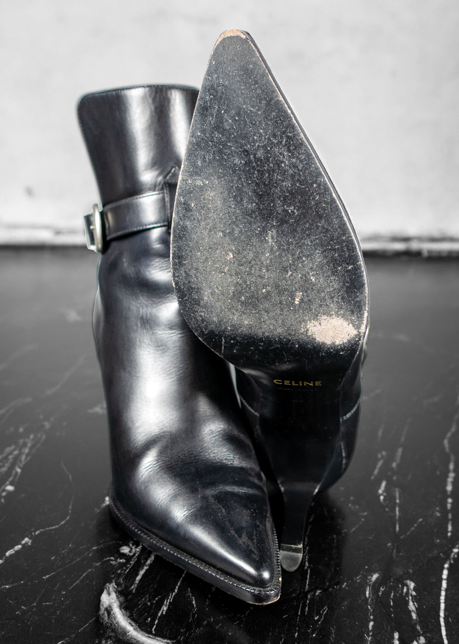 The Celine Jodhpur 80 Boots are a stylish and sophisticated footwear choice, featuring a sleek and timeless design. Crafted from high-quality leather, these boots showcase an elegant silhouette with a rounded toe and a moderate 80mm heel, providing both comfort and a flattering lift. The standout feature is the distinctive jodhpur strap and buckle detail, which wraps around the ankle for a secure fit and adds a touch of equestrian-inspired charm. Perfect for both casual and dressy occasions, the Celine Jodhpur 80 Boots effortlessly combine functionality and fashion, making them a versatile addition to any wardrobe.