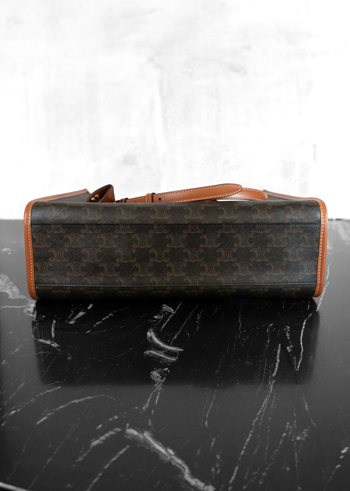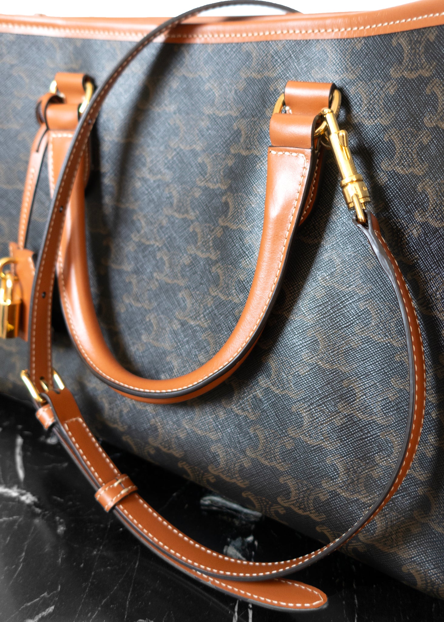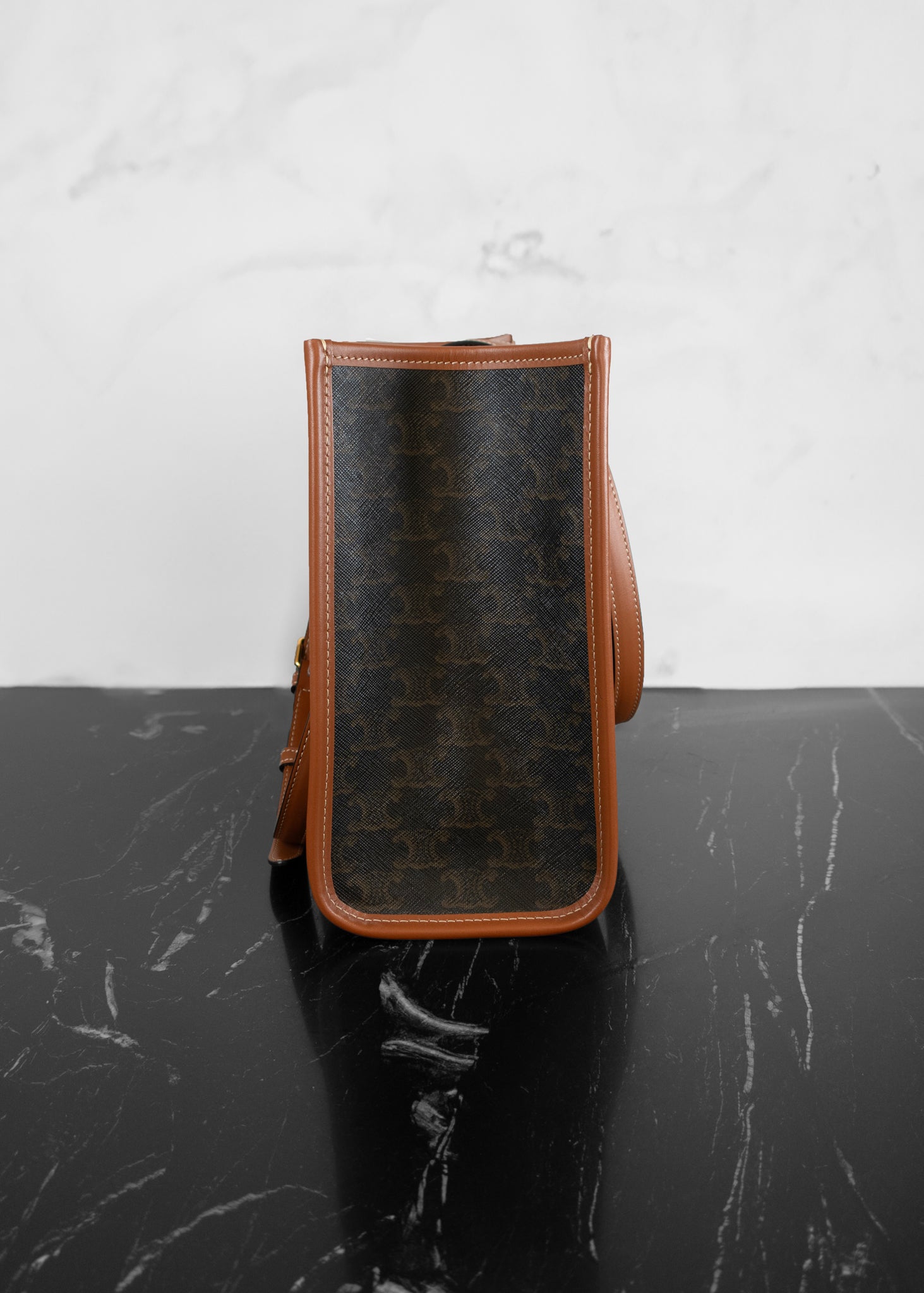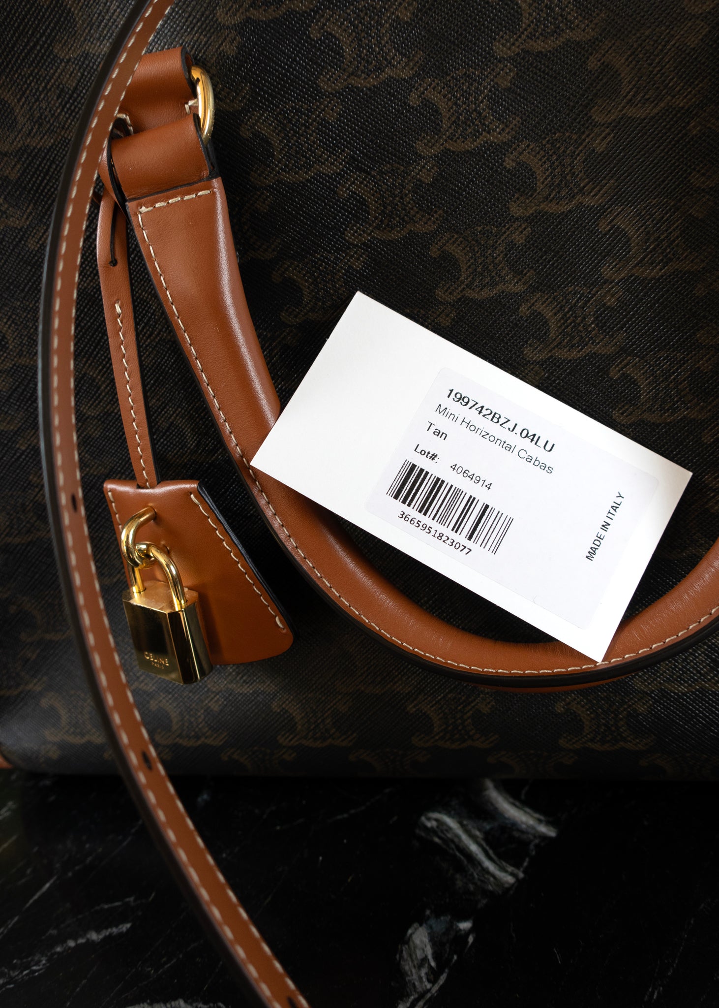 New with tags!! The Celine Mini Horizontal Cabas is a chic and versatile tote crafted from the brand's signature Triomphe canvas, accented with luxurious calfskin leather. Its compact yet spacious design makes it perfect for everyday use, combining timeless elegance with practical functionality. The iconic Celine logo subtly adorns the front, adding a touch of understated sophistication to this must-have accessory.
