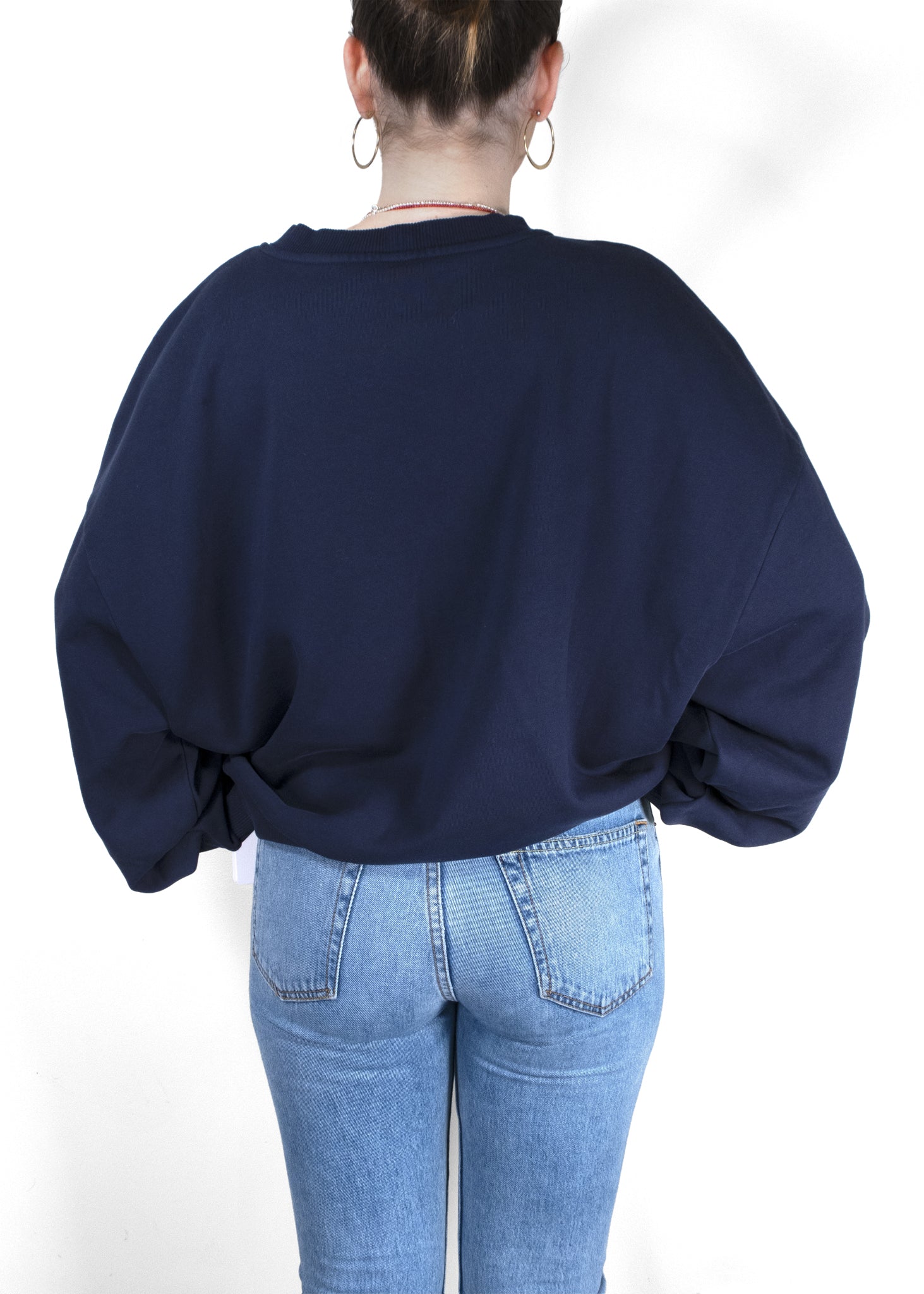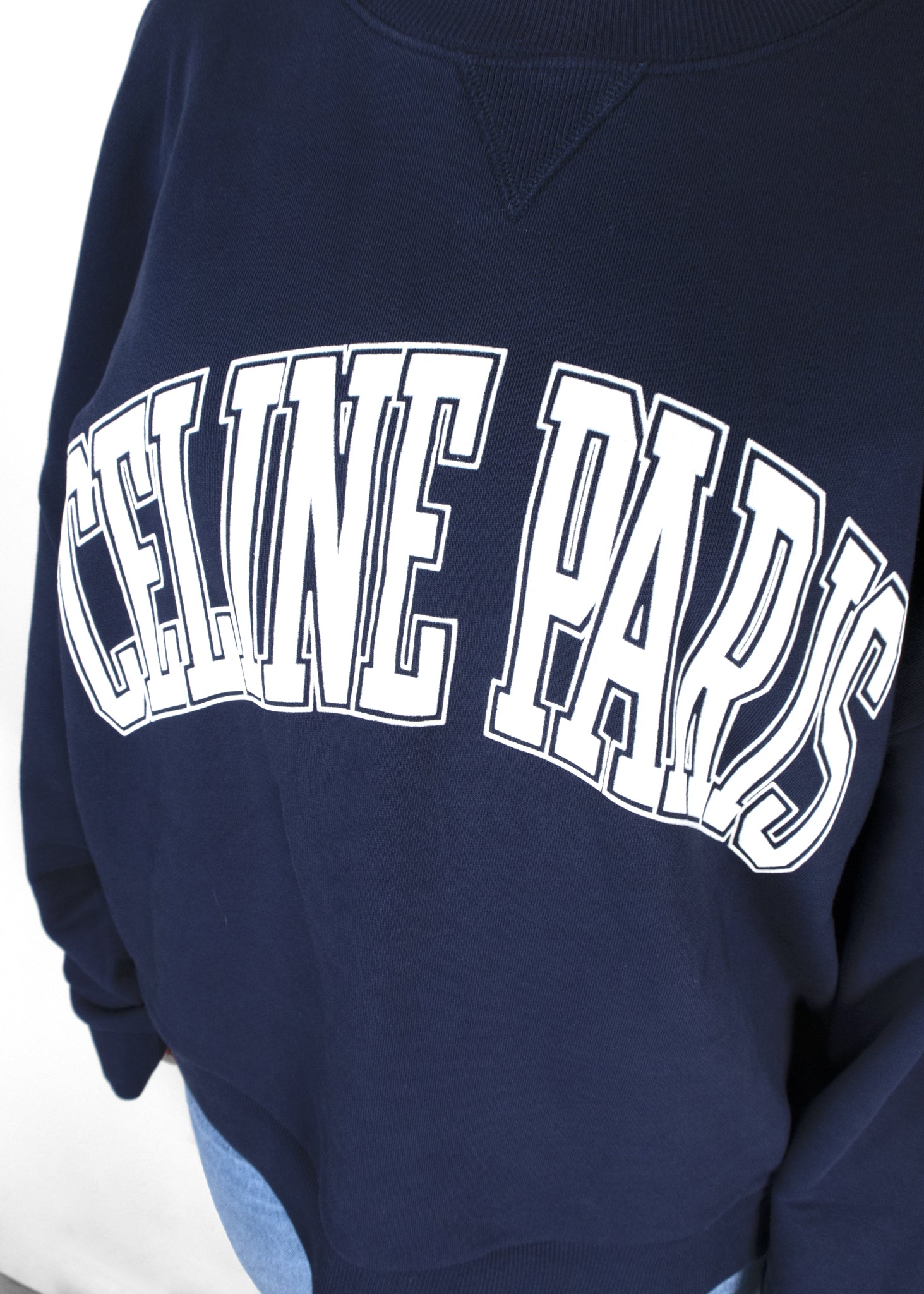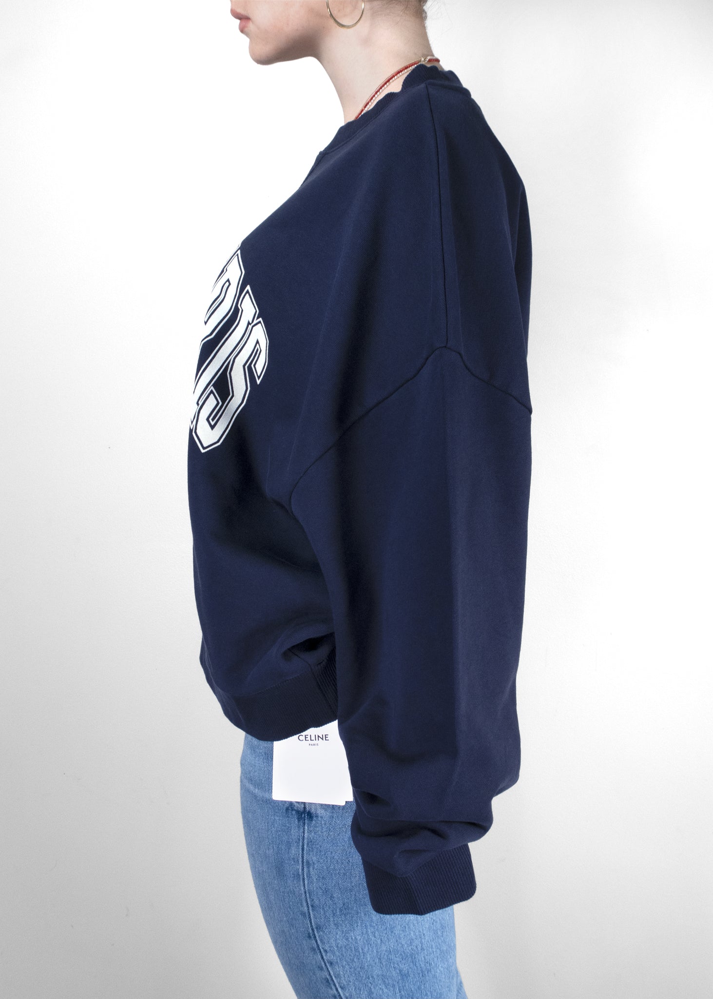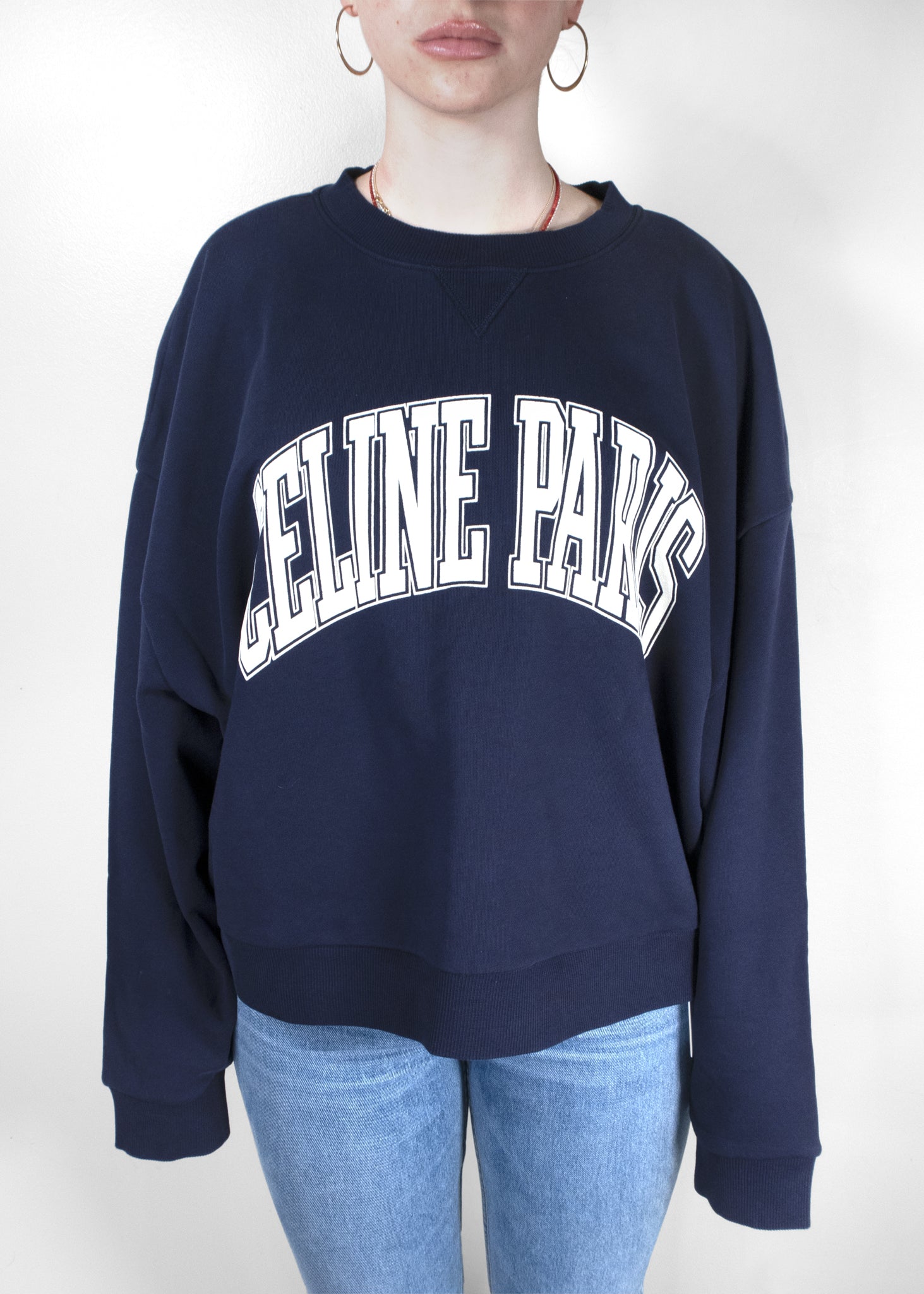 The Celine Oversized Sweatshirt in Cotton Fleece is a relaxed-fit garment made from soft, premium cotton fleece. Designed for comfort and effortless style, it features a ribbed crew neckline, cuffs, and hem. Its oversized silhouette offers a modern, casual aesthetic, making it a versatile staple for everyday wear.