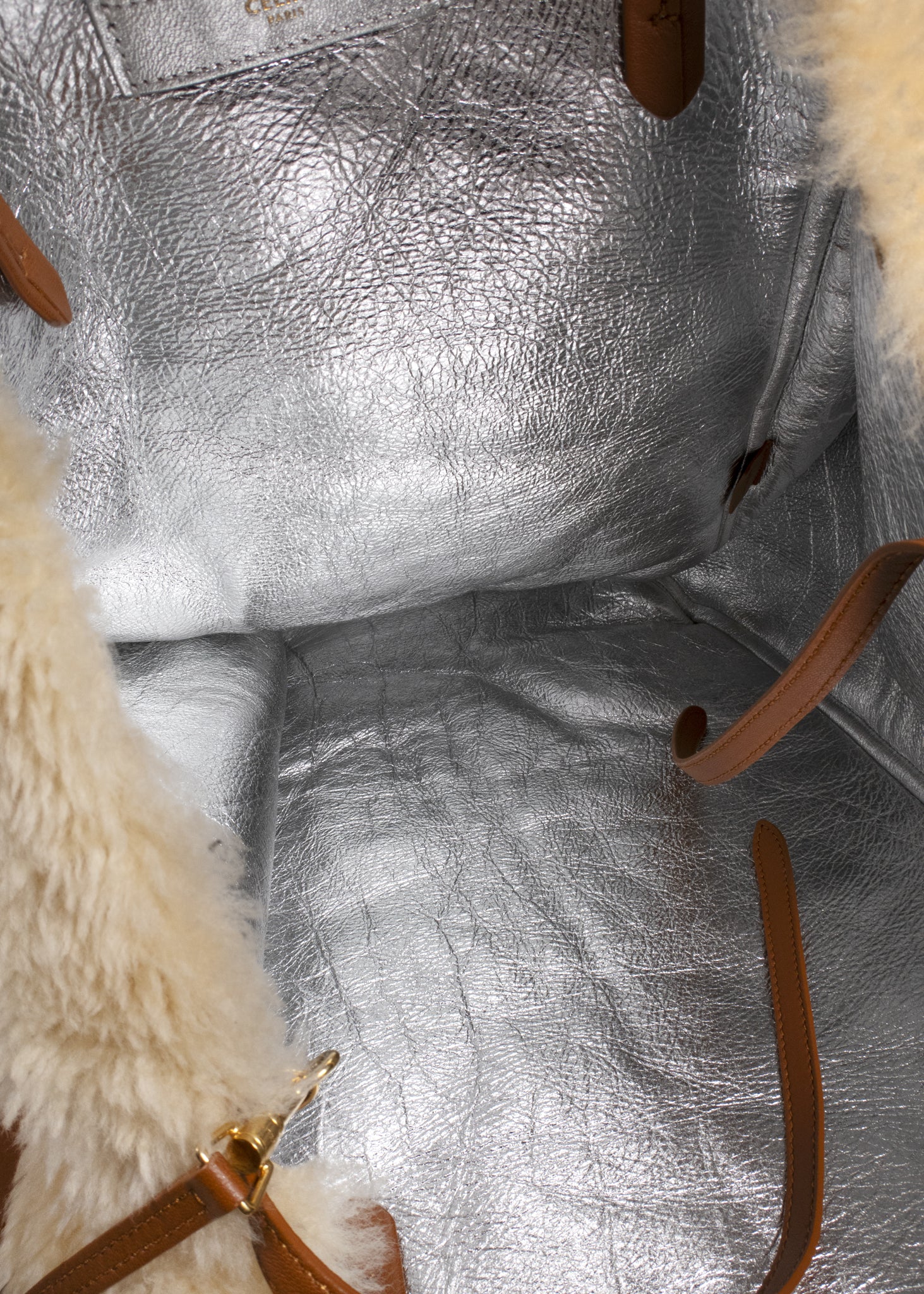 The Celine Reversible Shearling Cabas Phantom Tote is a luxurious and versatile handbag crafted from soft shearling. Featuring a spacious interior, this tote can be worn on either side, offering two distinct looks. Its minimalistic design and elegant structure make it a perfect addition to any wardrobe, blending both style and functionality. Ideal for everyday use, it elevates casual and formal outfits alike.