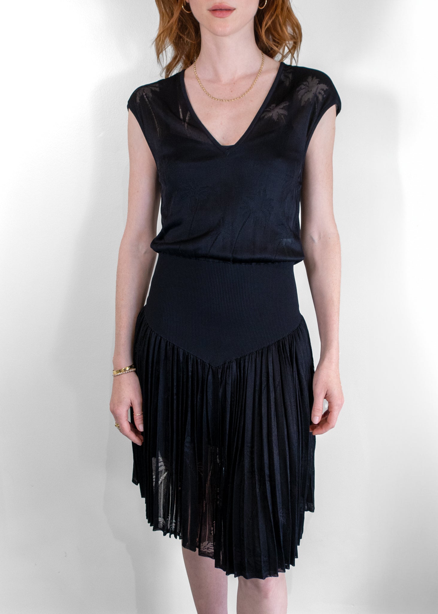 Chanel 2018 Sleeveless Pleated Dress in Black Viscose