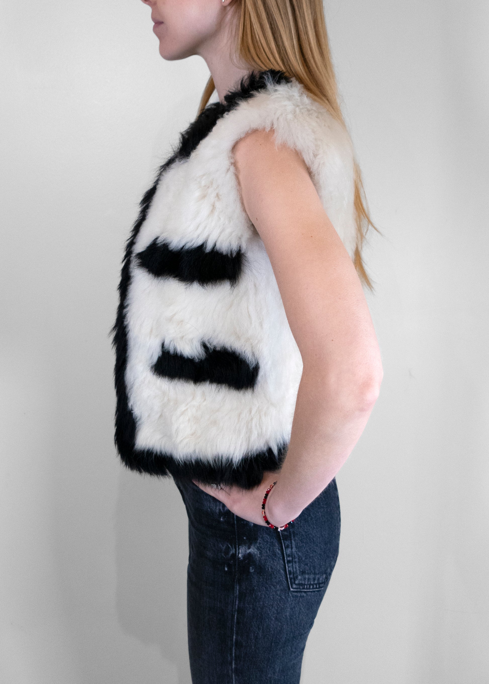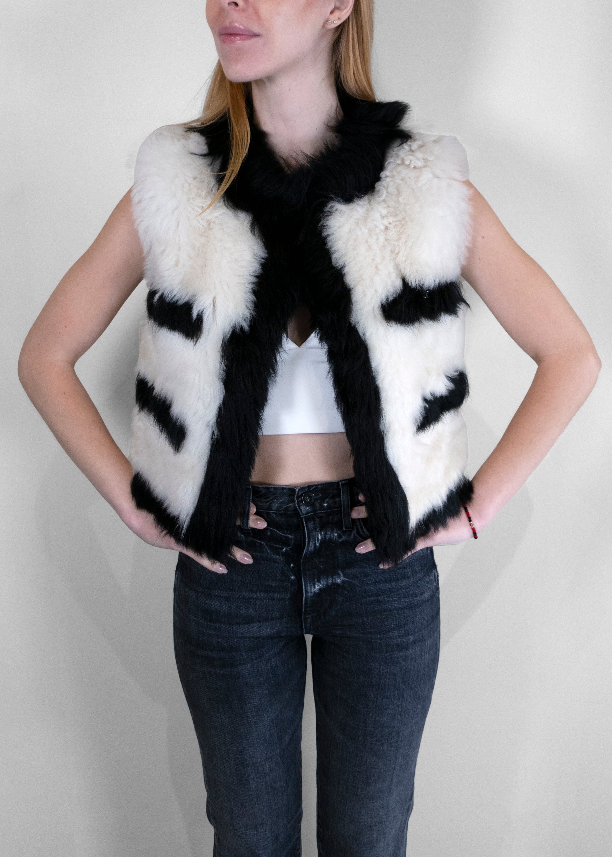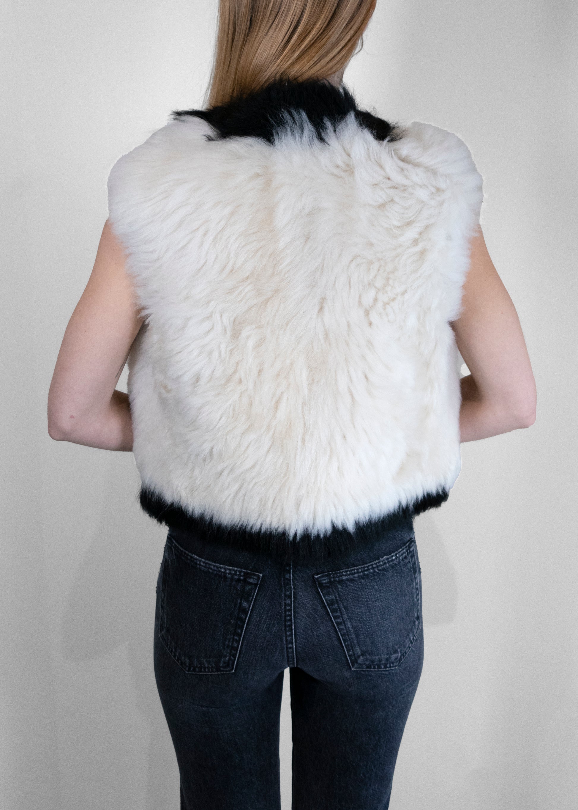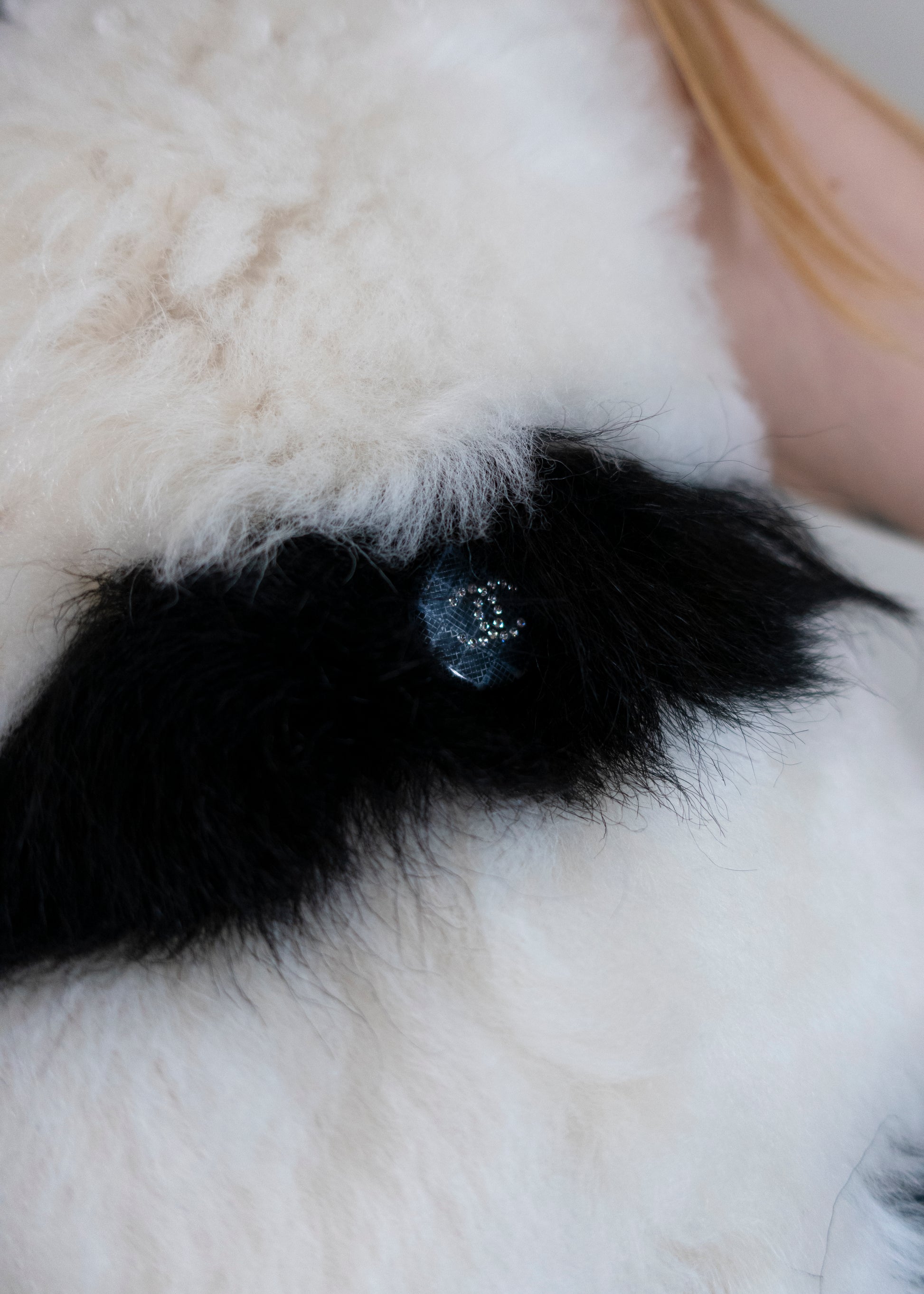 Introducing the Chanel Shearling Fur Jacket from the Fall 2021 Collection by Virginie Viard. This stunning black jacket features the iconic interlocking CC logo, adding a touch of luxury to your wardrobe. Its collarless design creates a sleek silhouette, while slit pockets provide practicality and style. The jacket is elegantly secured with a hook and eye closure, making it a chic addition to any ensemble. Embrace the sophistication of Chanel with this timeless piece that exudes both warmth and elegance.