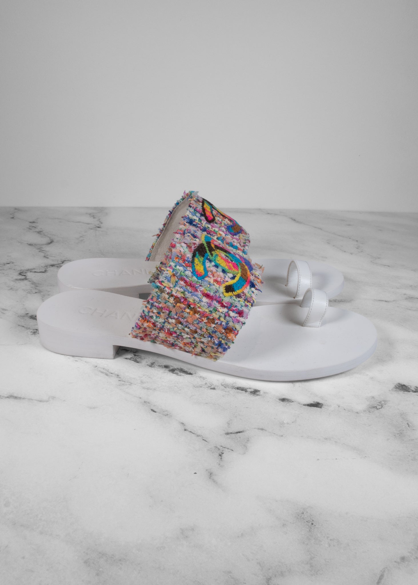 Elevate your casual look with the Chanel 2023 Interlocking CC Logo Slides. Expertly crafted, these slides feature the iconic interlocking CC logo, symbolizing timeless luxury. Designed for comfort and style, they offer a sleek silhouette perfect for both indoor and outdoor wear. Ideal for those who appreciate refined craftsmanship paired with effortless elegance.