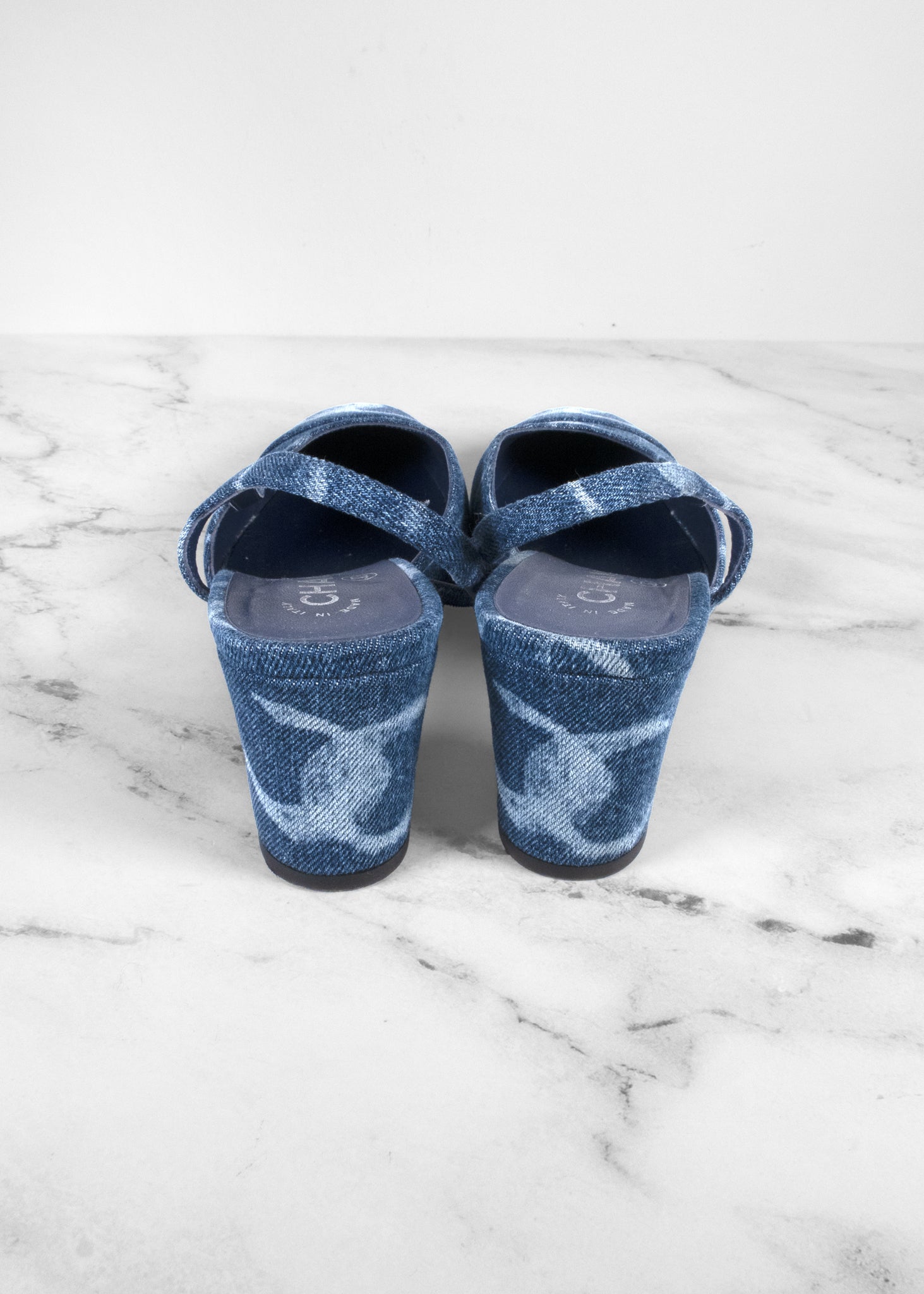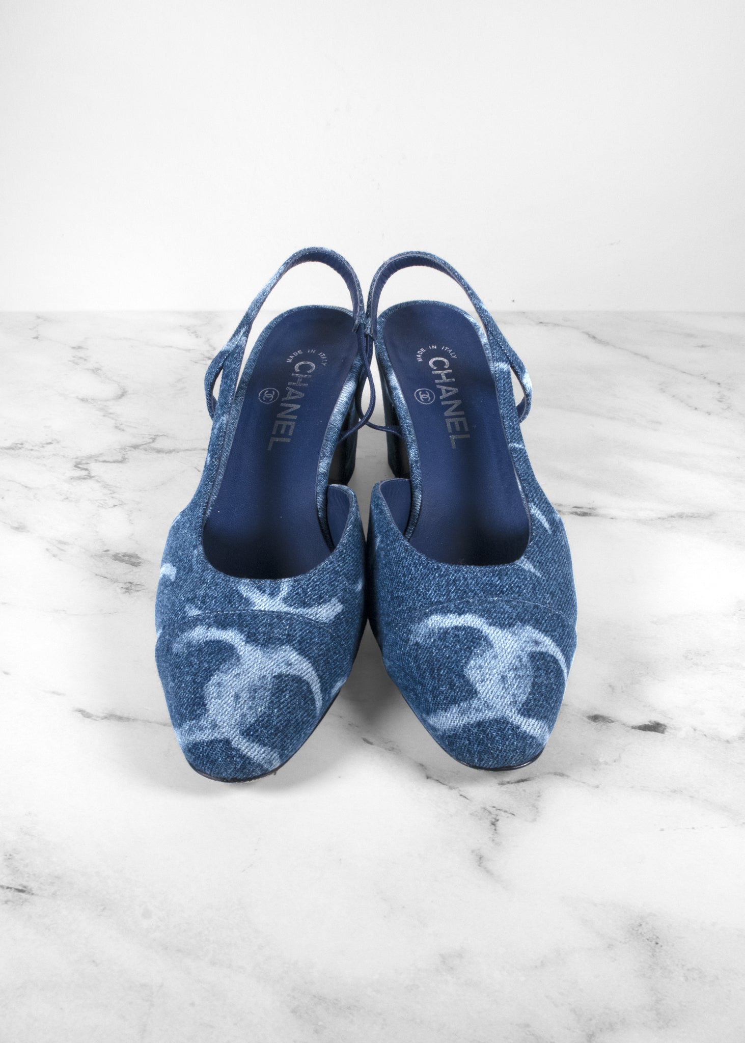 These Chanel 2023 Interlocking CC Logo Slingback Pumps are a modern twist on classic elegance. Crafted from premium denim, these shoes feature a distinctive interlocking CC logo on the heel for an iconic touch. The slingback strap ensures a secure fit, while the wide block heel provides comfort for all-day wear. The denim material with subtle faded details adds a contemporary edge, making these pumps perfect for adding a chic touch to both casual and dressy outfits. A stylish statement piece for your wardrobe, designed to elevate any look.