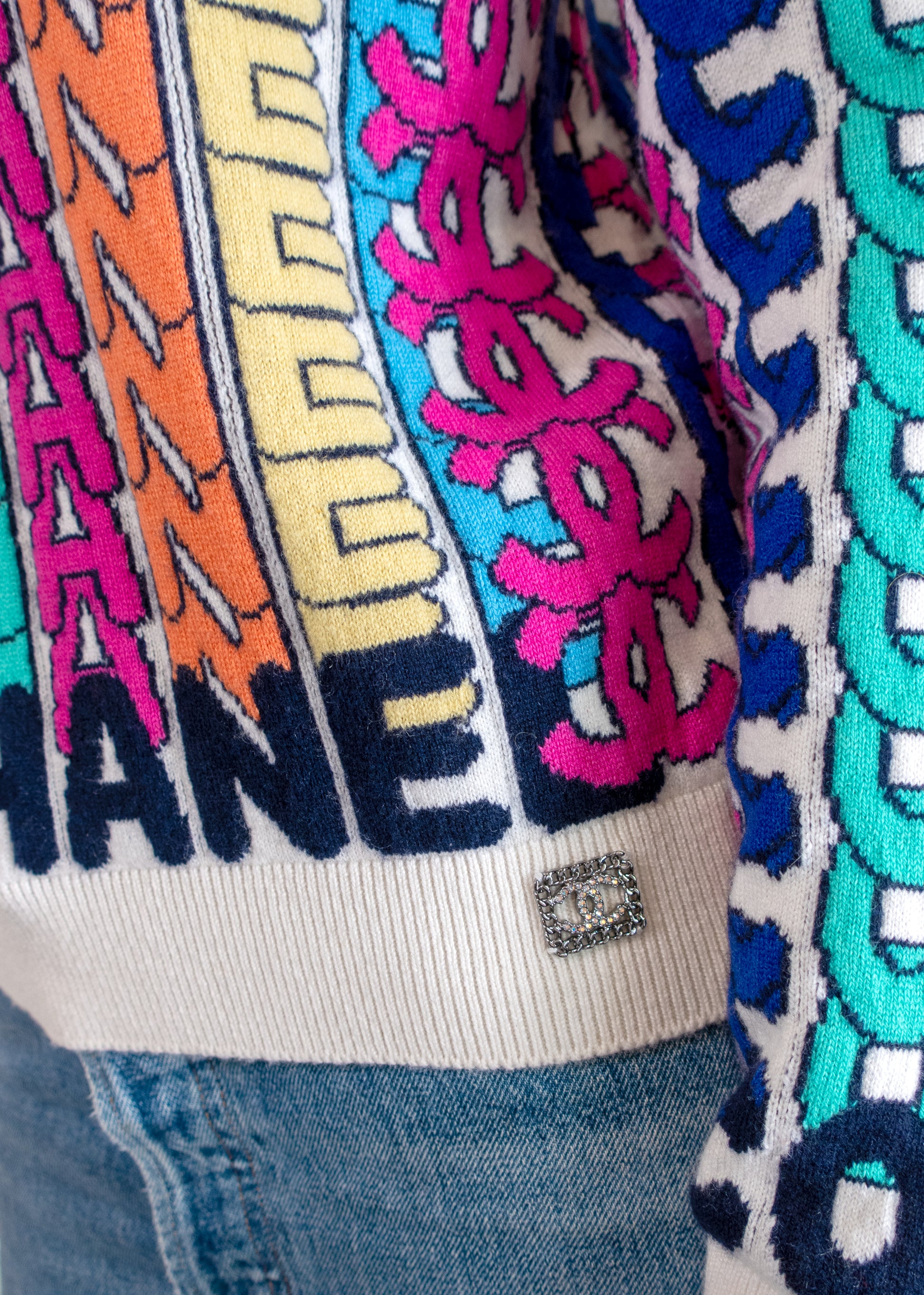 Chanel 21k Rainbow Letter Logo Sweater