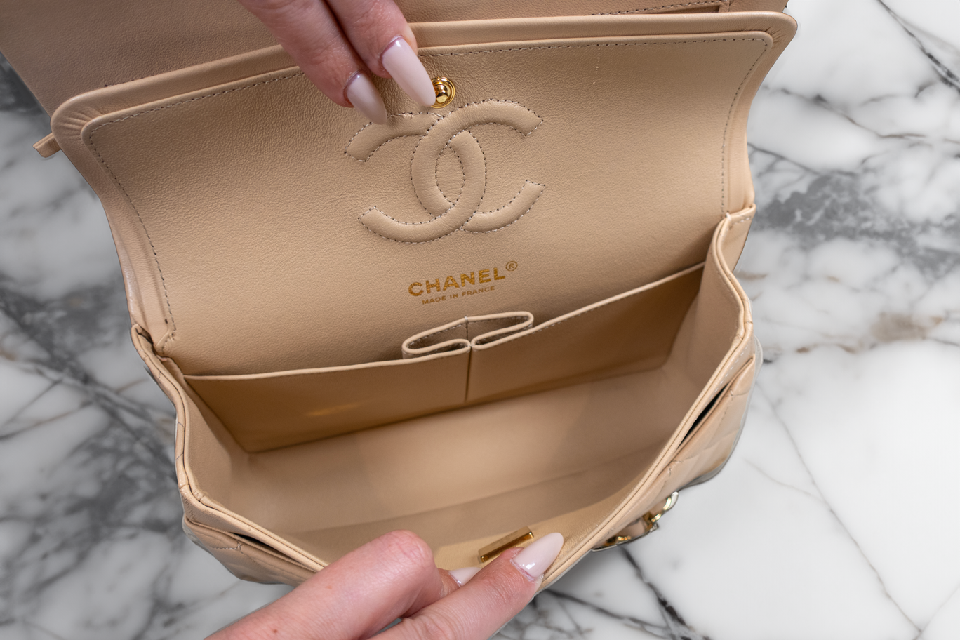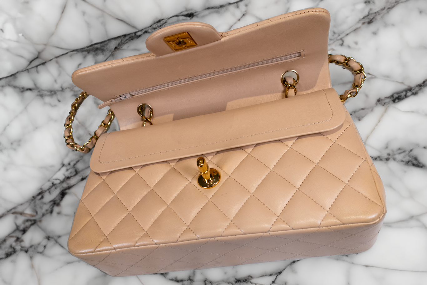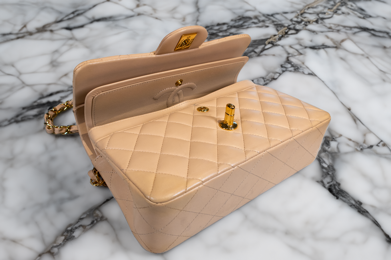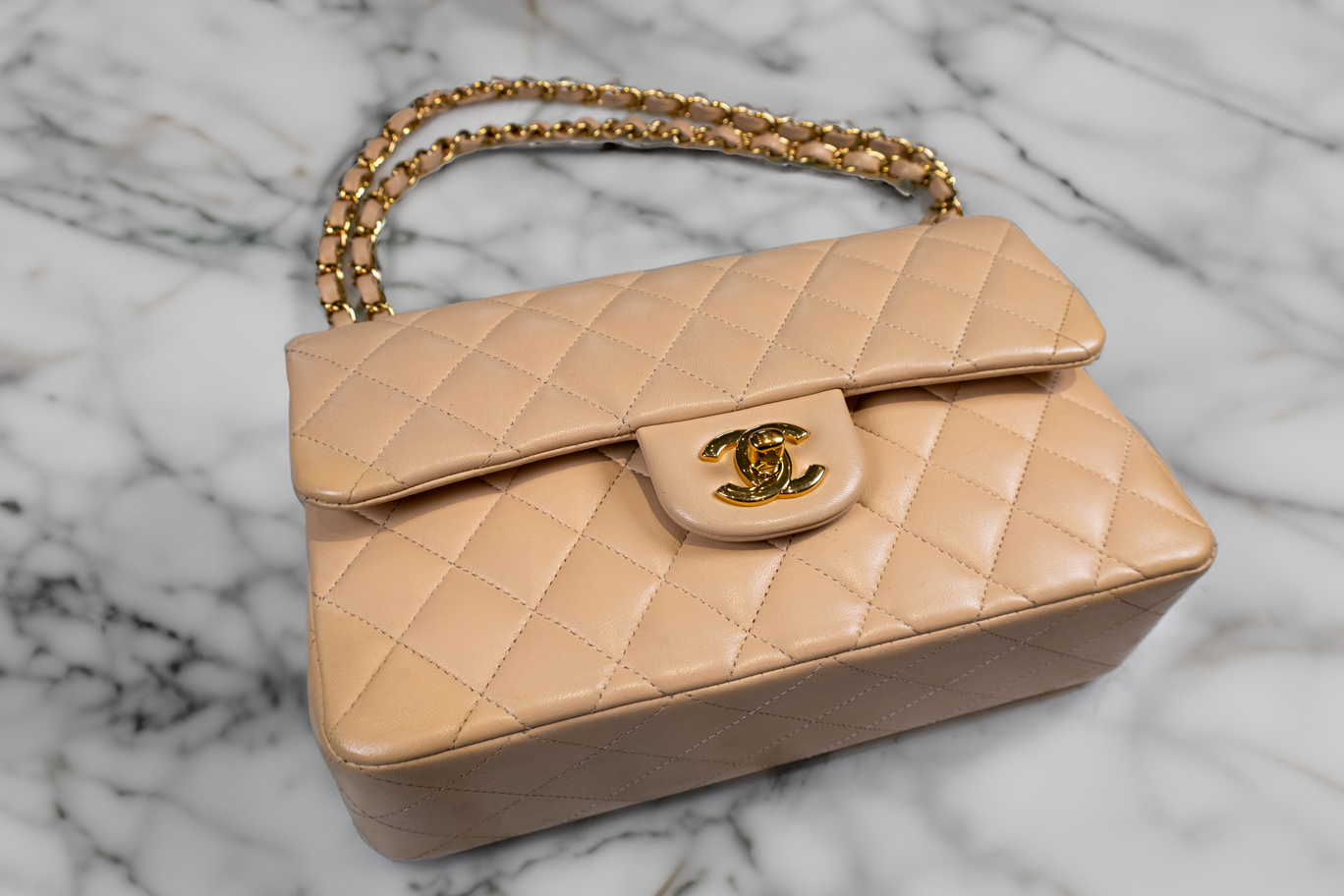 Chanel Beige Quilted Leather Small Vintage Classic Double Flap Bag