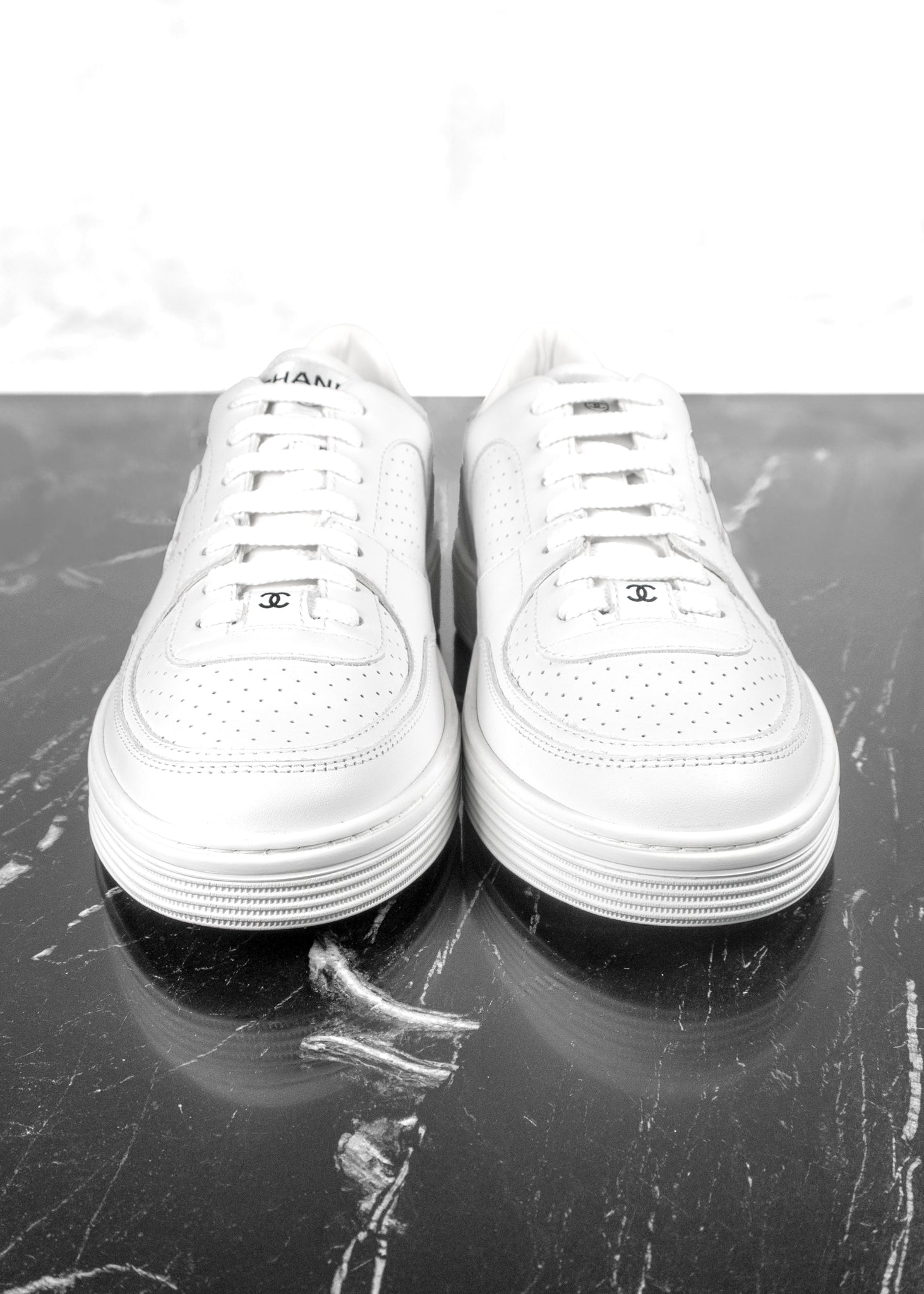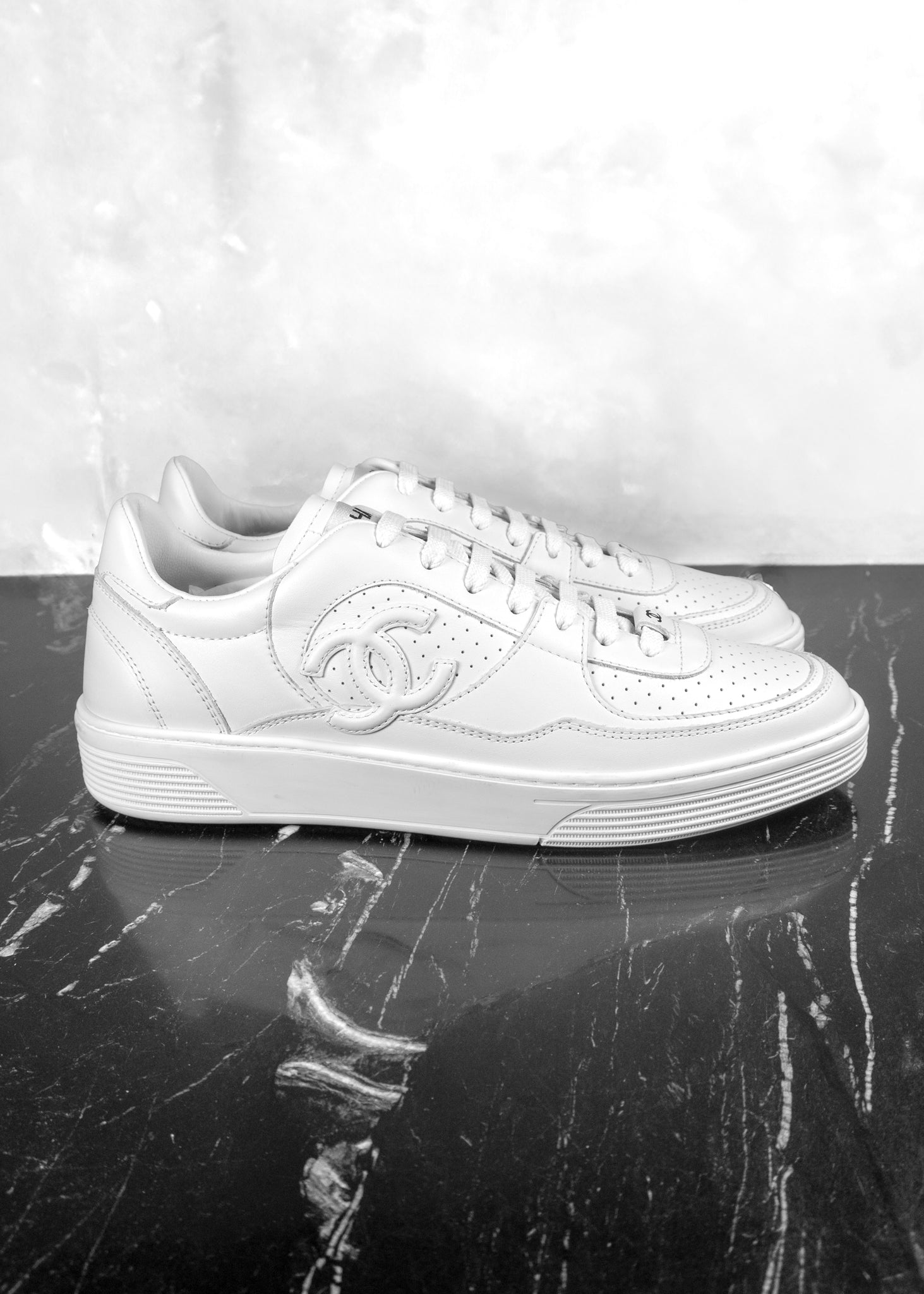 The Chanel Calfskin CC Sneakers are a stylish and luxurious addition to any wardrobe, embodying the timeless elegance of the Chanel brand. Crafted from premium calfskin leather, these sneakers offer both comfort and durability. The design features the iconic interlocking CC logo, adding a touch of sophistication and brand recognition. With their sleek silhouette and attention to detail, including the signature Chanel quilting and high-quality finishes, these sneakers seamlessly blend fashion-forward style with everyday wearability. Perfect for both casual and chic outfits, the Chanel Calfskin CC Sneakers are a must-have for any fashion enthusiast.