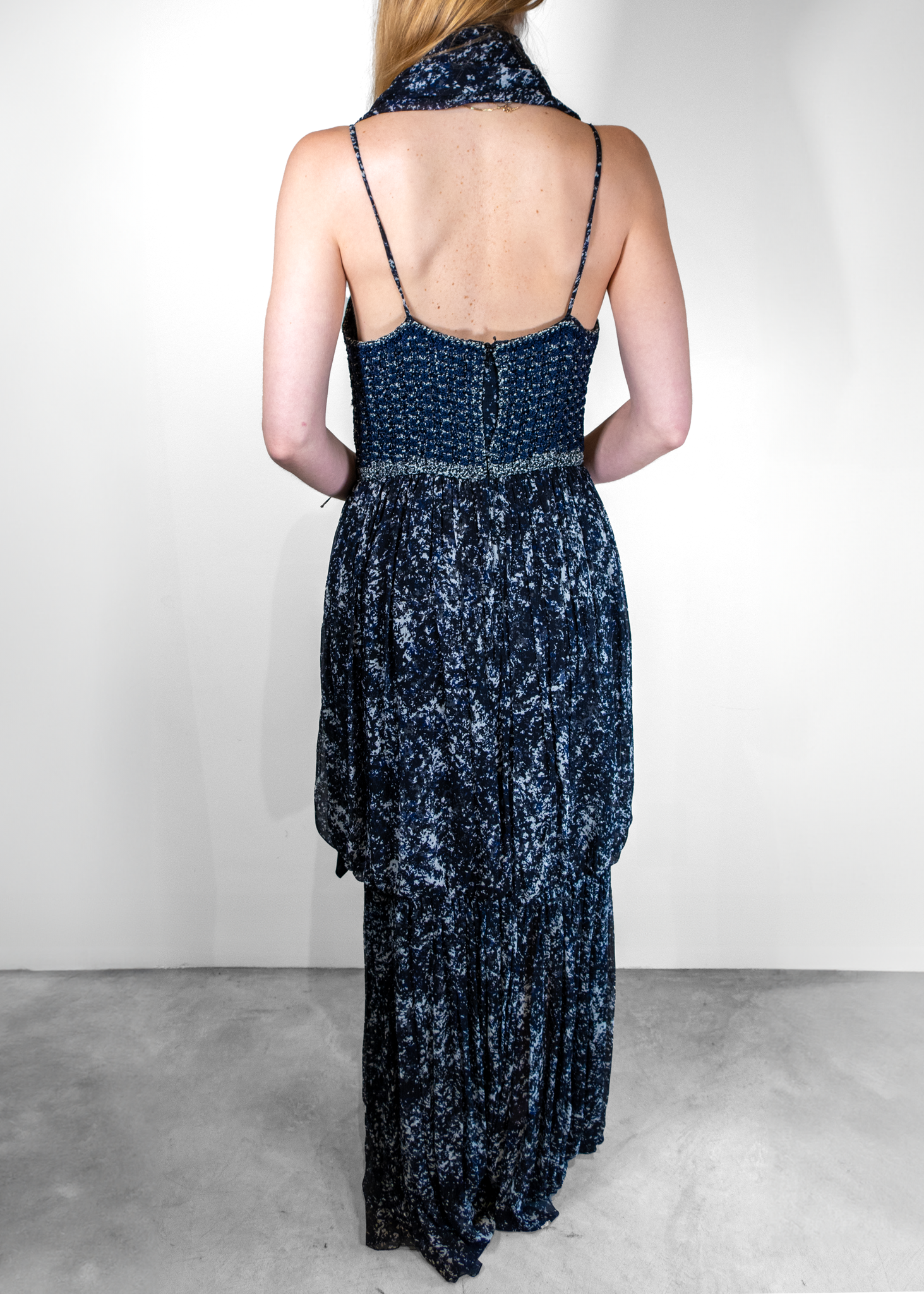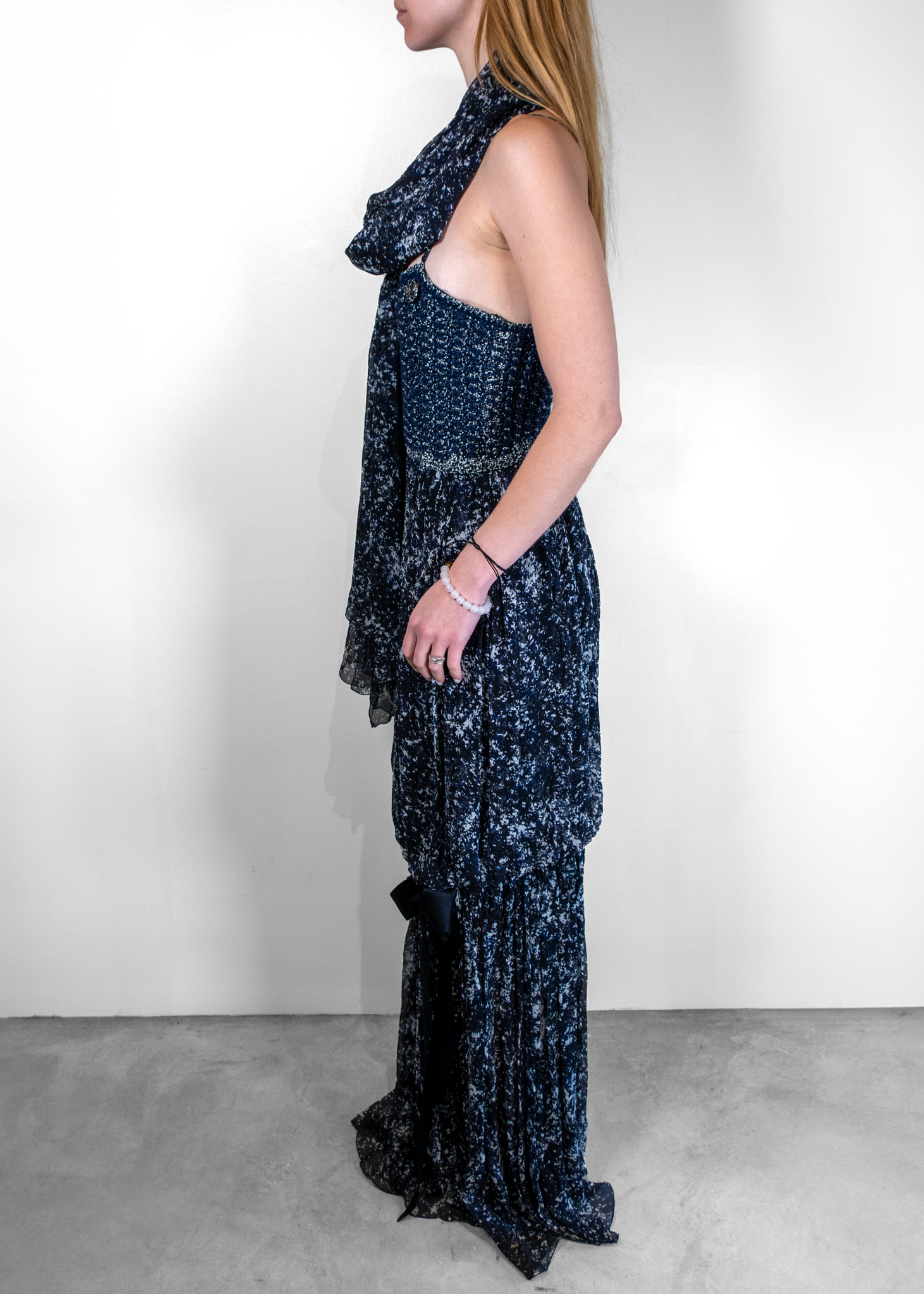 Chanel Evening Dress In Blue And White Printed Silk Dress