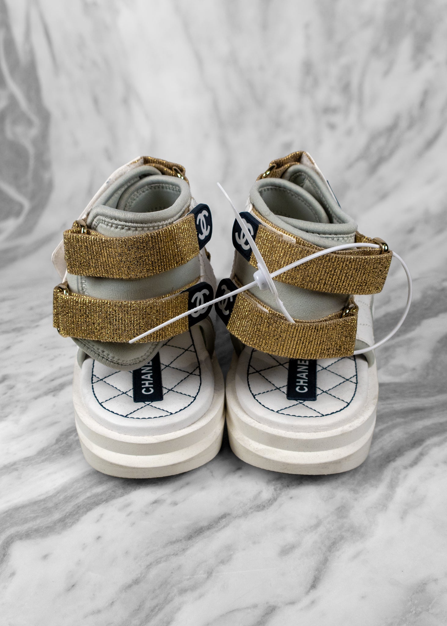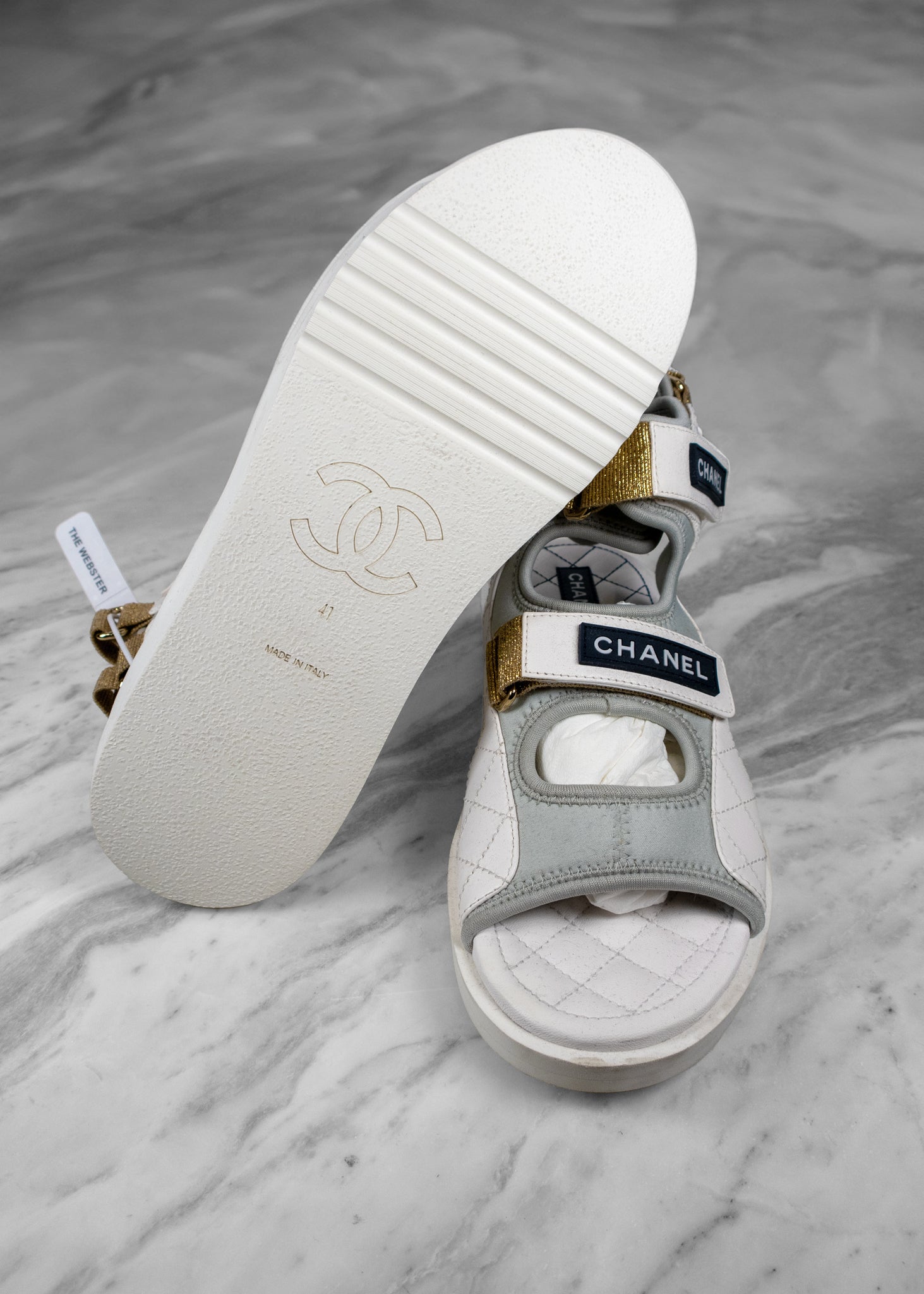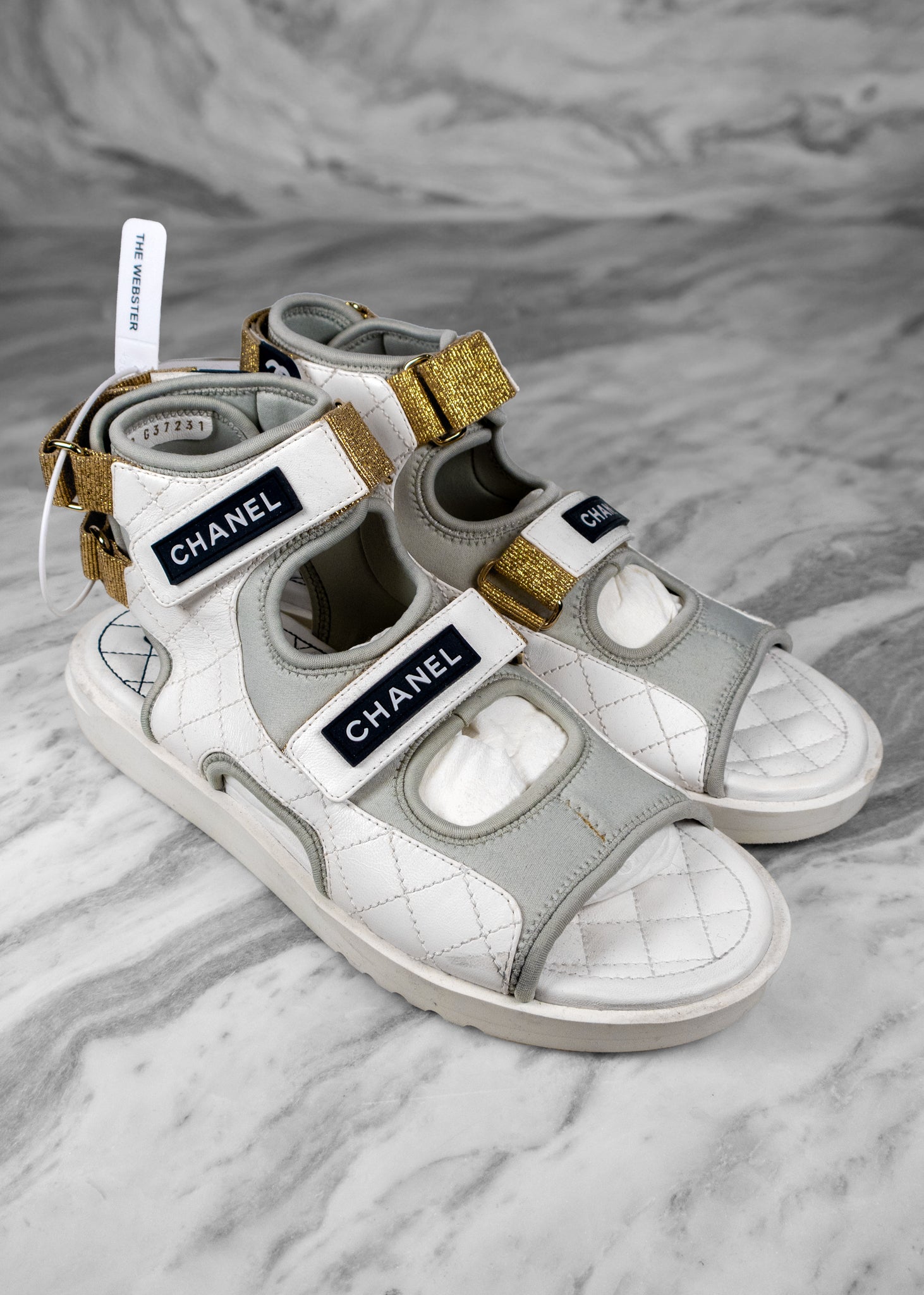 The Chanel Goatskin Fabric Gladiator Sandals are a luxurious and stylish footwear option that exudes sophistication and elegance. Crafted from high-quality goatskin fabric, these sandals feature a gladiator-inspired design with multiple straps that wrap around the foot, creating a chic and modern look. The goatskin fabric offers a soft and supple texture, ensuring comfort with every step. Finished with iconic Chanel detailing, such as the Chanel logo, these sandals are a statement piece that effortlessly elevates any ensemble, making them a must-have addition to any fashion-forward wardrobe.