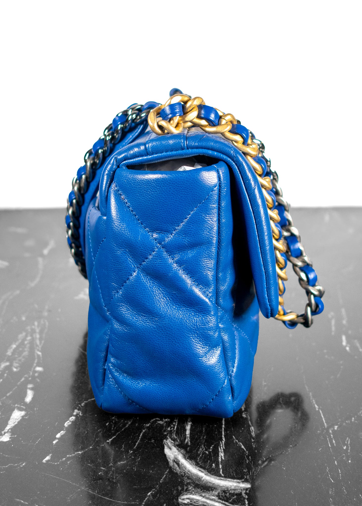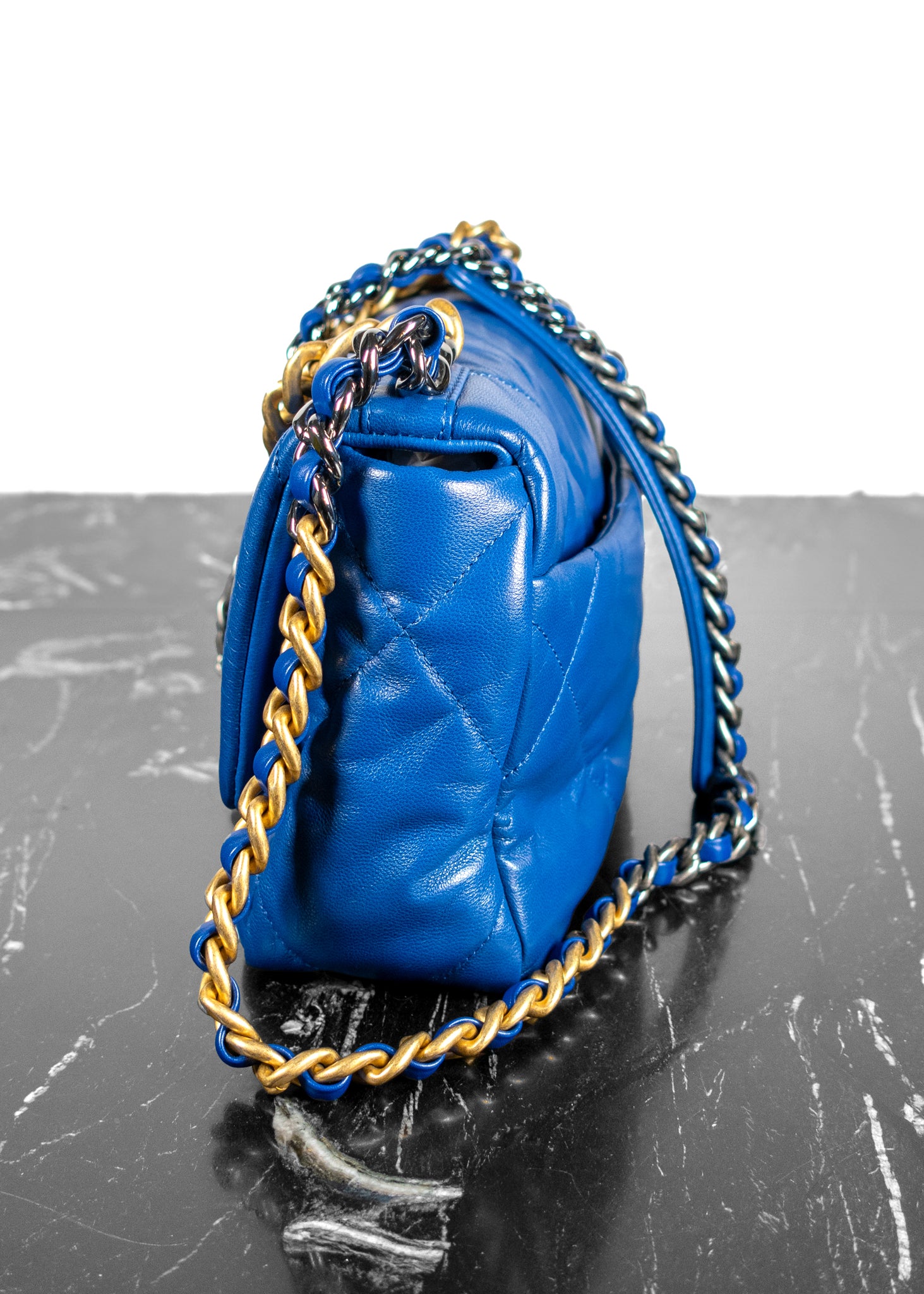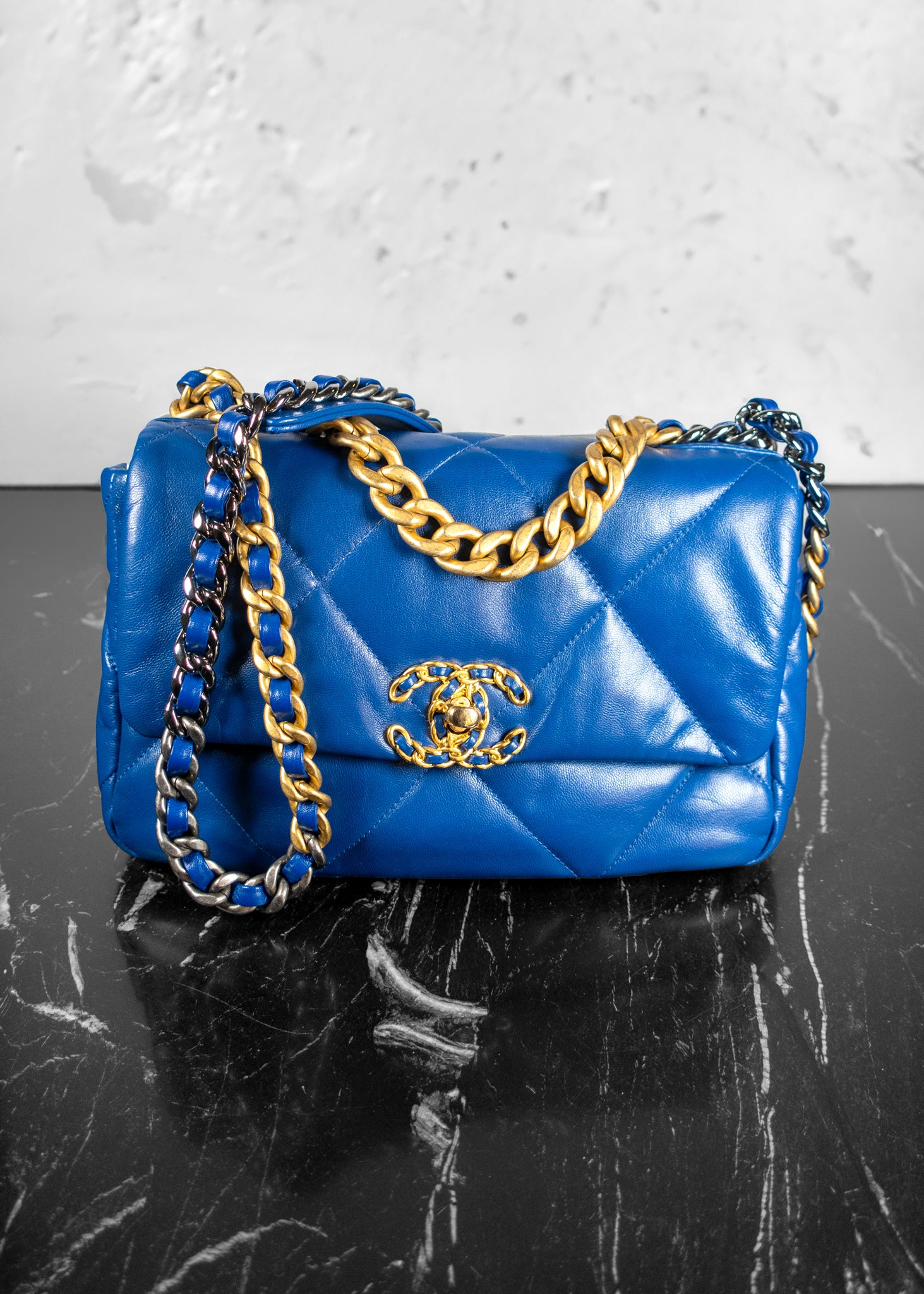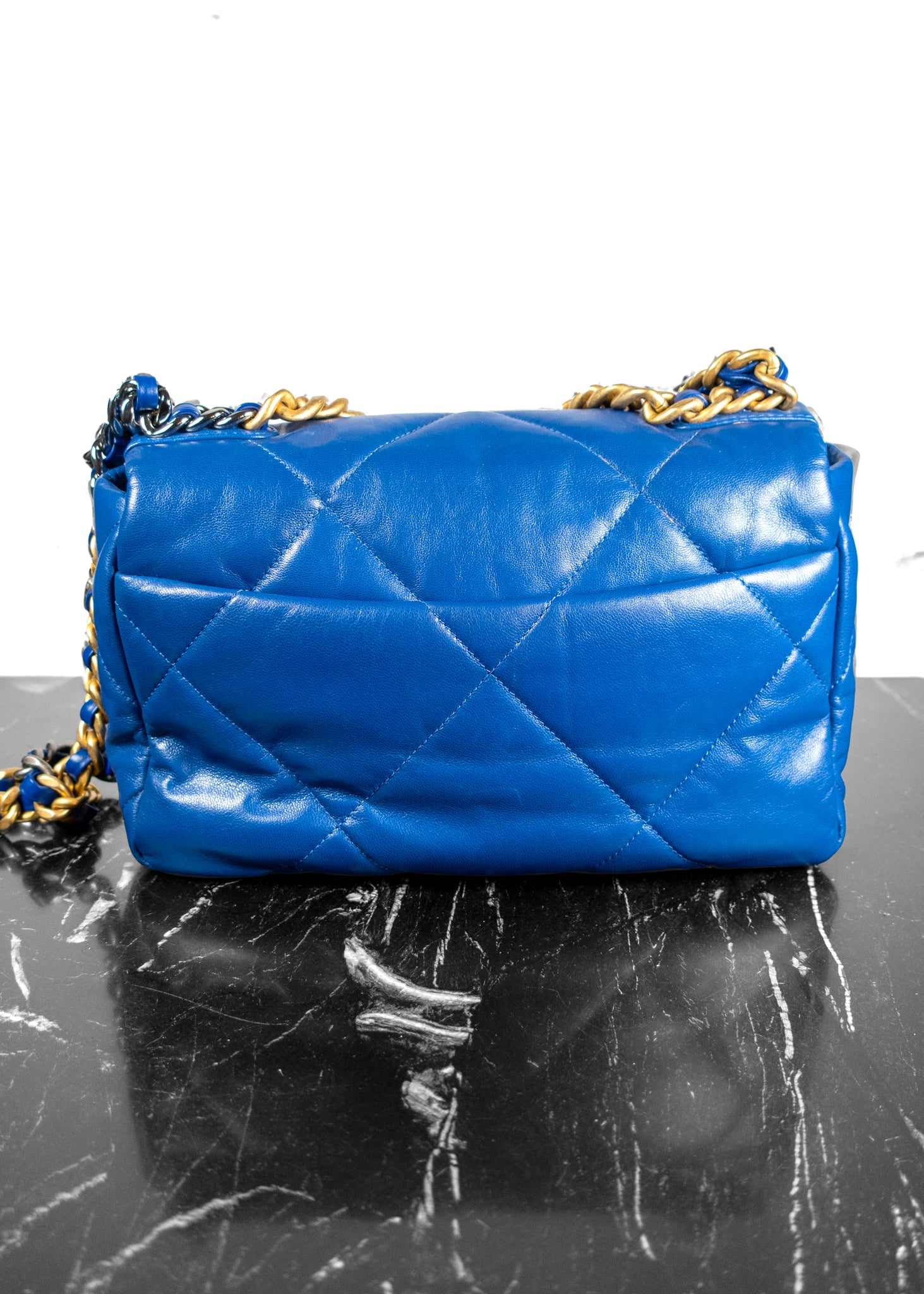 Chanel Lambskin Quilted Medium 19 Blue Flap Bag