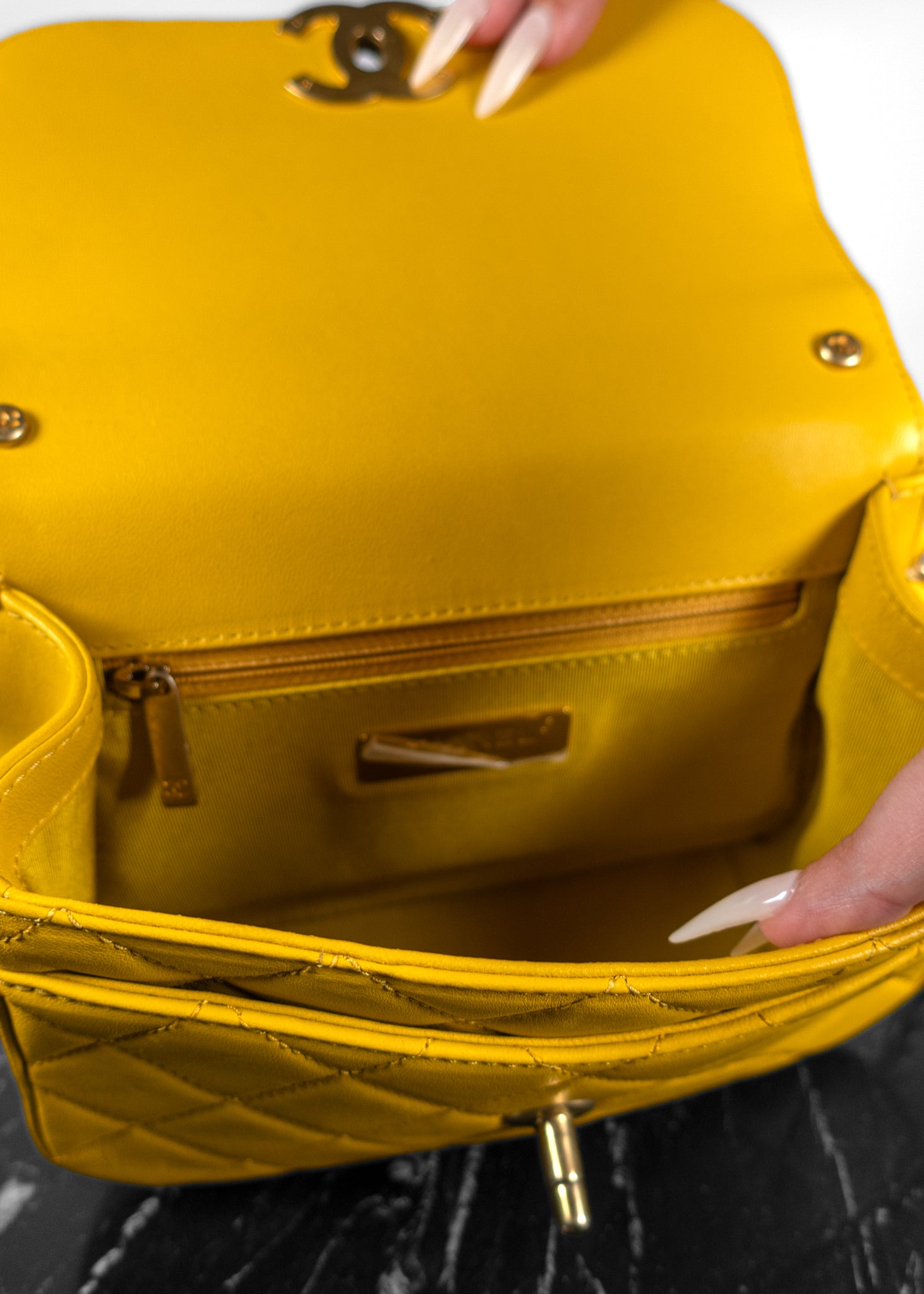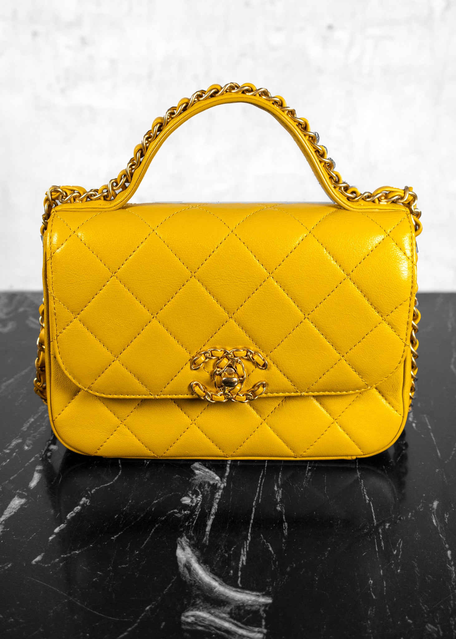 Chanel Lambskin Quilted Medium 19 Yellow Flap Bag