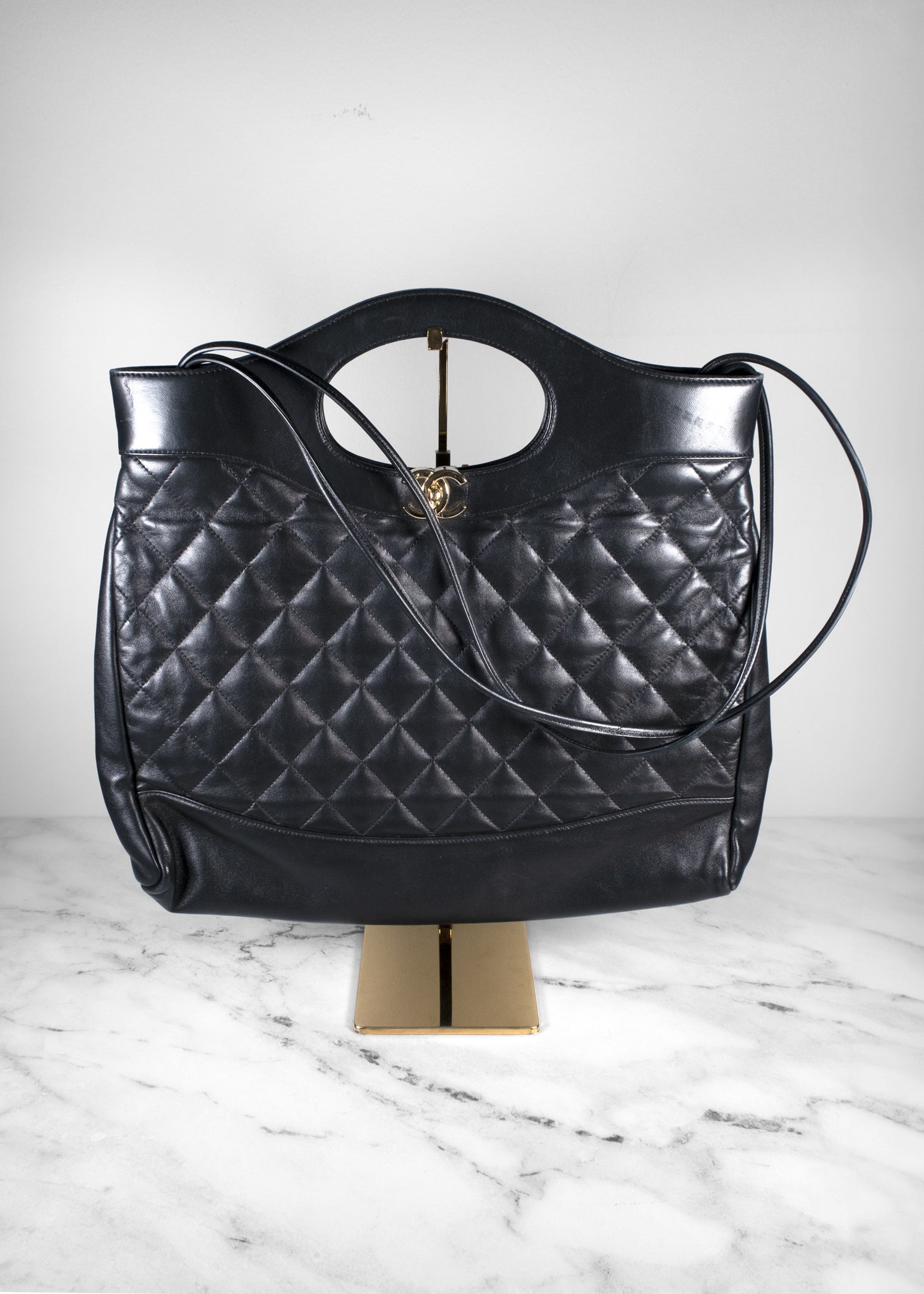 This Chanel Large 31 Shopping Bag is a perfect blend of sophistication and practicality. Made from high-quality leather, it features the iconic quilted design and the signature gold-tone CC clasp for an elegant touch. The spacious interior offers ample room for daily essentials, while the long shoulder strap ensures comfort and ease when carrying. Its sleek black color makes it a versatile accessory that complements any outfit, whether for work, travel, or a day out. A timeless investment piece that exudes luxury and style.