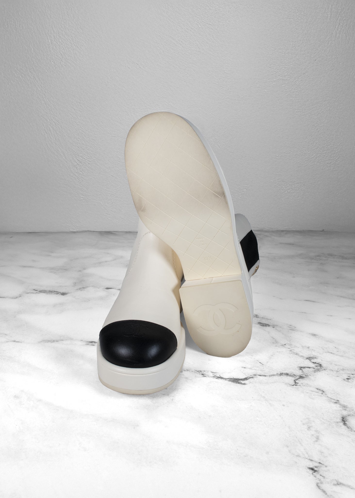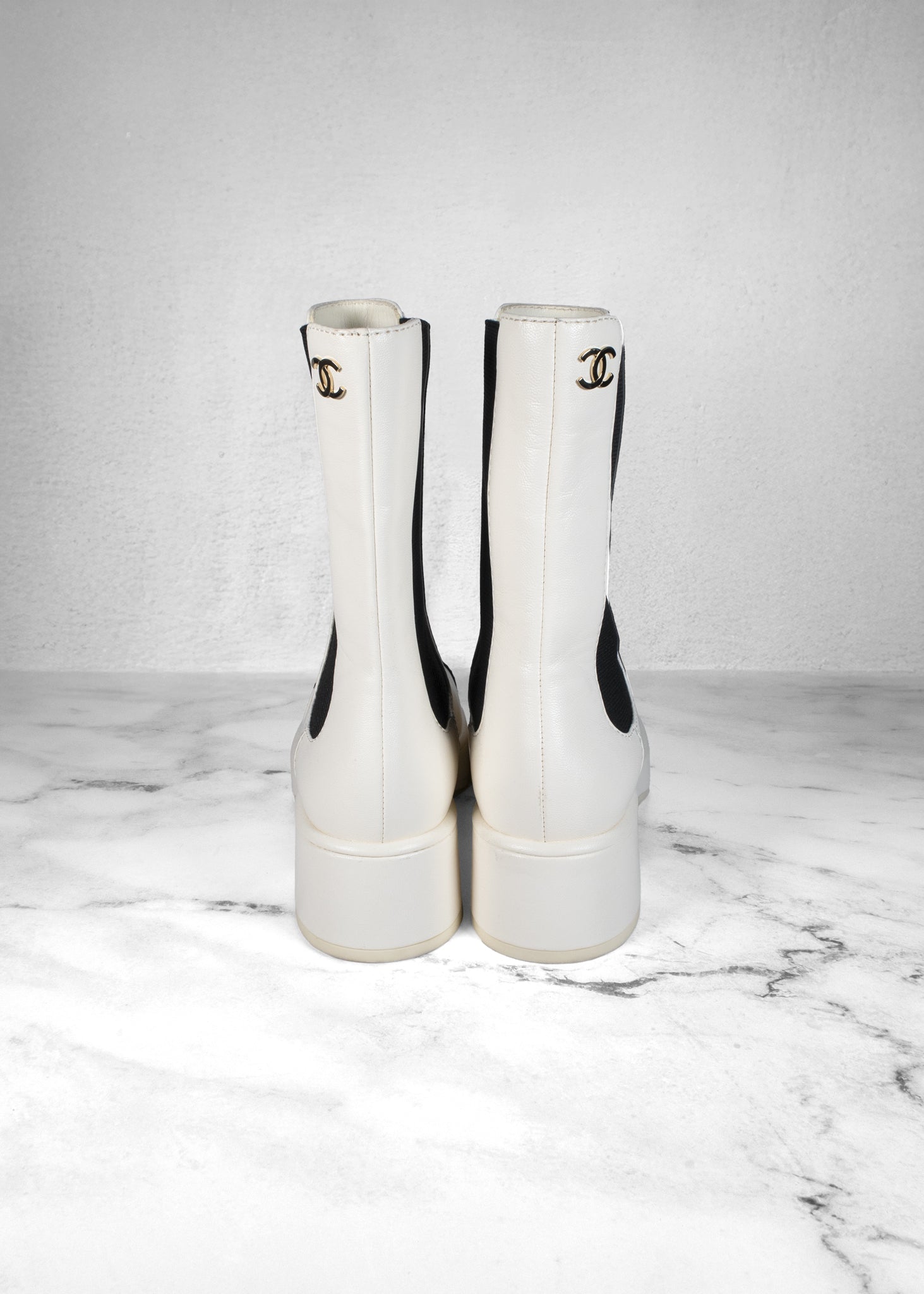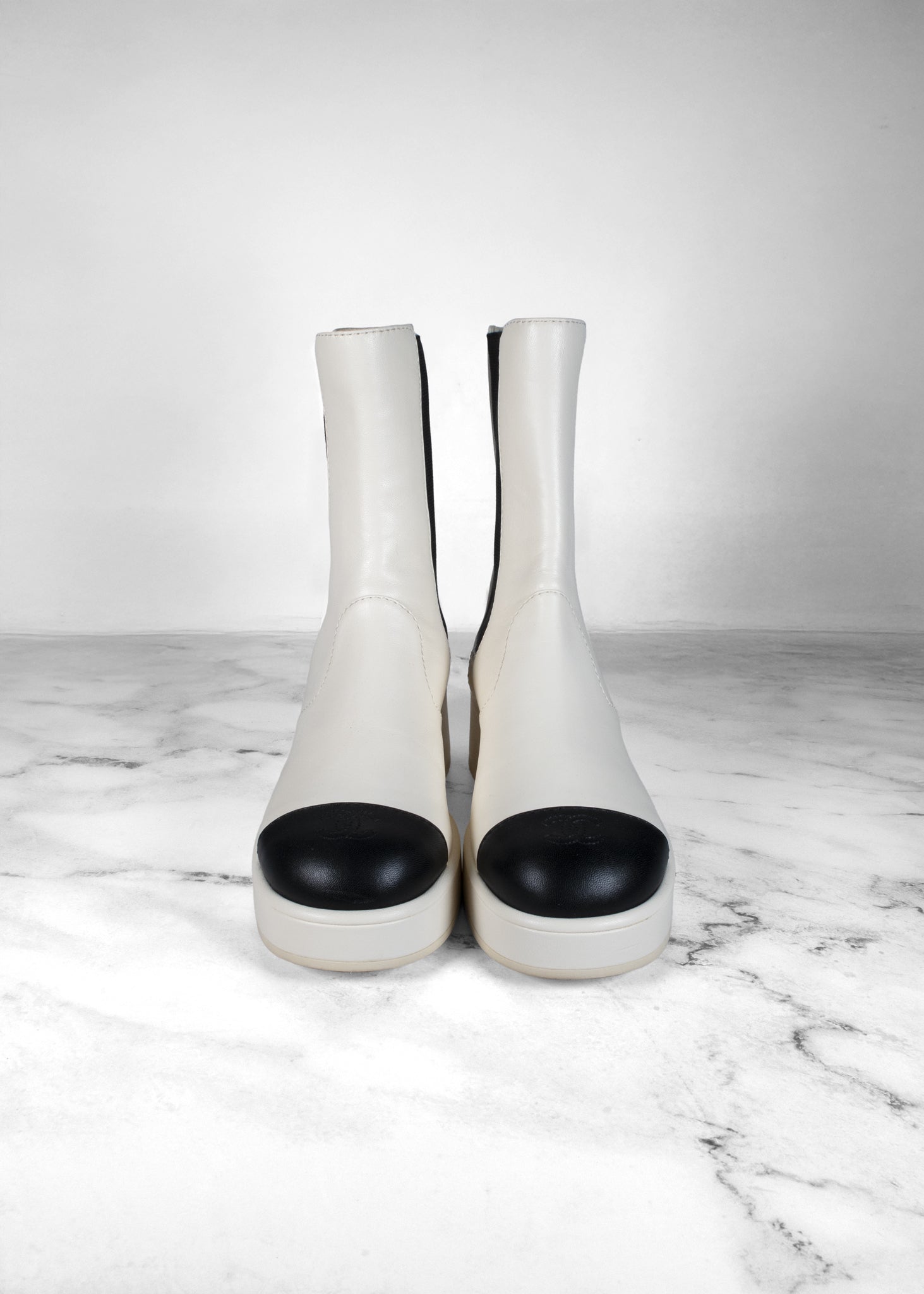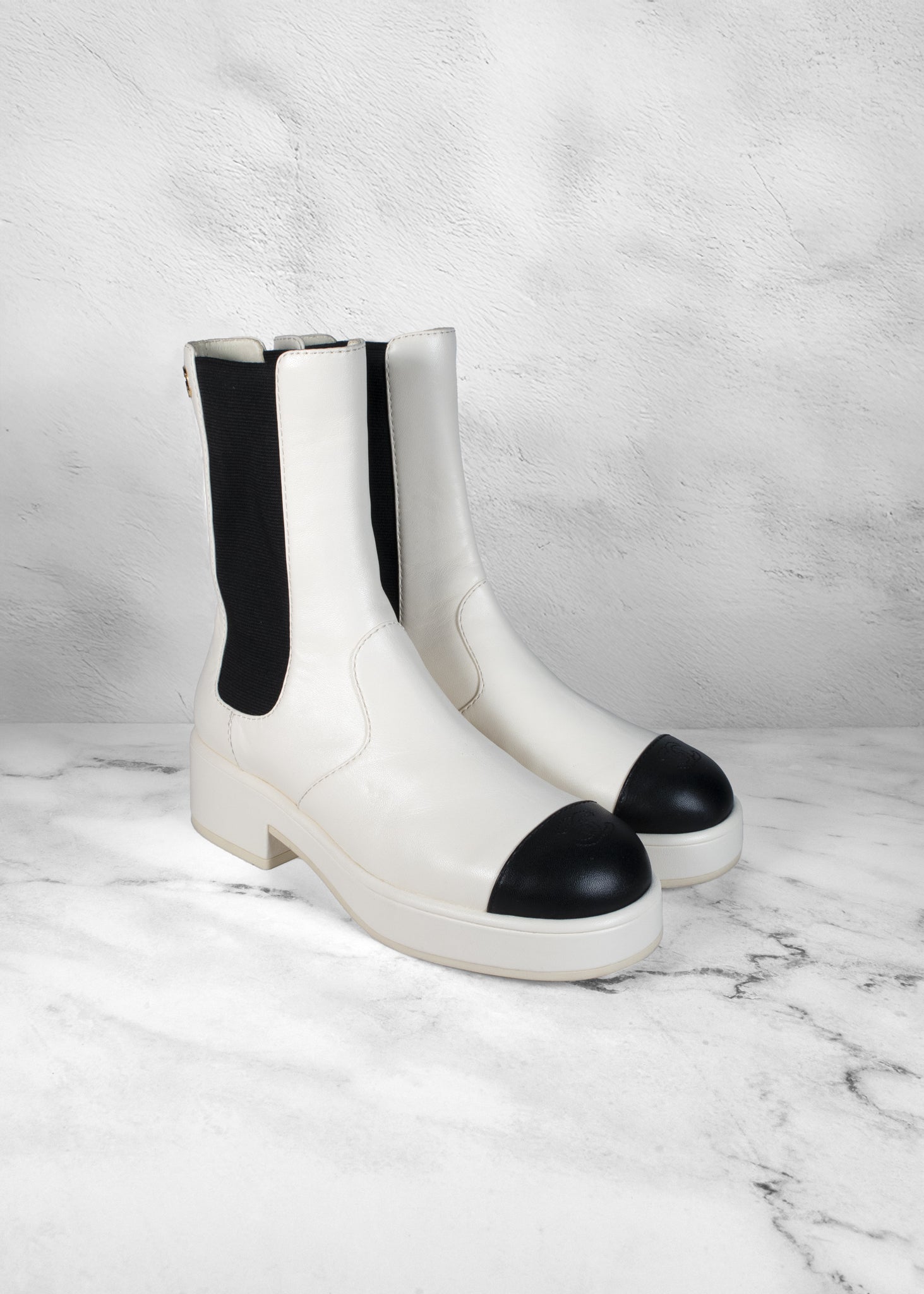 Chanel Leather Colorblock Pattern Chelsea Boots