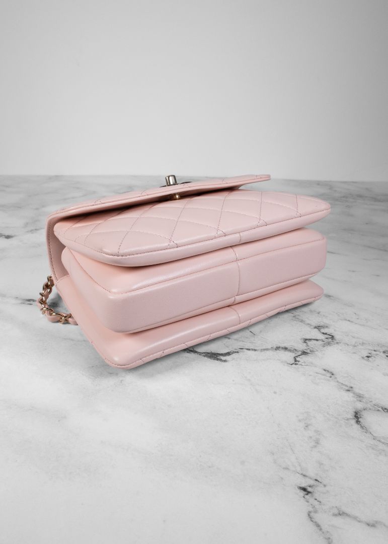 Chanel Light Pink Quilted Lambskin Leather Top Handle Trendy CC Bag