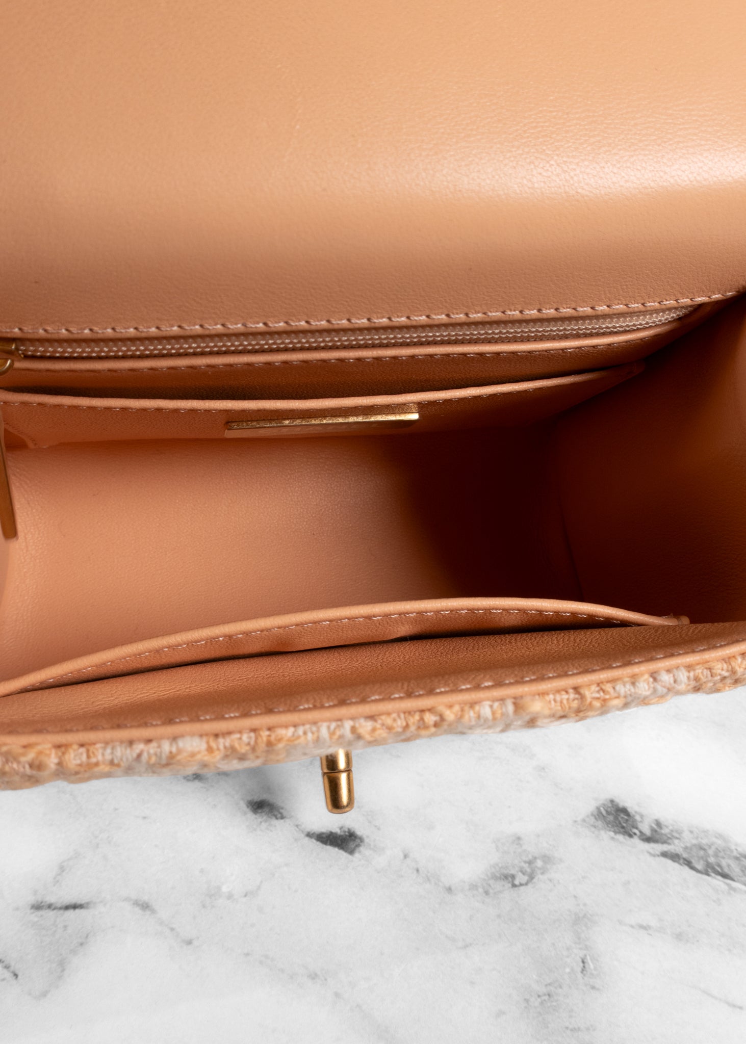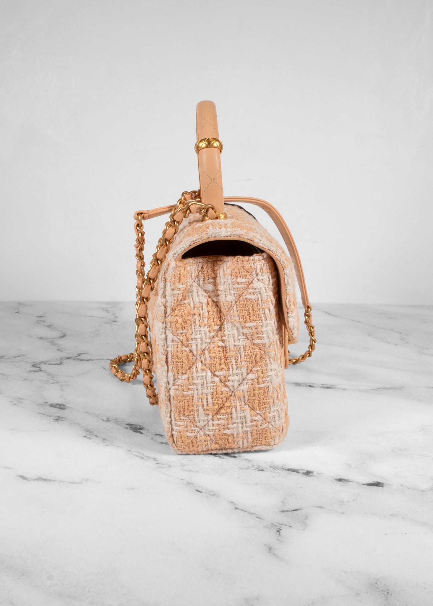 Chanel Peach And White Tweed Mini Square Flap Bag