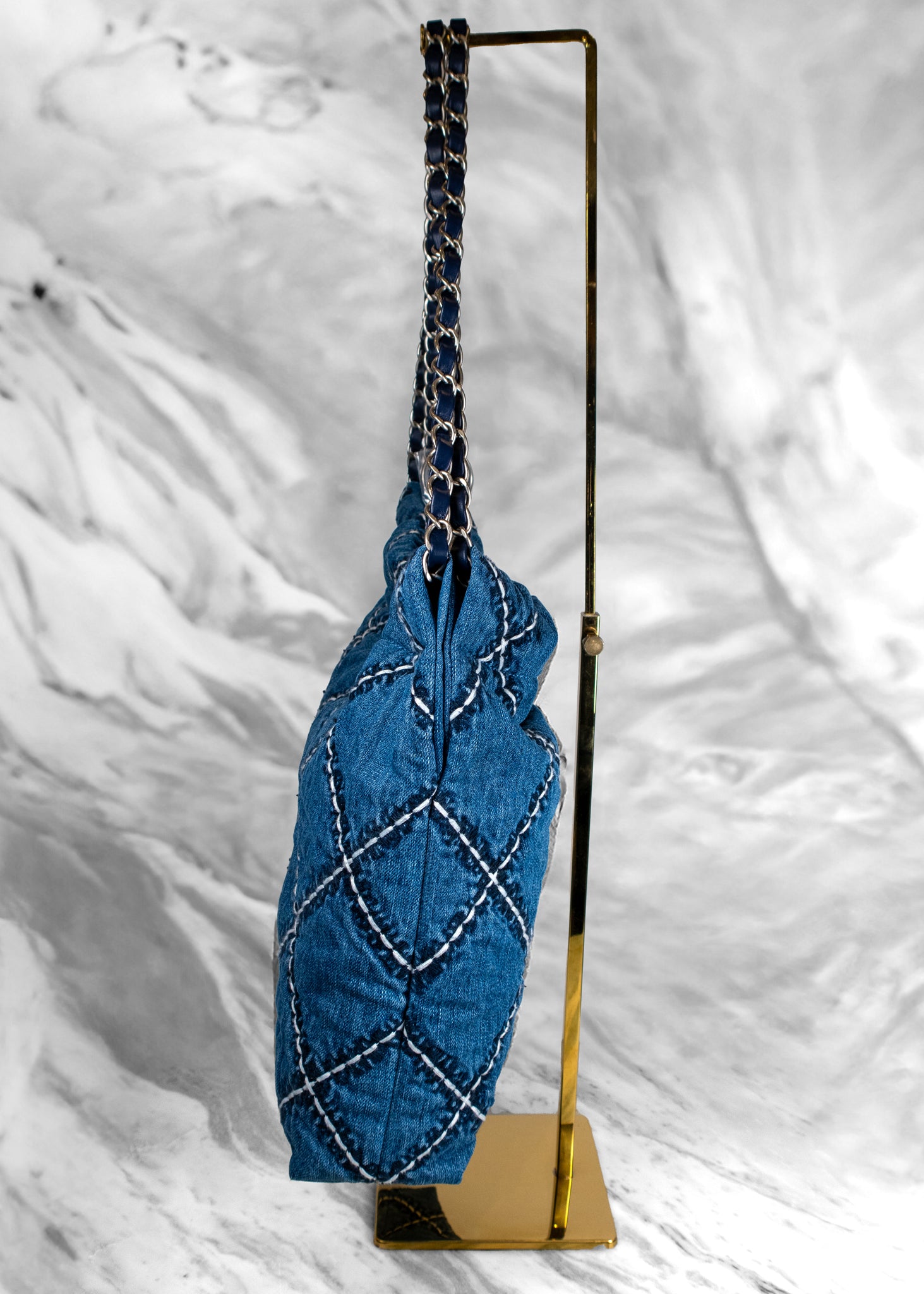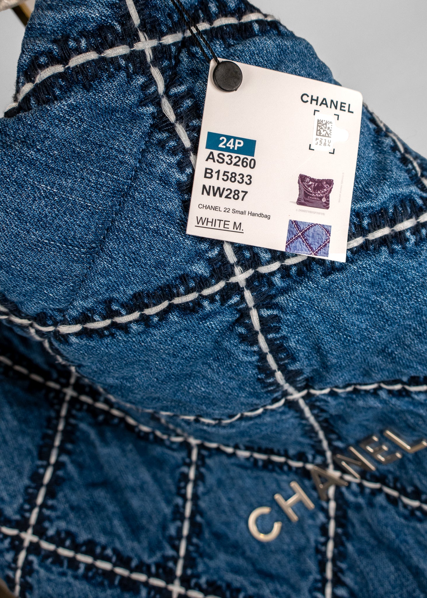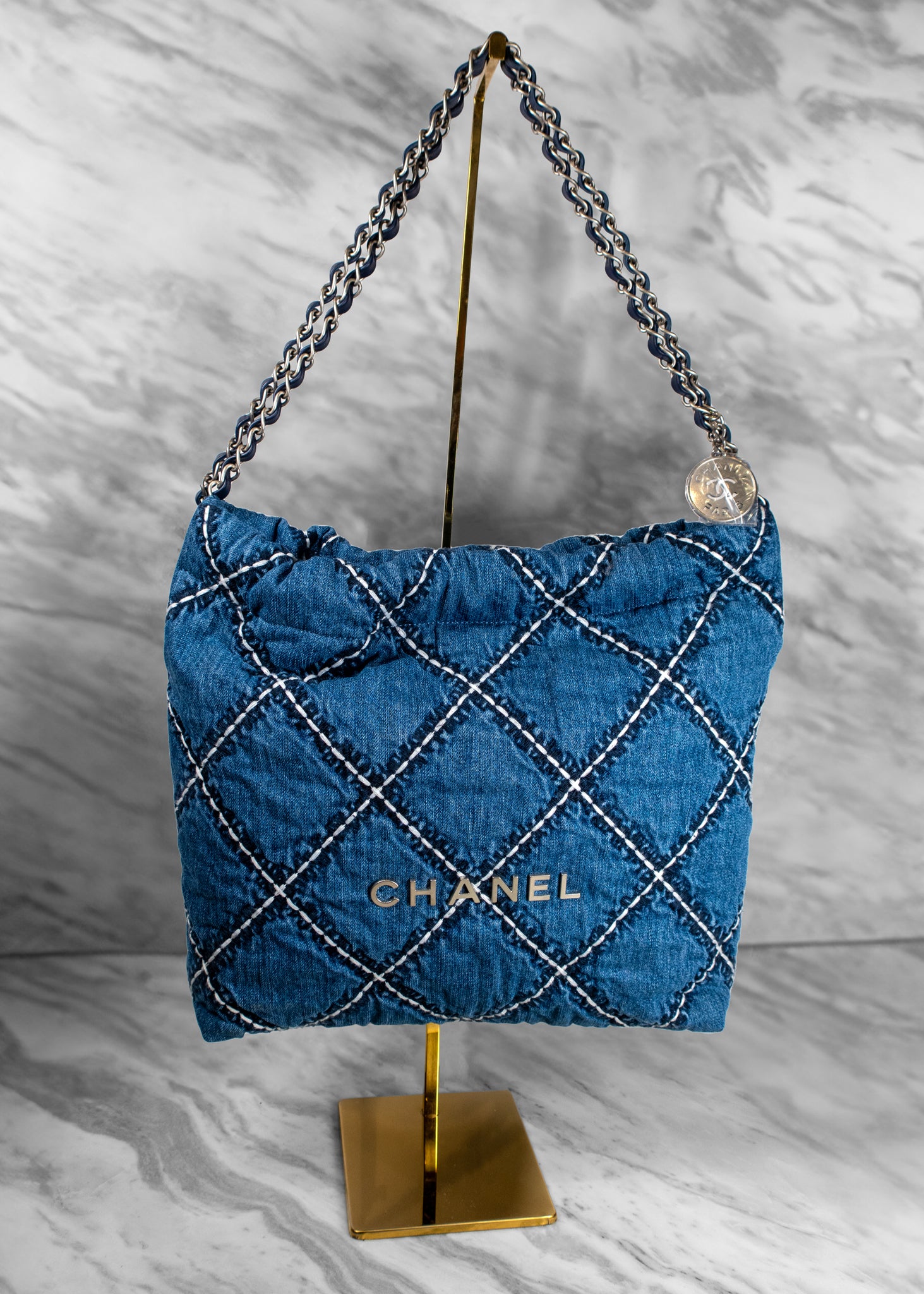 Chanel Stitched Denim Quilted Chanel 22 Blue Handbag
