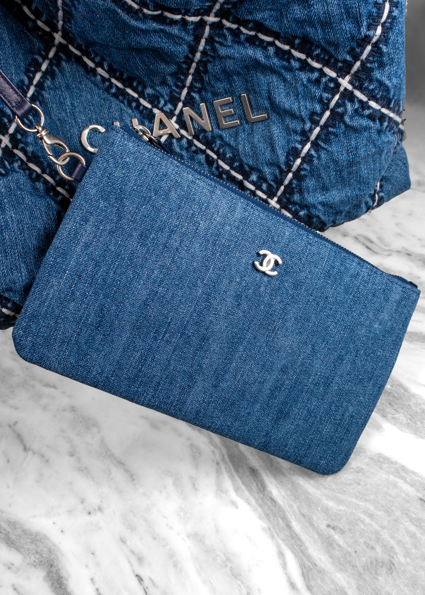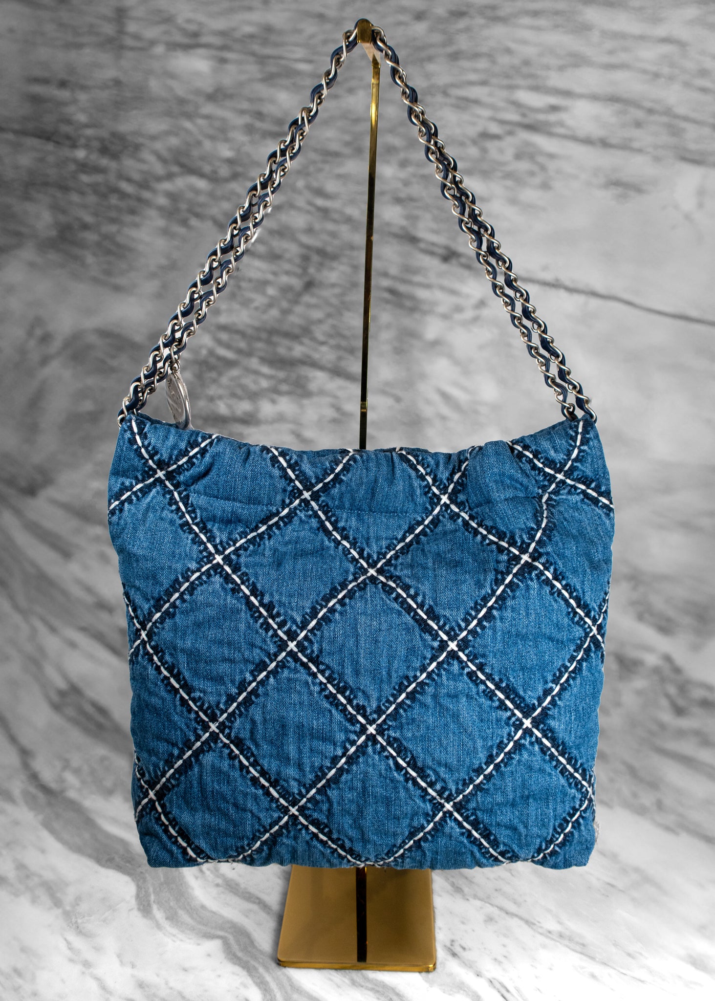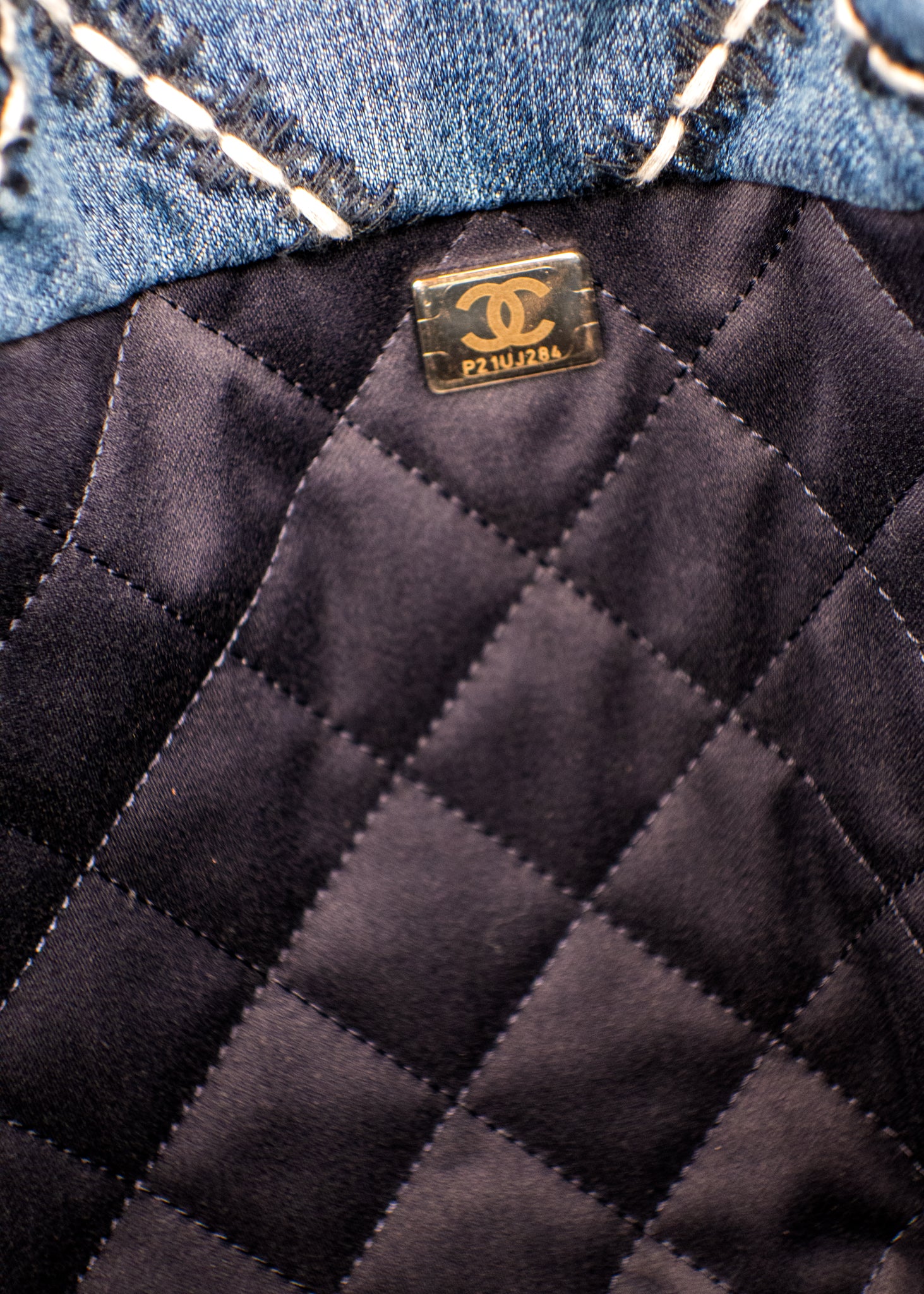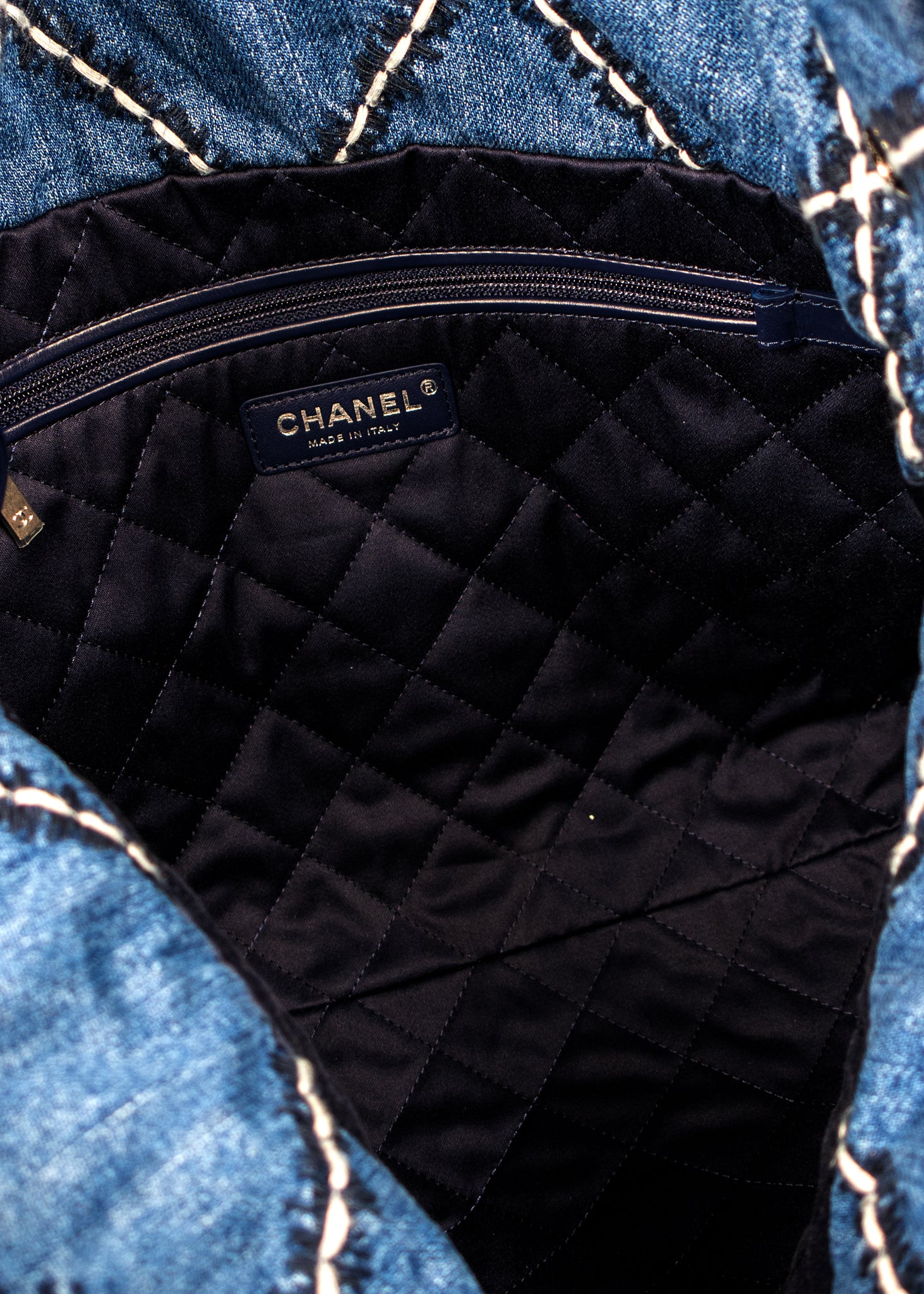 Chanel Stitched Denim Quilted Chanel 22 Blue Handbag