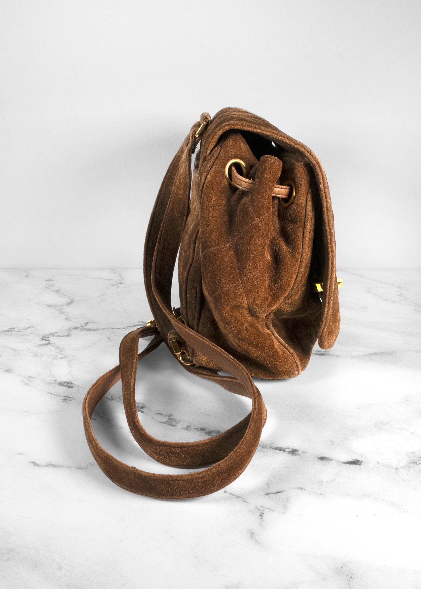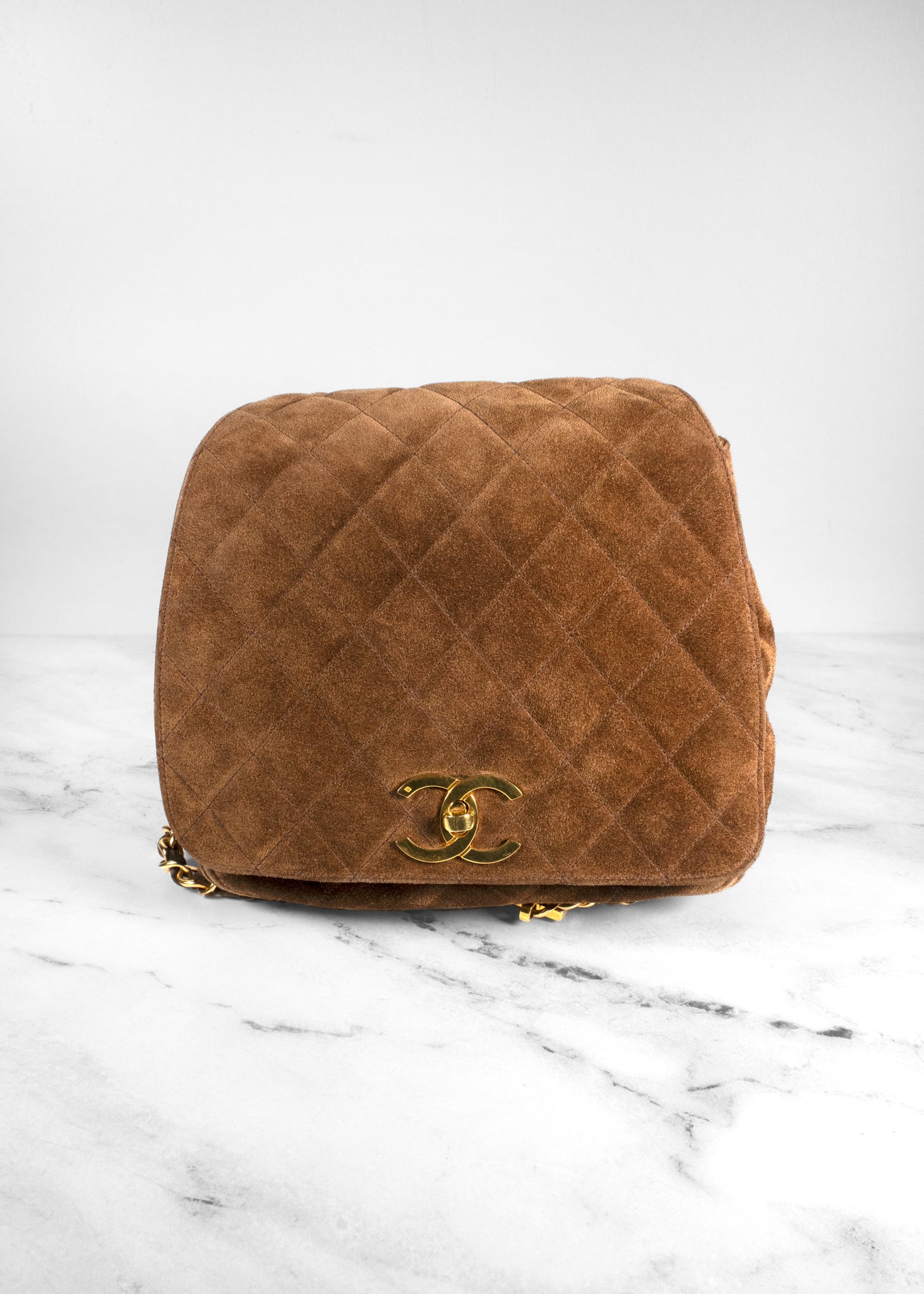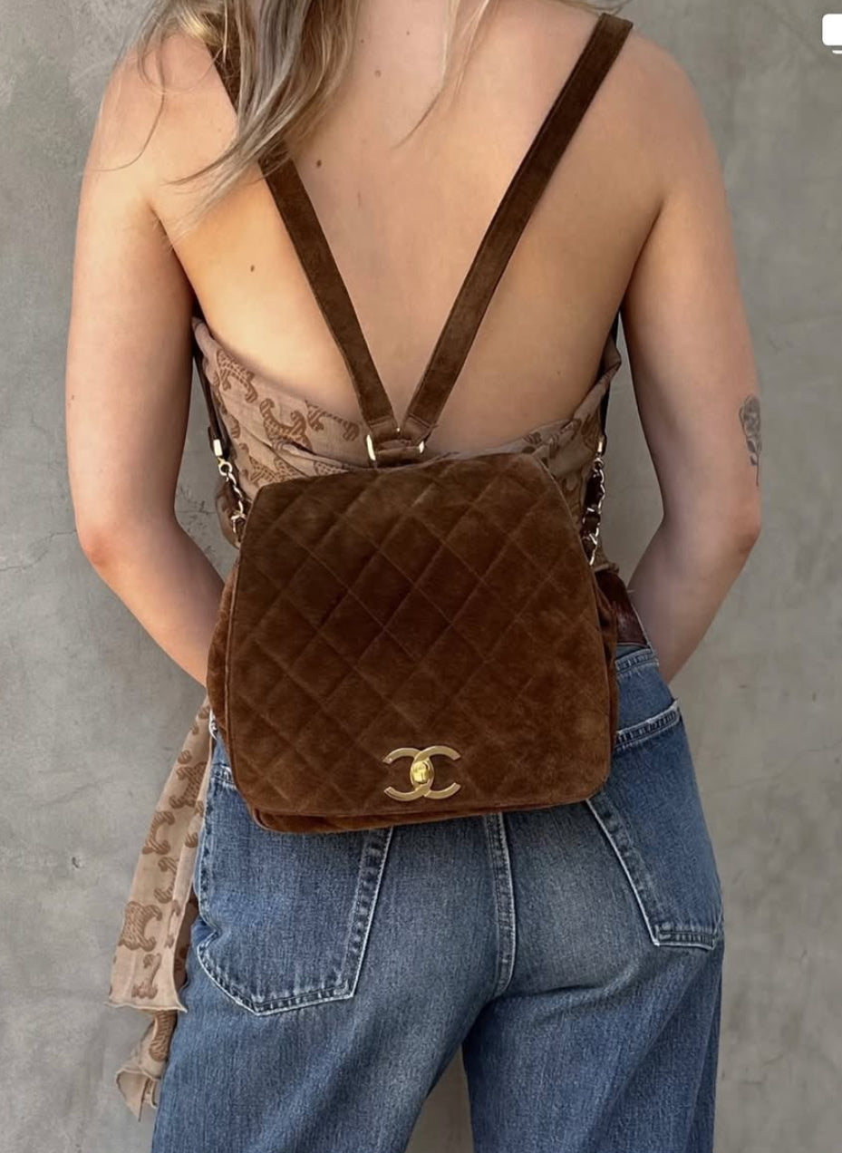 This Chanel vintage suede backpack combines timeless elegance with practicality. The soft, quilted suede material is complemented by the iconic gold-tone CC logo, adding a luxurious touch to its understated design. With an adjustable chain strap, it can be worn comfortably as a shoulder bag or across the body. The spacious interior offers ample room for everyday essentials, while the flap closure ensures security. Perfect for adding a chic, vintage element to any outfit, this backpack is an investment piece for any fashion lover.