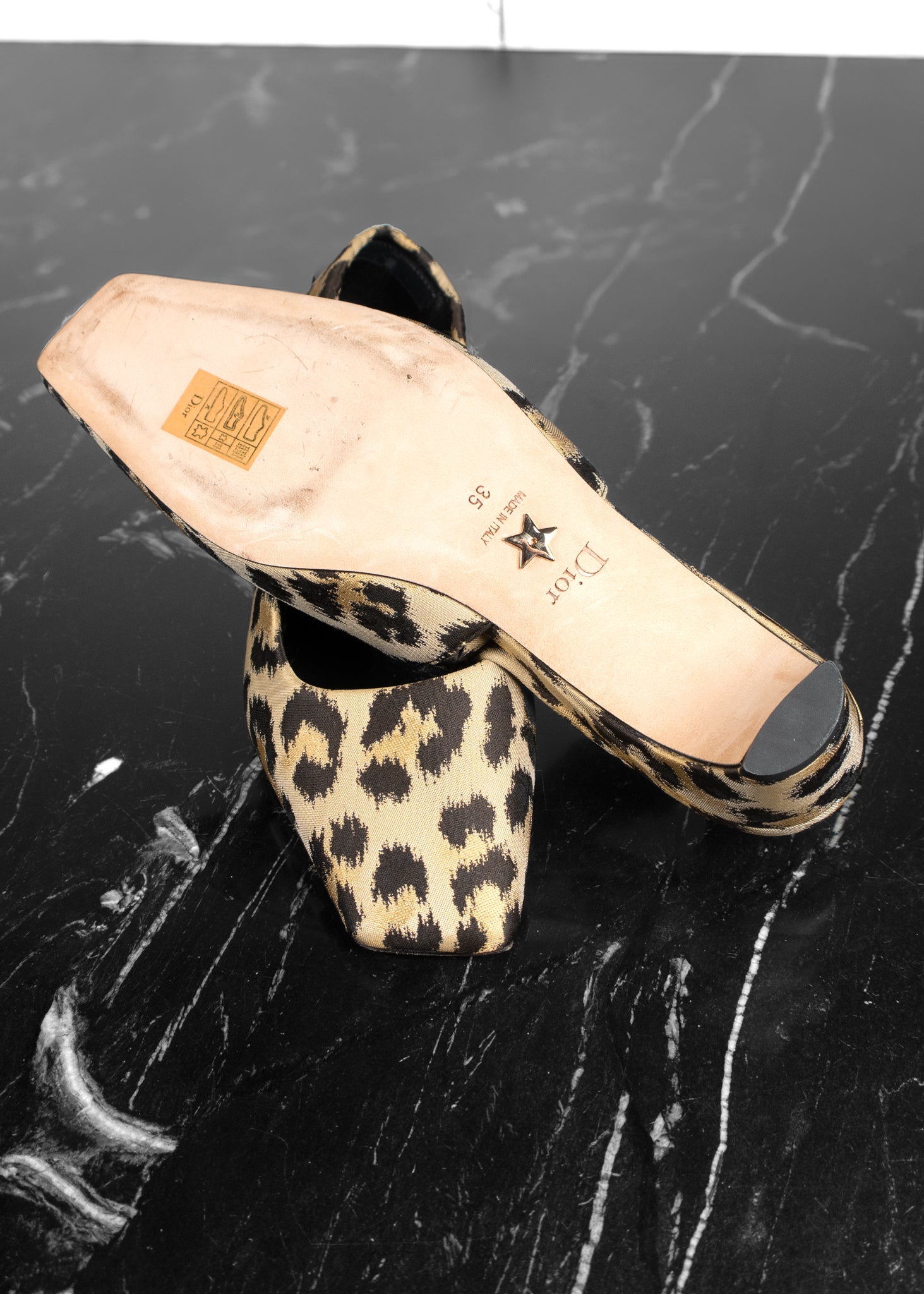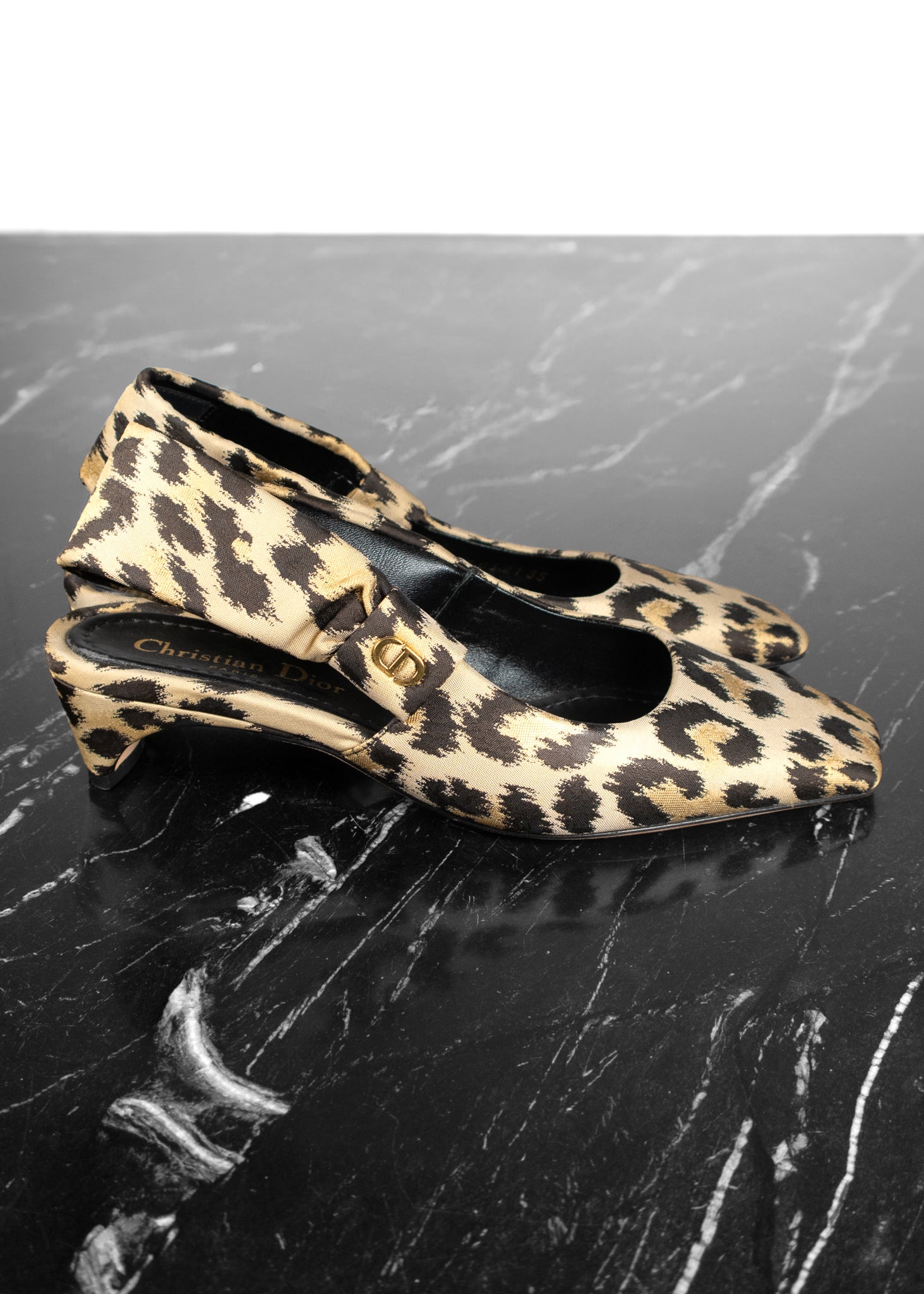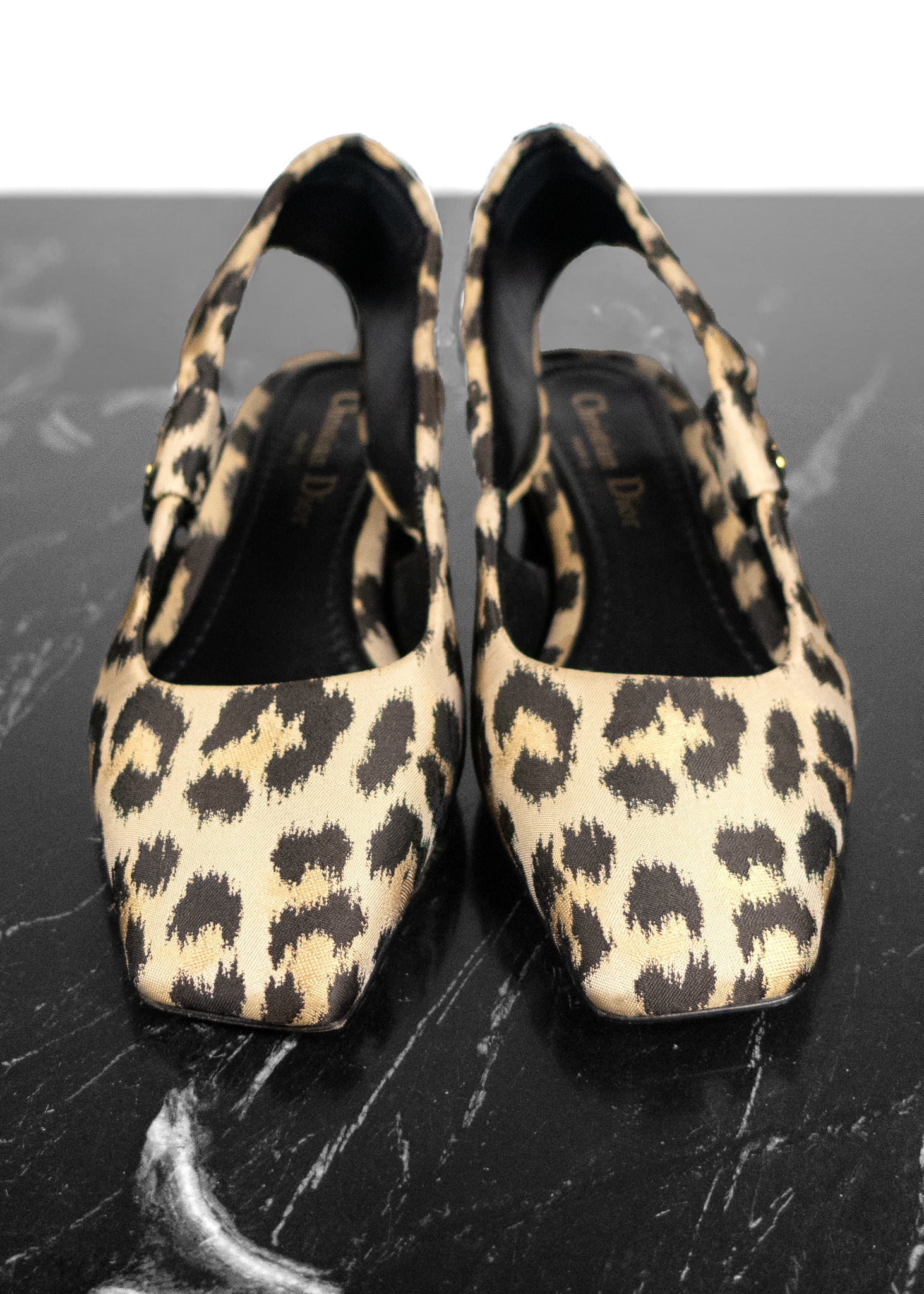 Christian Dior Mizza Shiny Leopard Slingback Pump Heels