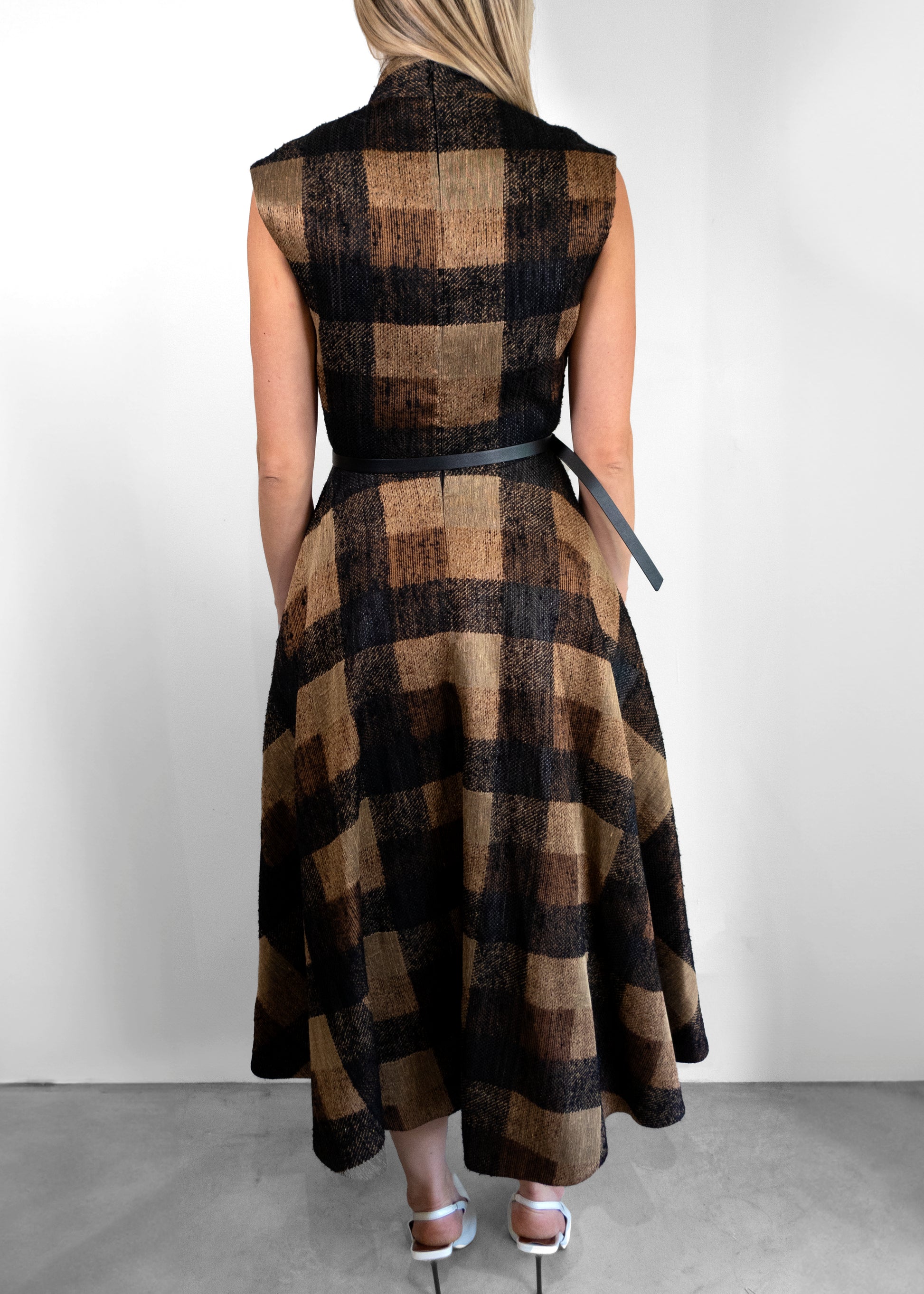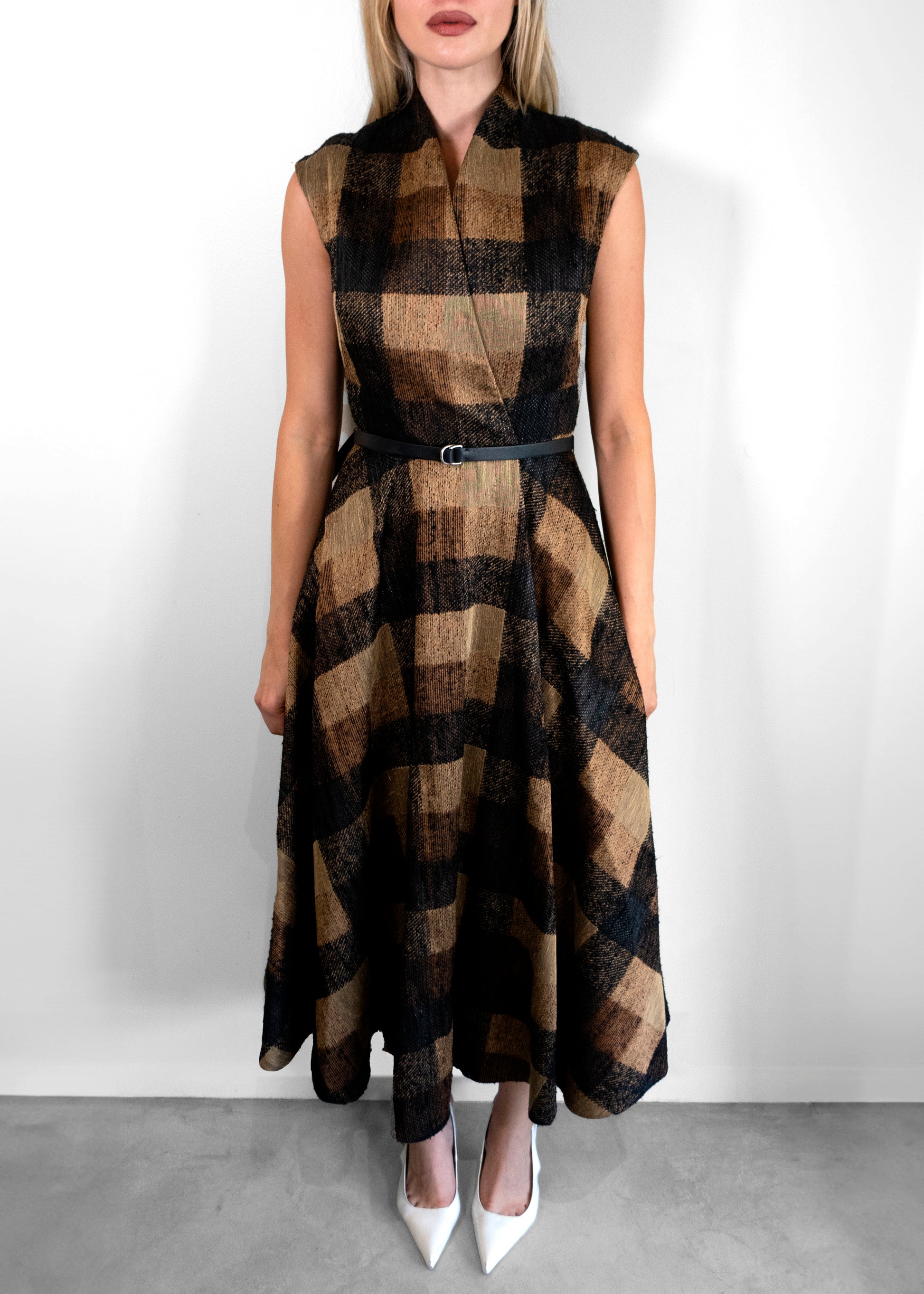 This Christian Dior Plaid Print Midi Length Dress exudes timeless elegance with its classic plaid design. Crafted from luxurious fabric, it features a flattering midi length and a tailored silhouette that accentuates the waist. Perfect for both day and evening wear, this dress embodies Dior's sophisticated style and attention to detail, making it a chic addition to any wardrobe.