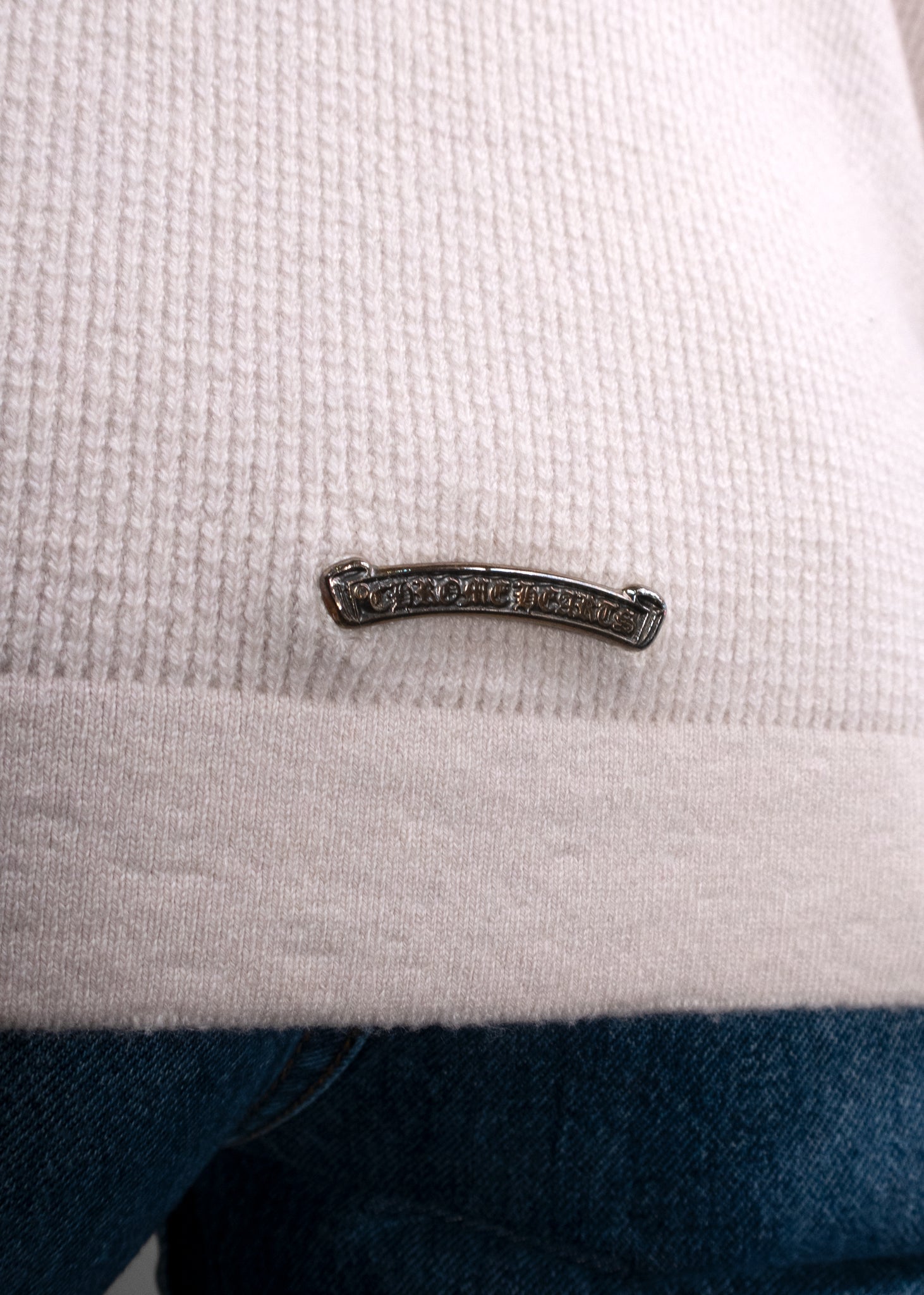 Chrome Hearts Dagger Embroidered Beige Cashmere Knit Sweater