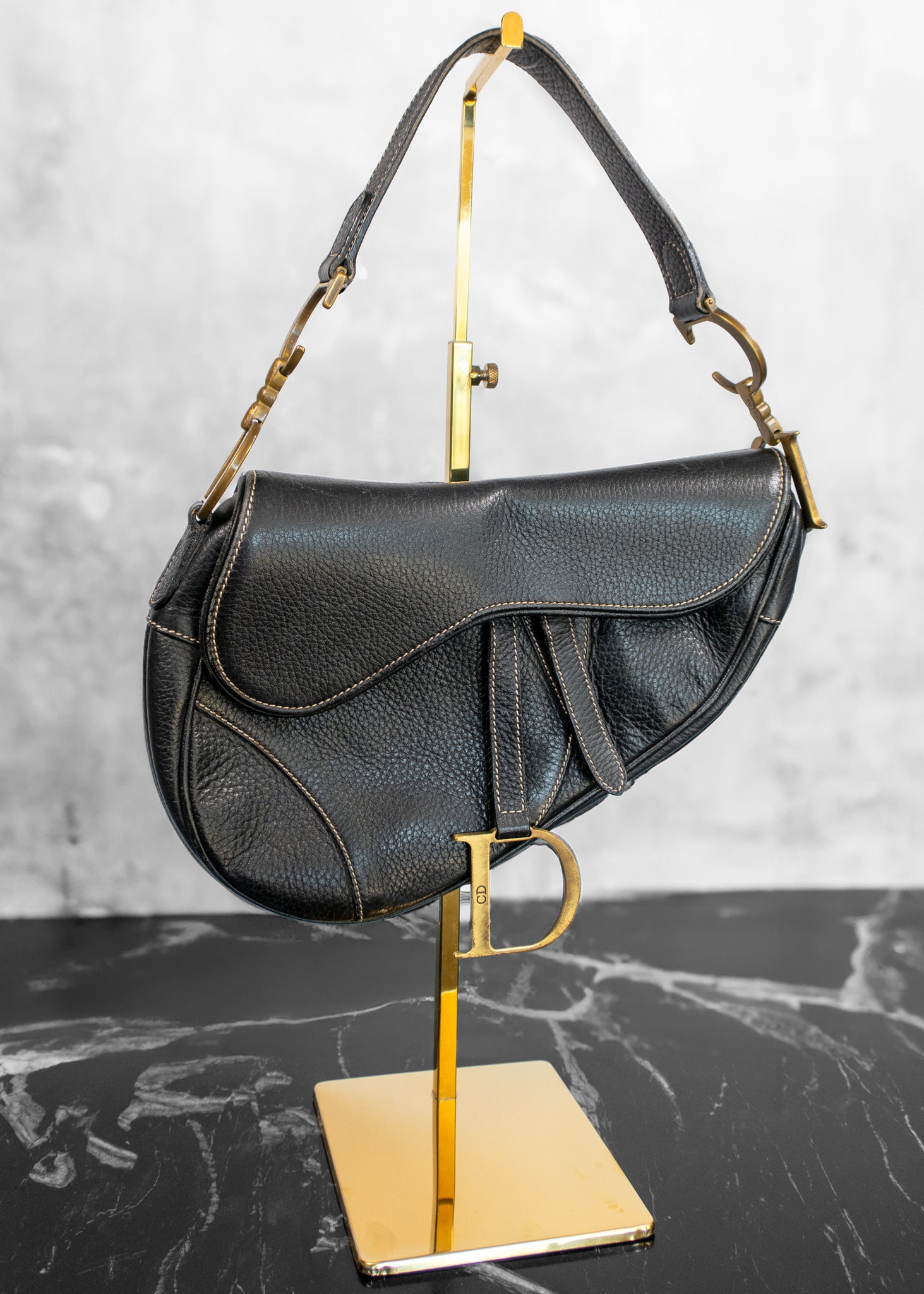 Christian Dior Saddle Black Medium Grained Leather Handbag
