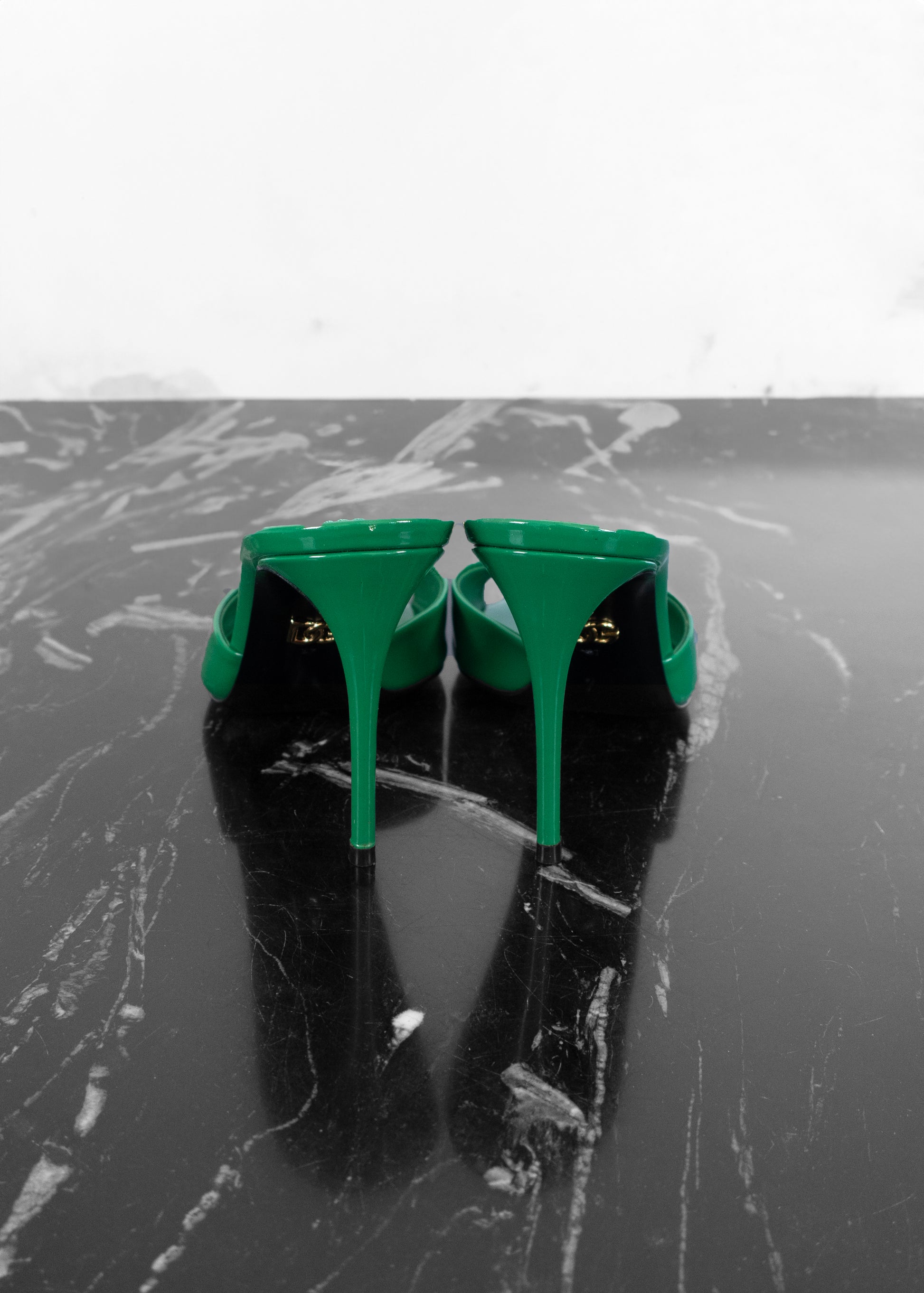Elevate your style with Dolce & Gabbana's DG Logo 105 Patent Leather Mules. Crafted from sleek patent leather, these mules feature a bold DG logo for a touch of luxury. With their pointed toe and 105mm stiletto heel, they offer a chic silhouette that's perfect for any sophisticated outfit. These mules blend elegance and contemporary design effortlessly, ideal for making a statement at any event.