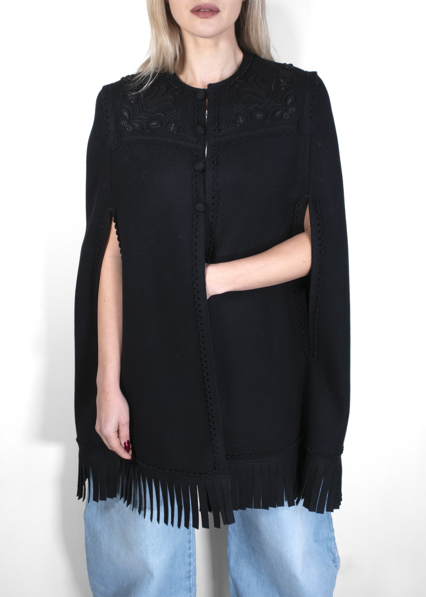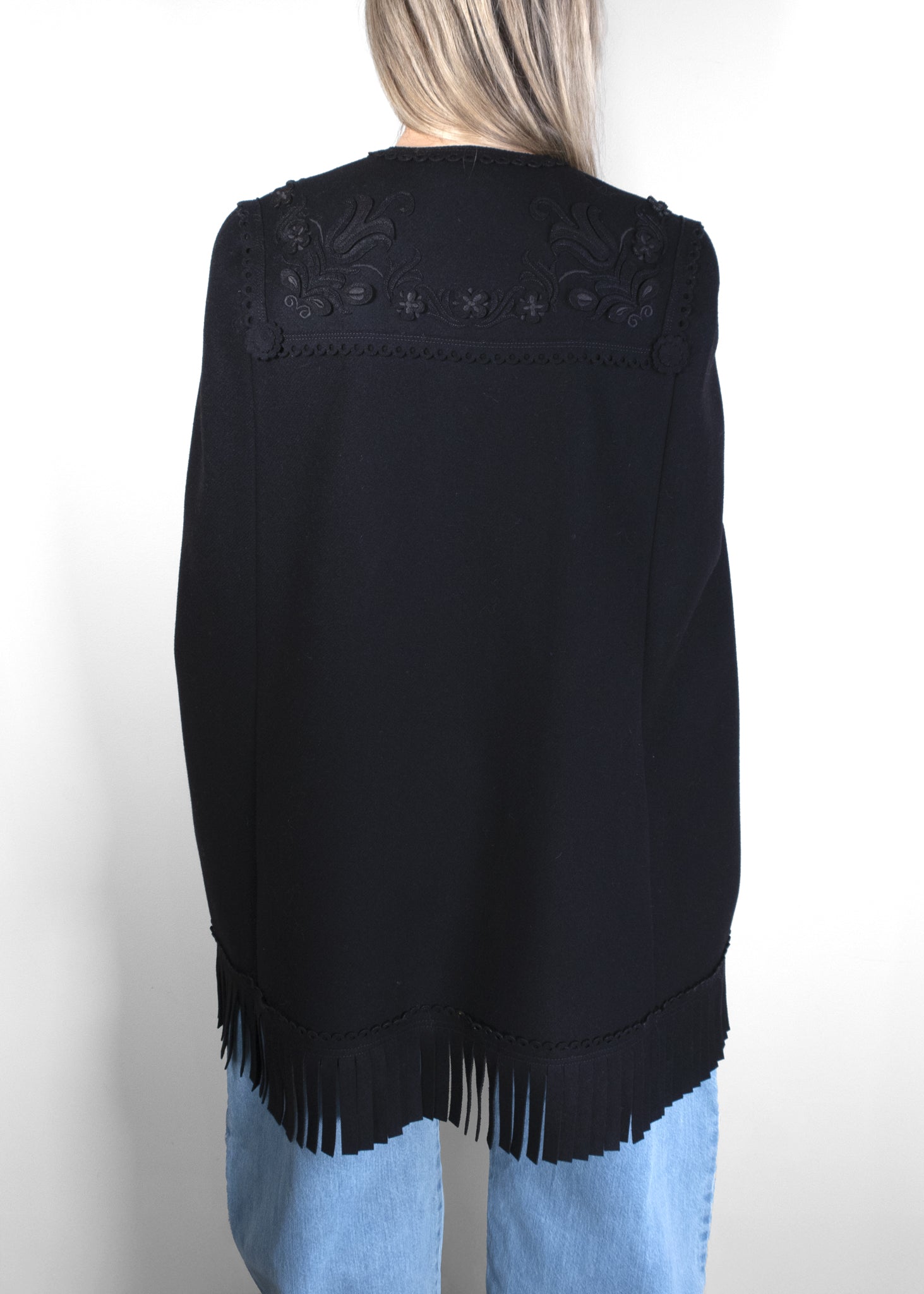 The DSQUARED2 Fringed Tulip Cape is a stylish and sophisticated outerwear piece featuring a unique tulip-inspired silhouette. Crafted from luxurious materials, it is adorned with elegant fringed detailing that adds movement and texture. This cape embodies the brand's signature blend of contemporary fashion and classic refinement, making it a standout addition to any wardrobe.