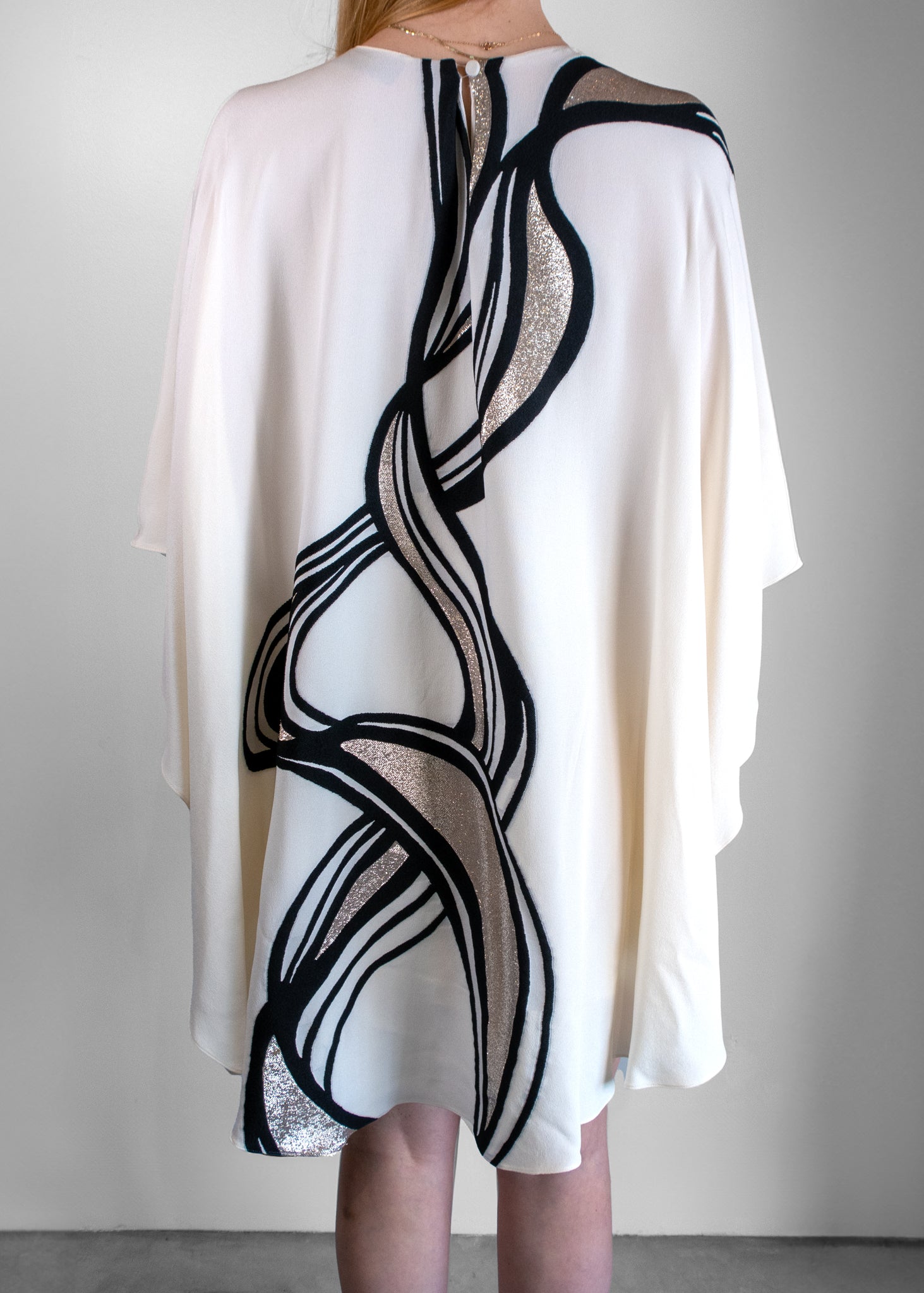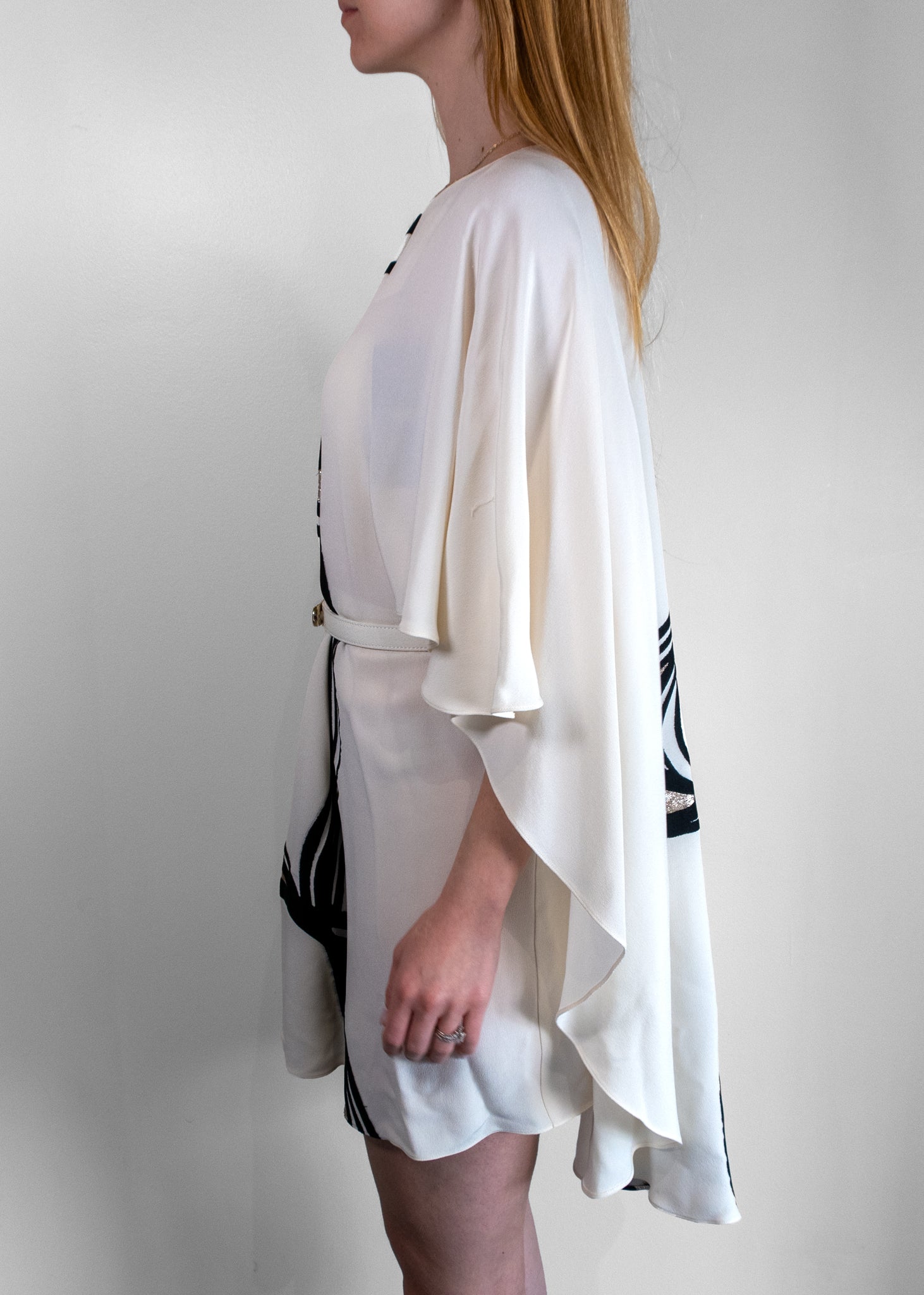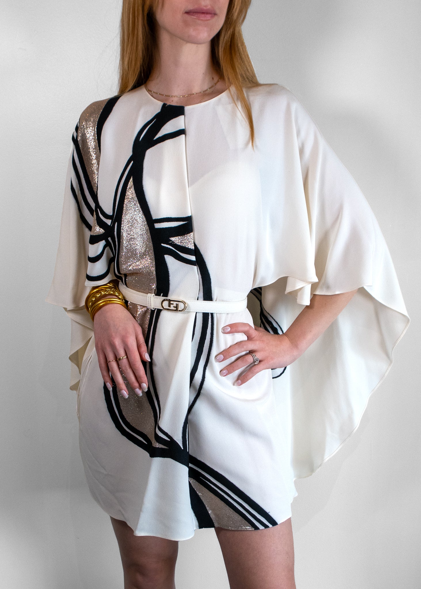 Fendi Abstract Print Belt Waisted Cape Dress
