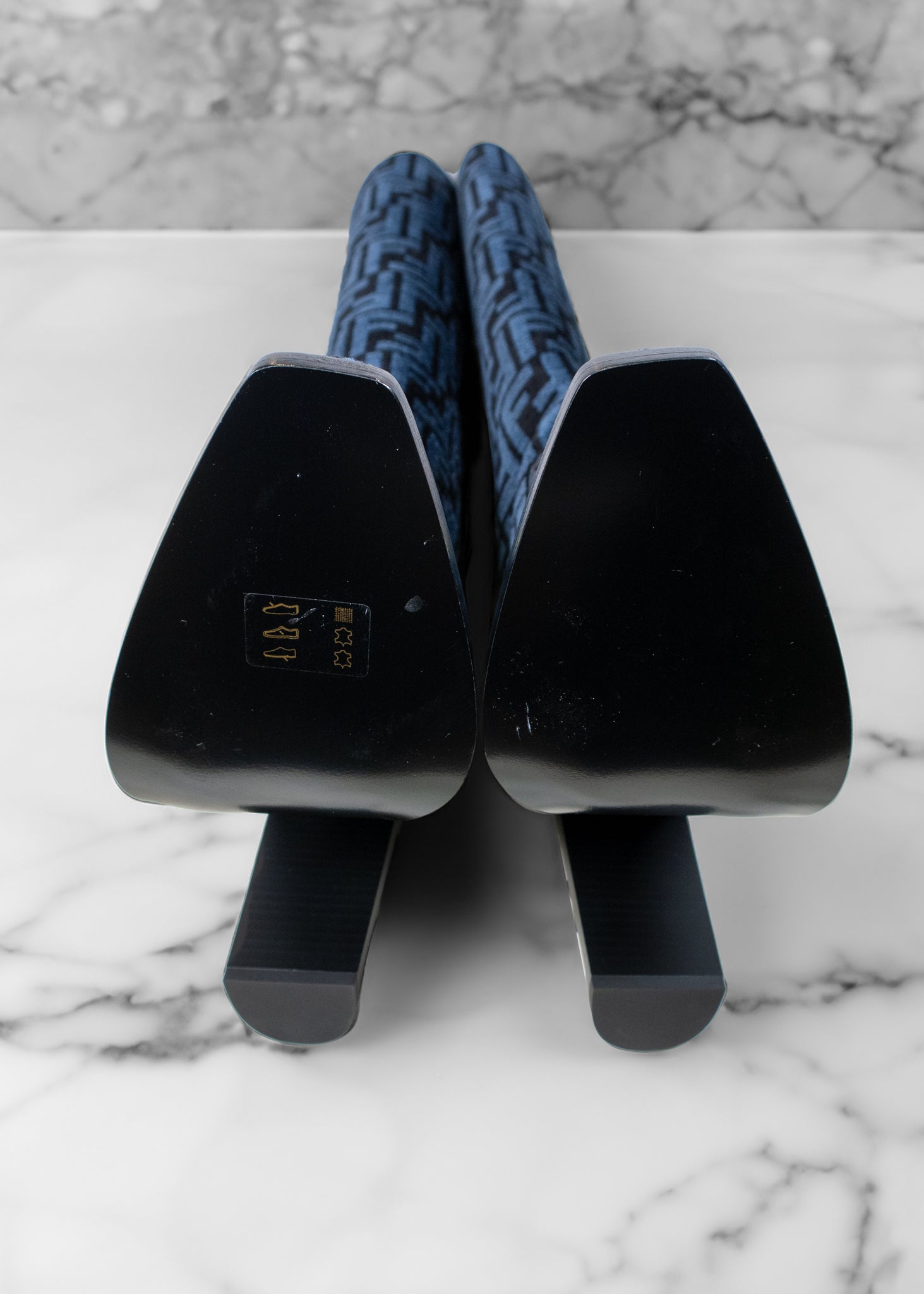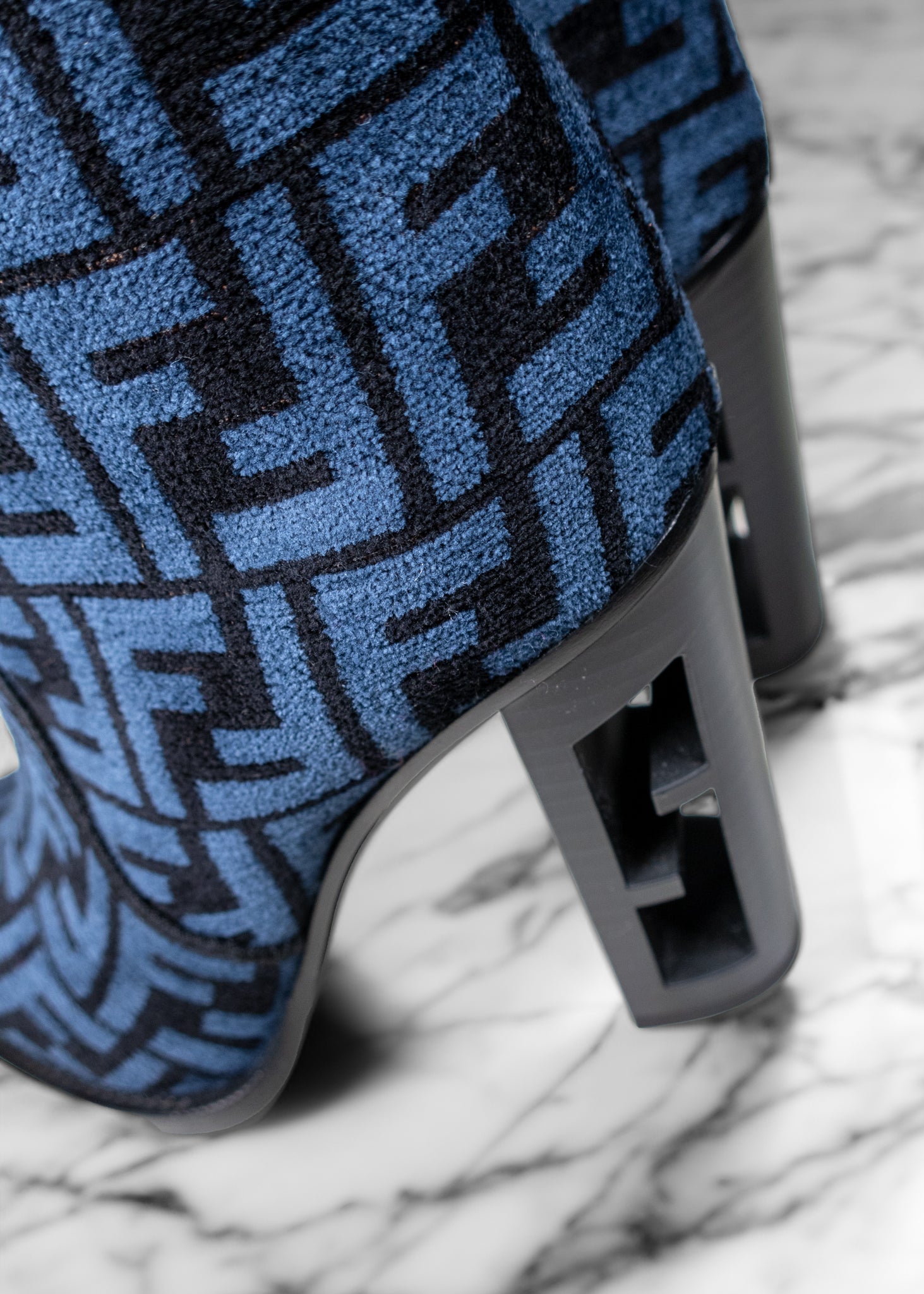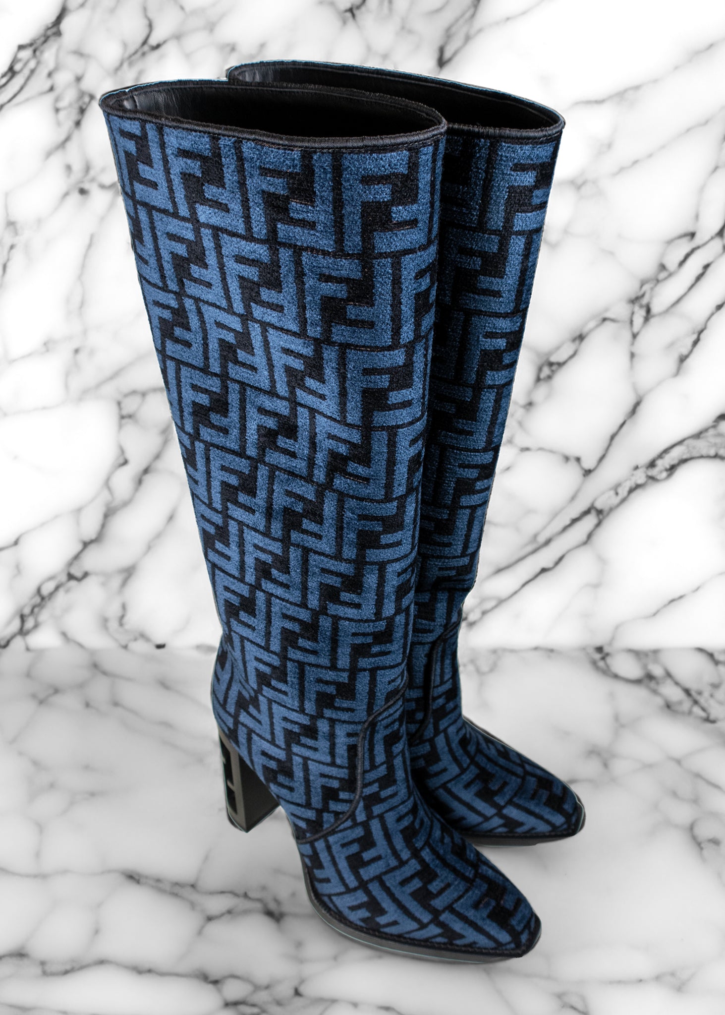 Fendi Blue and Black Jacquard Chenille Knee Length Boots