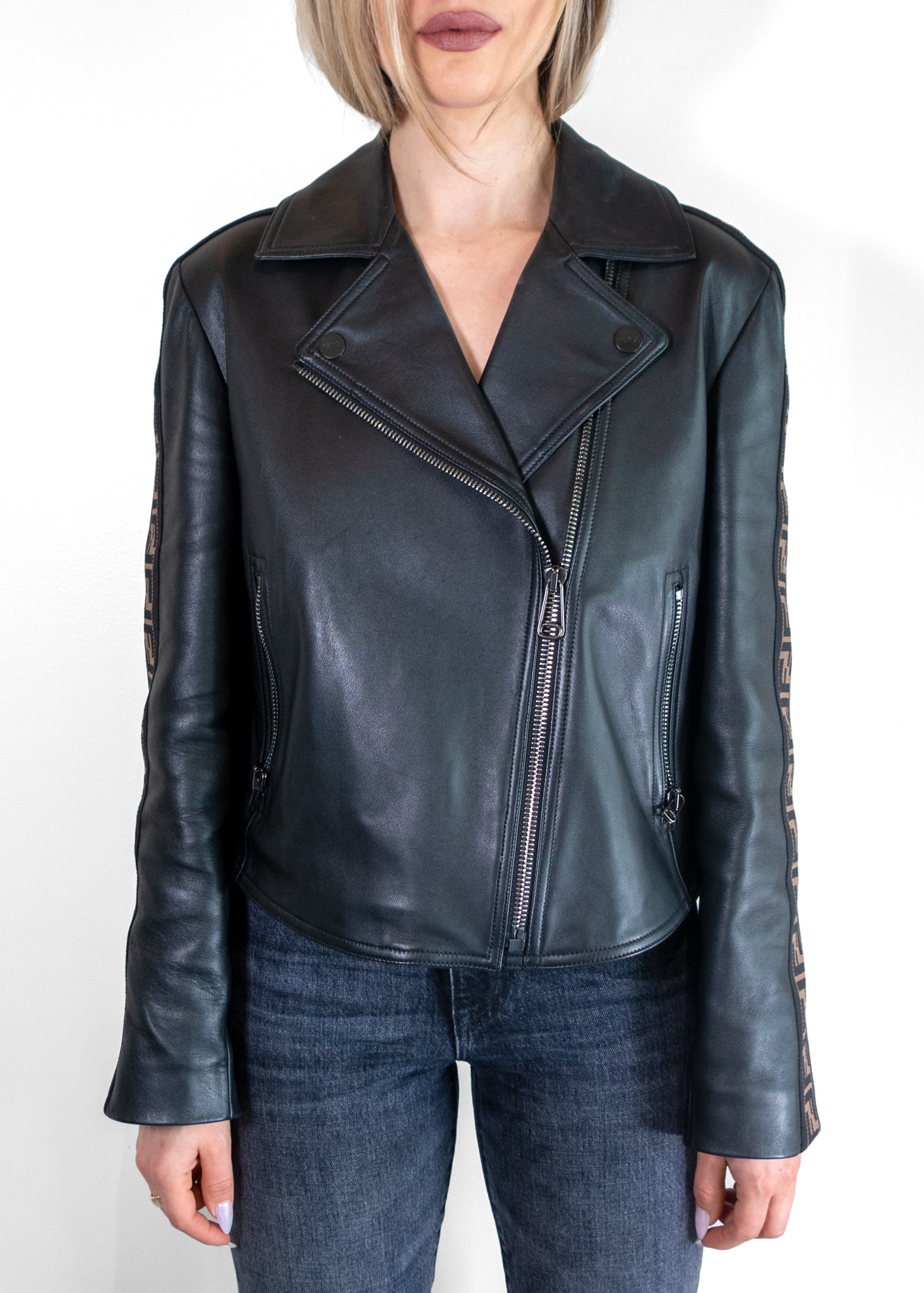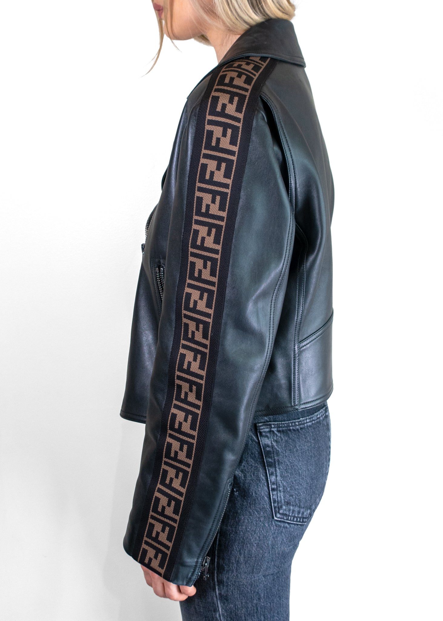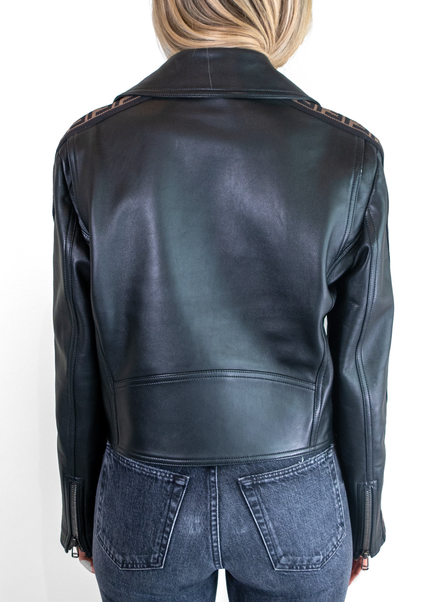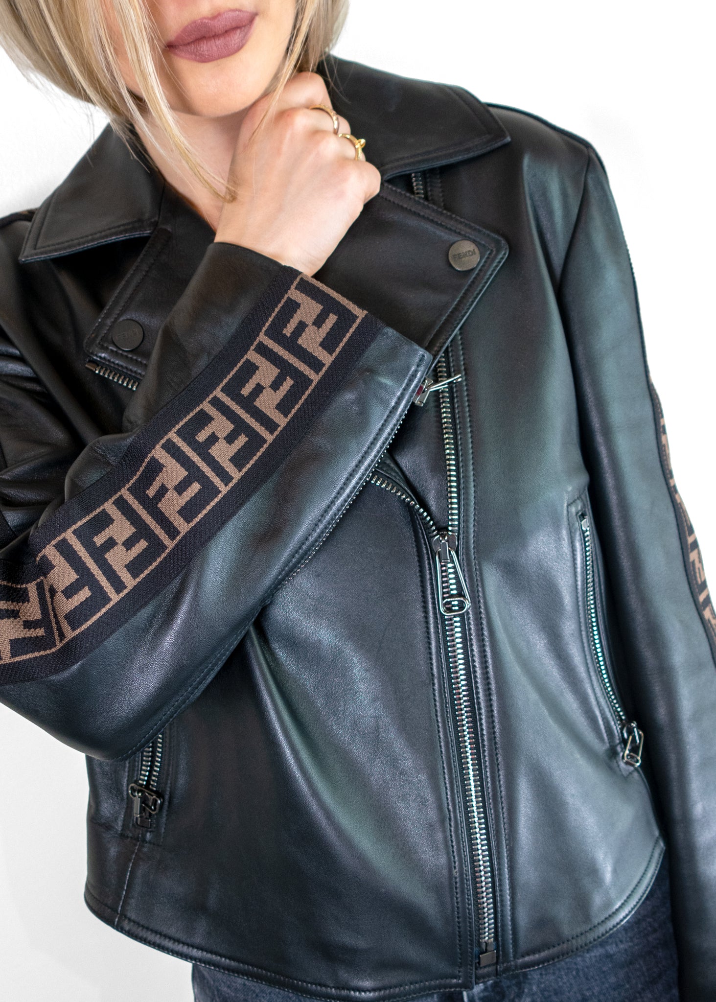 The Fendi Leather Biker Jacket embodies the epitome of timeless style and edgy sophistication. Crafted from premium quality leather, this iconic piece features a sleek silhouette with tailored details, including quilted panels and zipper accents, exuding a sense of rugged luxury. Its versatile design effortlessly transitions from day to night, adding an effortlessly cool and rebellious touch to any ensemble. With impeccable craftsmanship and attention to detail, the Fendi Leather Biker Jacket is a coveted wardrobe staple for those who appreciate both fashion and function.